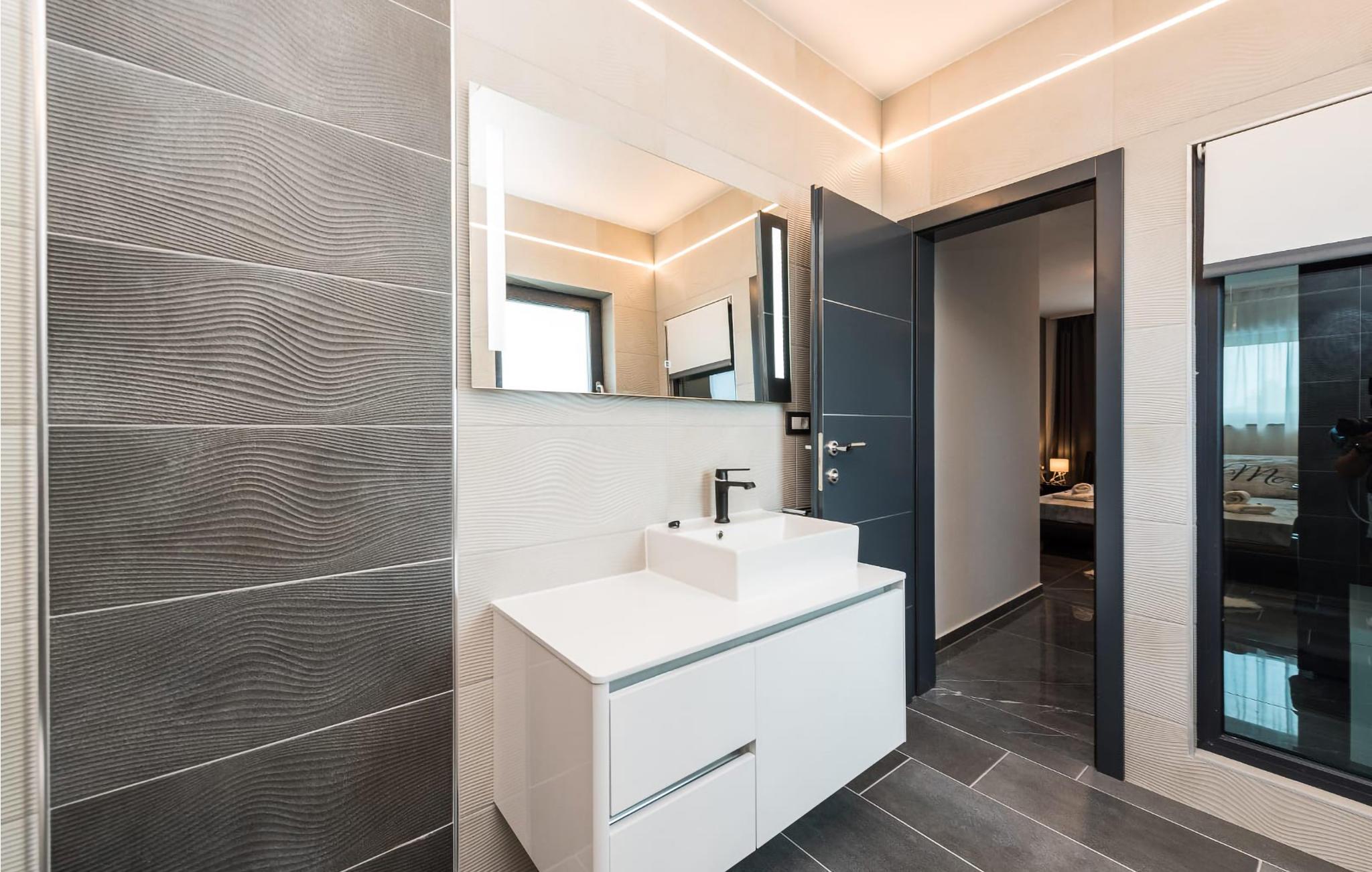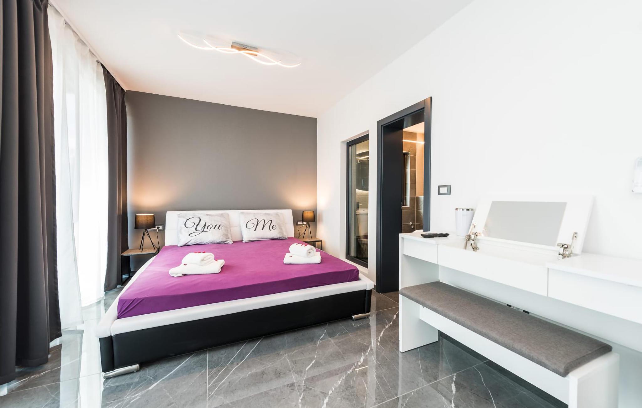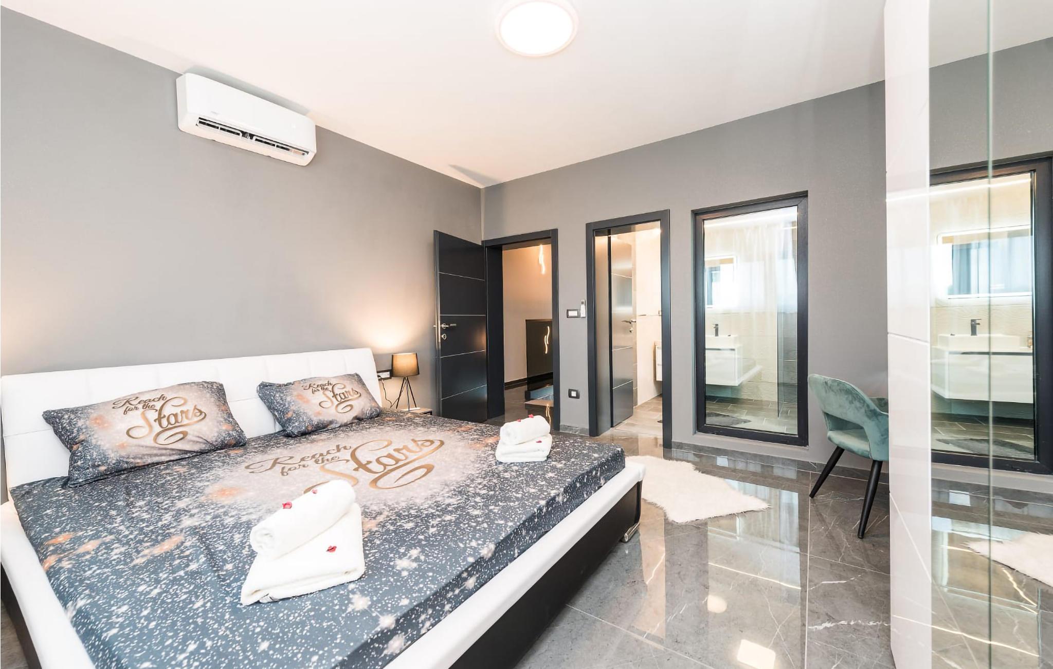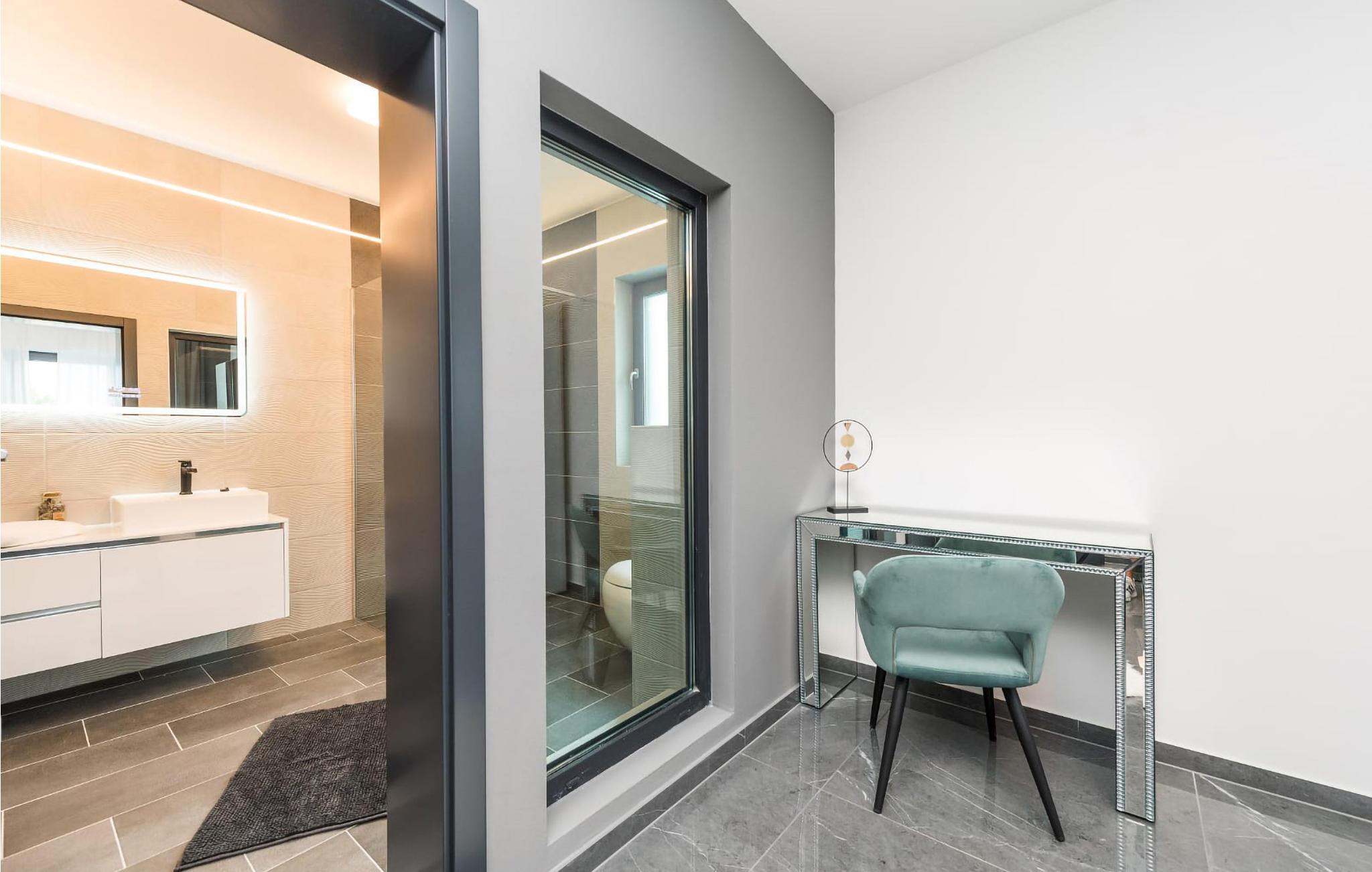 Willkommen in dieser modernen Villa, die ideal für kleinere Kinder und Familien geeignet ist. Das geräumige Innere des Hauses ist modern und komfortabel ausgestattet. In den Schlafzimmern befinden sich bequeme Doppelbetten. Bodentiefe Fenster ermöglichen viel Licht in den Räumen und einen schönen Blick ins Freie.