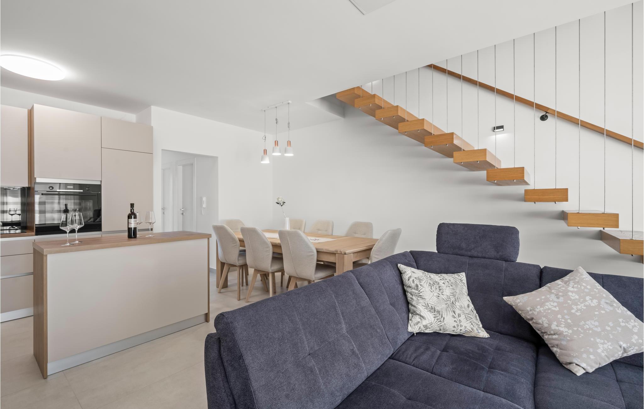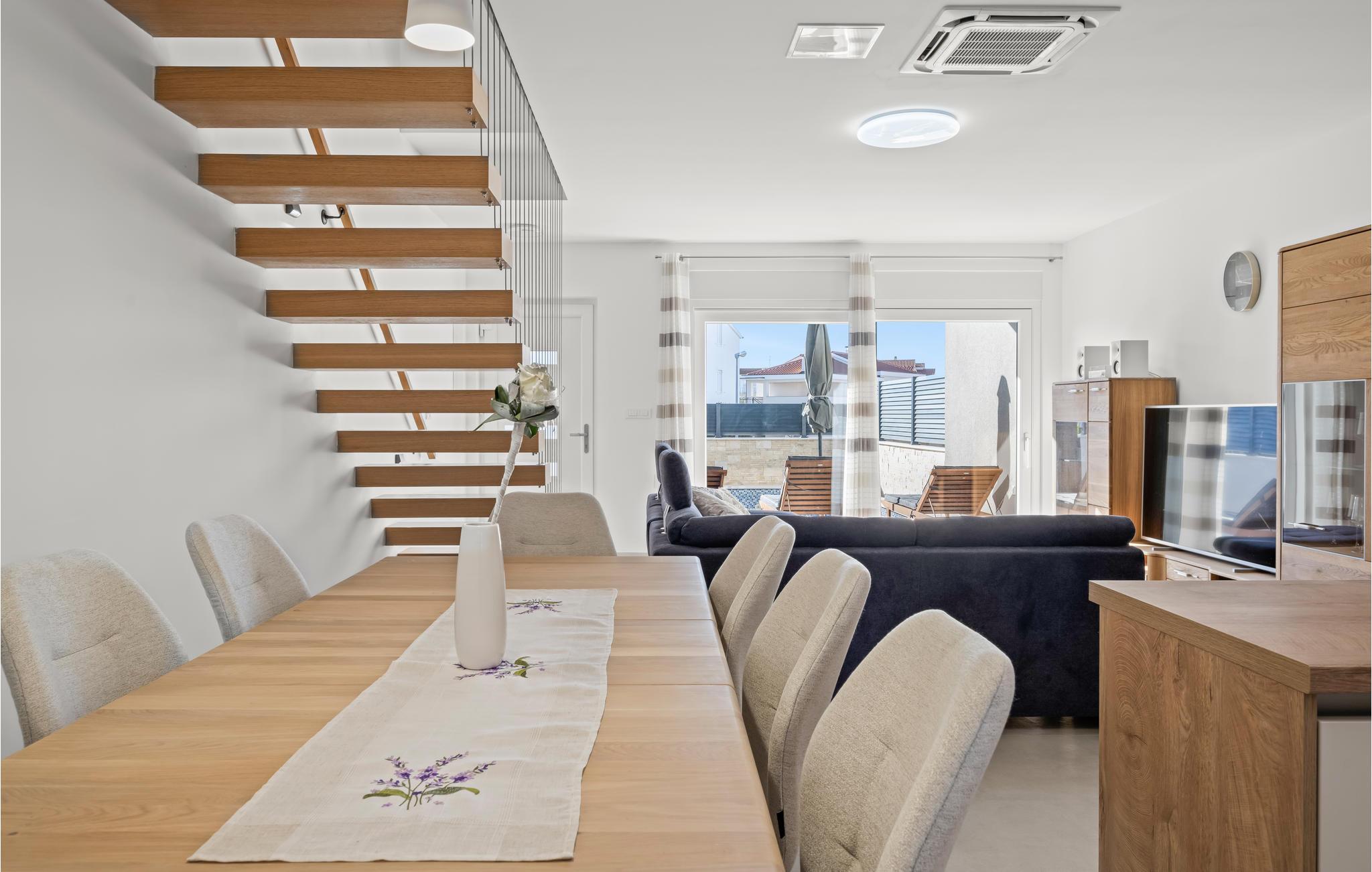 Genießen Sie Ihren Familienurlaub in diesem einladenden Ferienhaus in Srima. Das schöne Wohndesign, das sich über das Erdgeschoss und den 1. Stock verteilt bietet Ihnen eine großartige Wohlfühlatmosphäre in der Sie sich mit Ihrer großen Reisegruppe wie zuhause fühlen können. Kochen, essen und relaxen Sie zusammen und gelangen über die offene Treppe in das obere Stockwerk, wo Sie ruhige Nächte verbringen können. Der kompakte Garten mit Pool und Sonnendeck und geselligem Balkon laden Sie ein viel Zeit im Freien zu verbringen.
