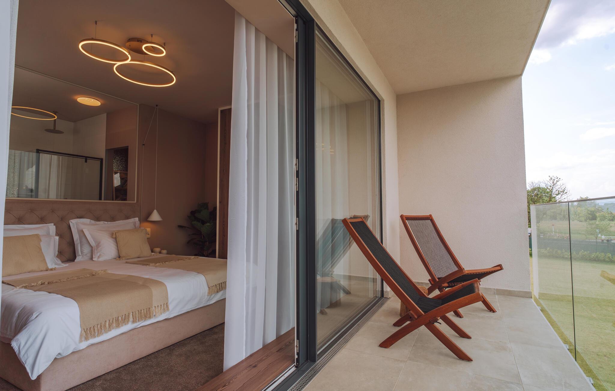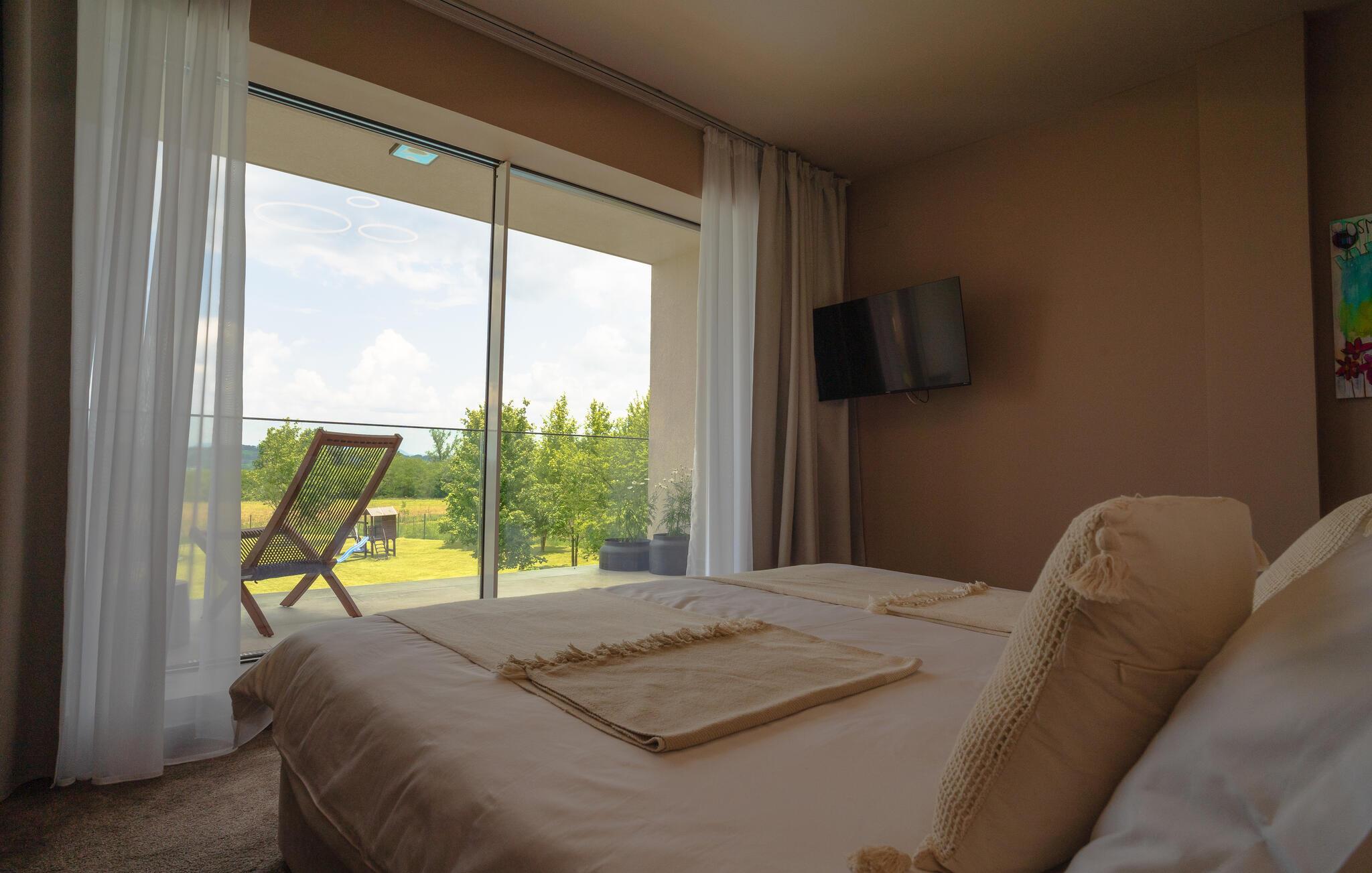 Diese stilvolle Villa in Mokrice lädt Sie zu einem erholsamen Urlaub inmitten malerischer Natur ein. Die moderne Einrichtung schafft eine harmonische Atmosphäre, während die lichtdurchfluteten Räume für ein luftiges Ambiente sorgen. In der gut ausgestatteten Küche bereiten Sie kulinarische Köstlichkeiten zu, die Sie anschließend auf der Terrasse genießen können. Nach einem aktiven Tag entspannen Sie im privaten Whirlpool oder nehmen ein erfrischendes Bad im gemeinsamen Swimmingpool. Besonders praktisch: Das benachbarte Ferienhaus kann je nach Verfügbarkeit zusätzlich gebucht werden – ideal für einen Urlaub mit Freunden oder der Großfamilie.