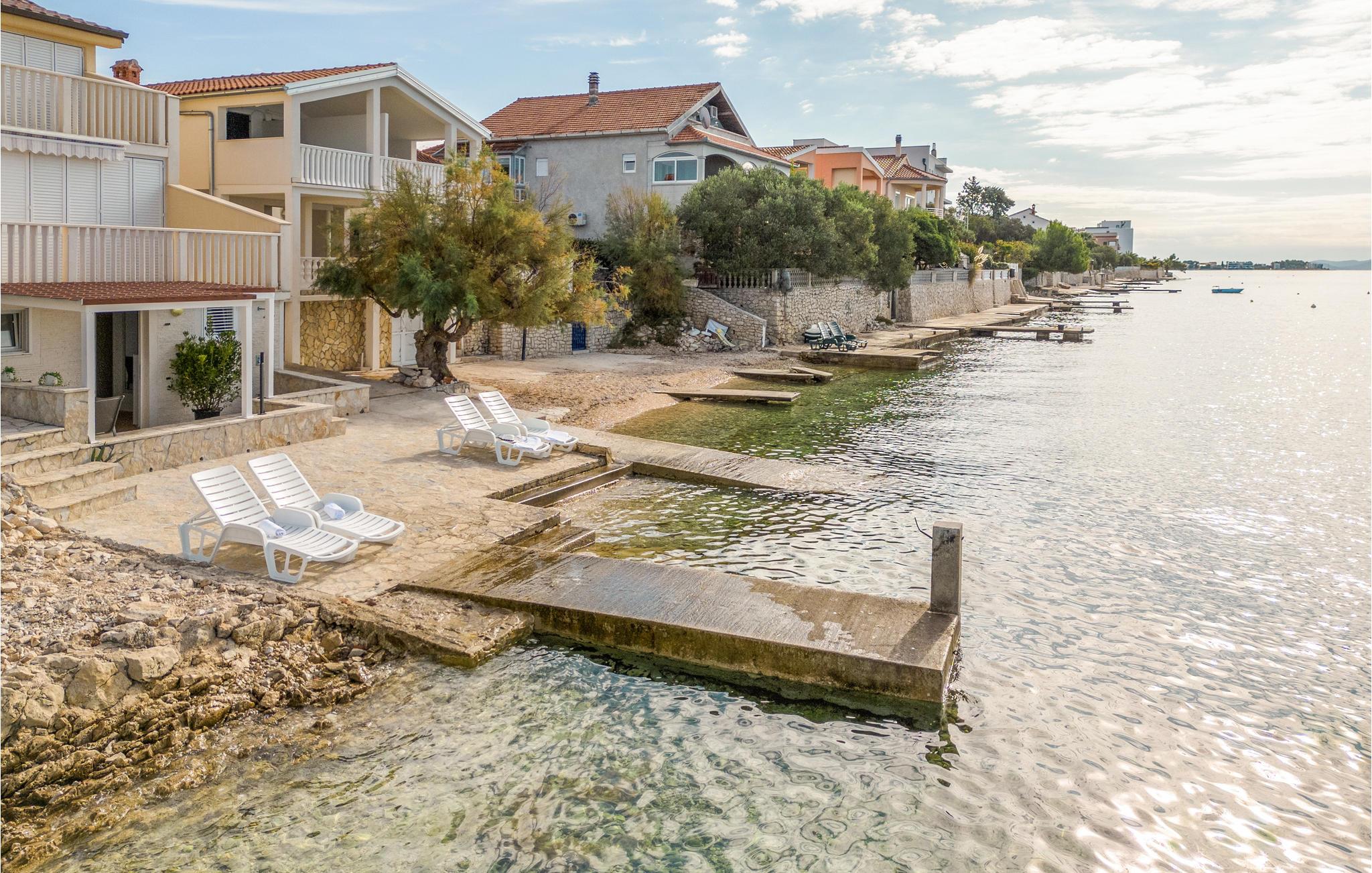Zum Strand sind es von Ihrer Ferienwohnung nur ein paar Schritte, entspannen Sie hier im eigenen Liegestuhl. Besuchen Sie die faszinierende Stadt Zadar, die neben ihrer fantastischen Lage an der Küste auch viele imposante historische Bauwerke zu bieten hat. Schlendern Sie etwa über das römische Forum, oder tauchen Sie tief in die Geschichte der frühen Bewohner im archäologischen Museum ein. Eine nahezu perfekte Aussicht bietet sich Ihnen bei einem Spaziergang auf der Stadtmauer. Beenden Sie Ihren Ausflug auf der Uferpromenade und lassen Sie sich von einem spektakulären Sonnenuntergang über der Adria verzaubern.