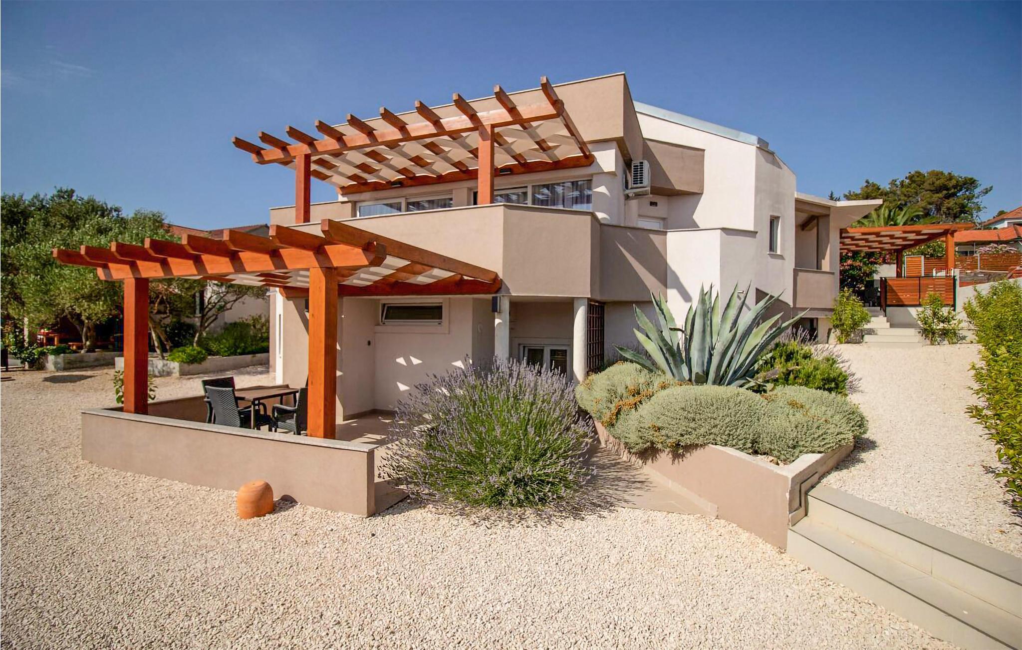 Freuen Sie sich auf Ihren Urlaub in diesem schönen Apartmenthaus in Bibinje. Mehrere Wohnungen empfangen Sie als Paar oder als Familie und laden Sie ein gemeinsam mit befreundeten Familien zu verreisen, ohne auf Ihre Privatsphäre zu verzichten. Die hellen und sanften Farben der Einrichtung lassen Sie zur Ruhe kommen und schaffen den perfekten Rahmen, um sich zu entspannen. Genießen Sie ein leckeres Frühstück auf Ihrer privaten Terrasse oder kommen am Abend auf der großen Terrasse mit gemauertem Grill ins Gespräch mit den anderen Gästen. Außerdem verspricht Ihnen der Gemeinschaftspool Erfrischung und Badespaß und rundet das Angebot der Ferienunterkunft ab.