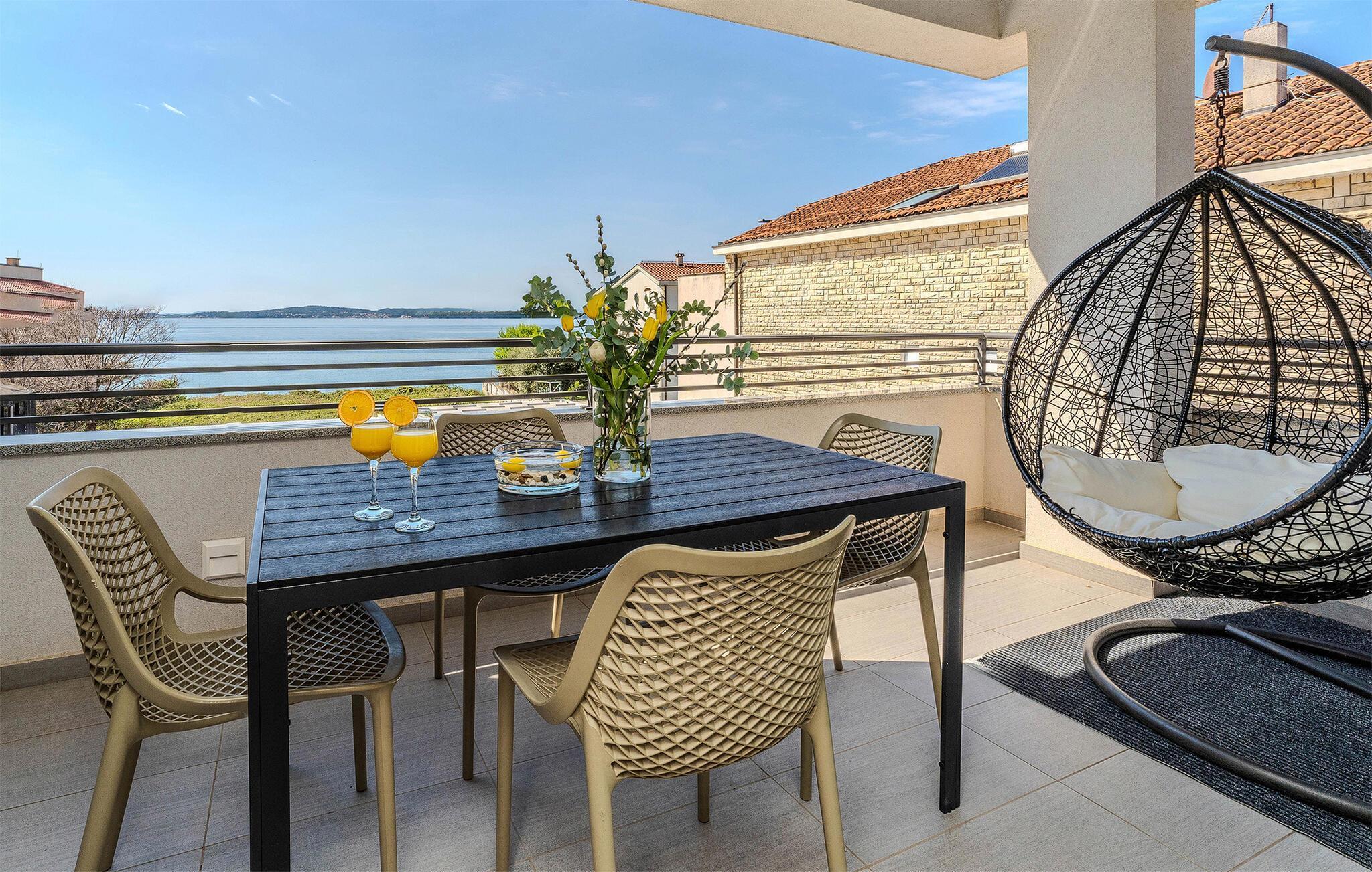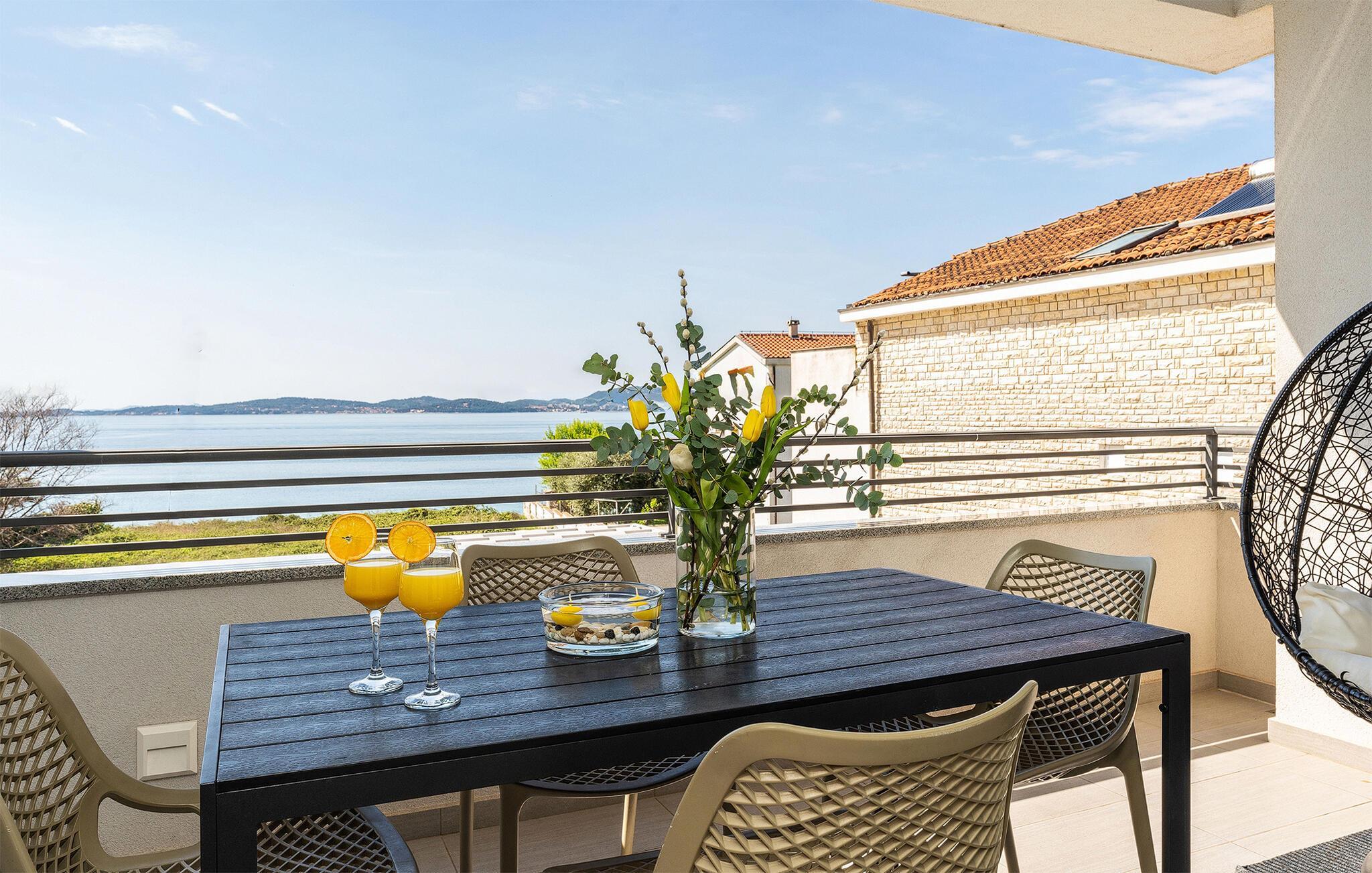 Genießen Sie in dieser komfortablen Ferienwohnung einen wunderbaren Blick auf das Meer.