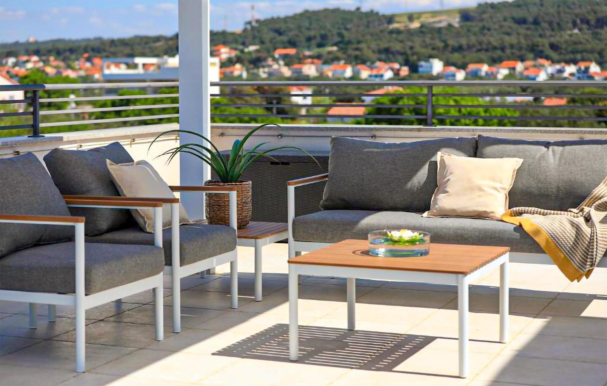 Die einladende Ferienwohnung empfängt Sie in schöner Lage nur wenige Meter vom Strand entfernt. Sie ist der ideale Ort für eine erholsame Auszeit am Meer mit dem richtigen Mix aus Aktivitäten und Entspannung. Nutzen Sie die modern und wohnlich möblierten Räume als Basis für einen schönen Urlaub. Machen Sie es sich am Ende eines schönen Tages auf den Sofas bequem und plaudern Sie noch lange. Die Terrassen sind der ideale Ort, um in der Morgensonne das Frühstück zu genießen und den Tag zu planen oder abends mit kalten Getränken und fantastischer Aussicht zu entspannen. Der Pool, den Sie mit anderen Gästen teilen, bietet willkommene Erfrischung an warmen Tagen.