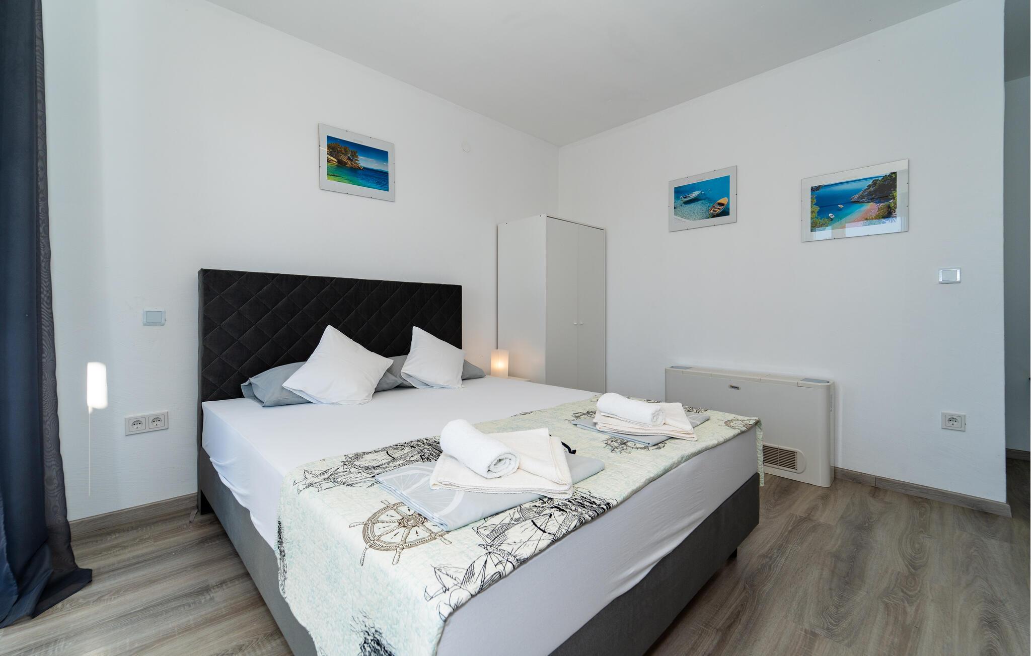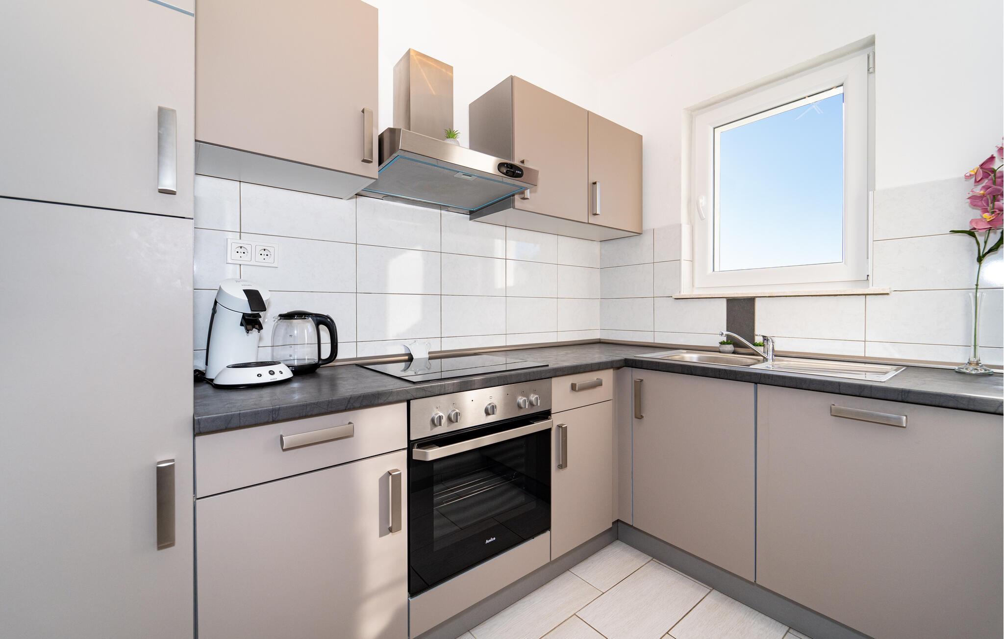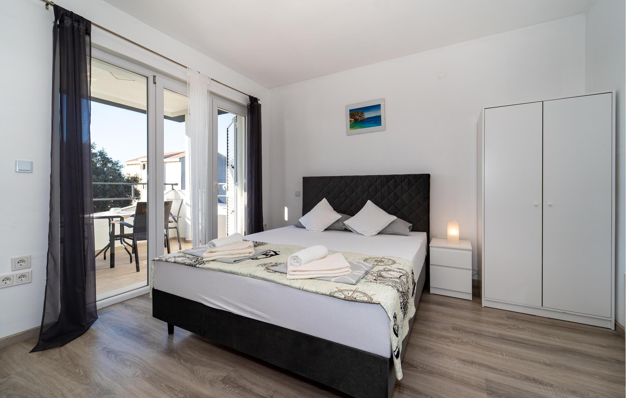 In dieser hellen und modernen Ferienwohnung erwartet Sie eine erholsame Auszeit inmitten des charmanten Ortes Bibinje. Genießen Sie die entspannte Atmosphäre und lassen Sie den Tag auf dem Balkon ausklingen – hier können Sie zur Ruhe kommen und in den oberen Stockwerken den Blick aufs Meer schweifen lassen. Die Wohnung, gelegen in einem Haus mit mehreren Apartments, bietet Ihnen alles für einen angenehmen Urlaub. Reisen Sie mit befreundeten Familien oder Ihrer Großfamilie an und verbringen einen gemeinsamen Urlaub, ohne auf Ihre Privatsphäre zu verzichten.