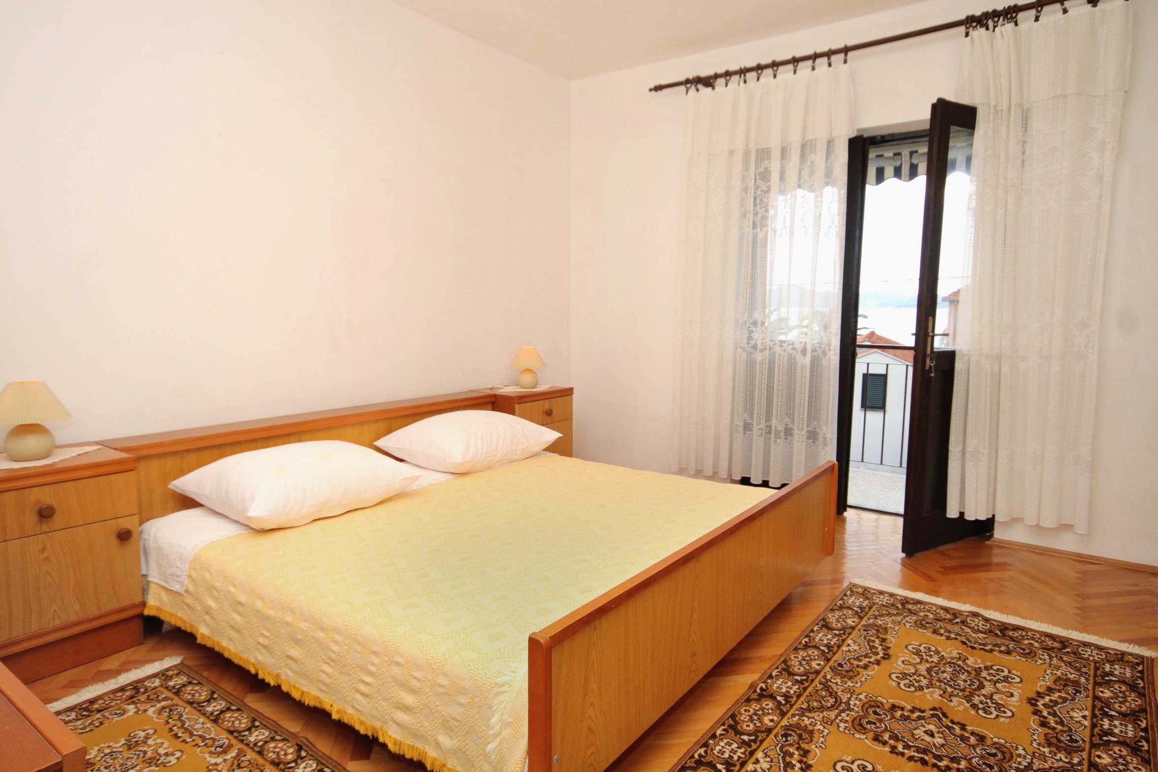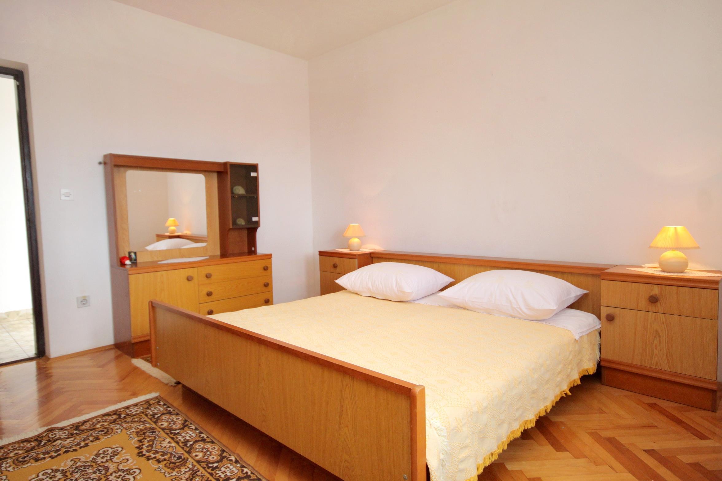 Apartment can accommodate 5 guests. Beds are situated in 2 sleeping rooms, but also in the dining room, within 60m2. Guests can use a private balcony to enjoy the warm summer evenings. The apartment offers the sea view. Food can be prepared using barbecue which is shared with other guests too.