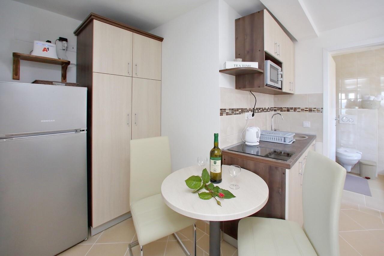 Apartment can accommodate 4 guests. Beds are situated in 1 sleeping rooms, but also in the living room, within 29m2. Guests can use a private terrace to enjoy the warm summer evenings. The apartment offers the sea view. Food can be prepared using barbecue which is shared with other guests too. This accommodation unit welcomes pets at an additional charge.