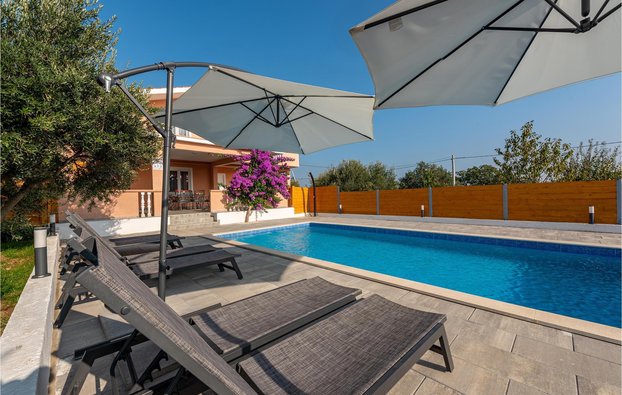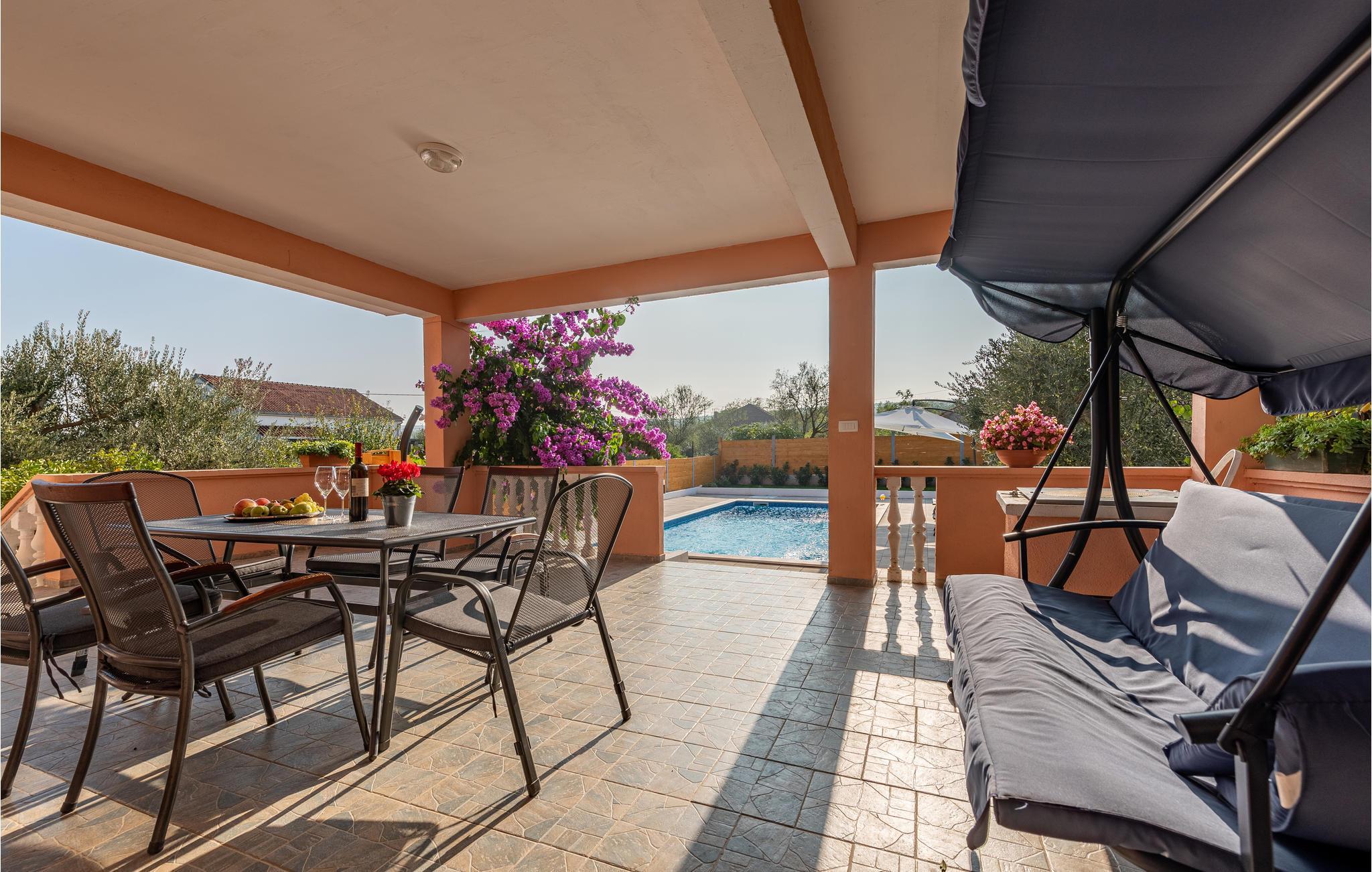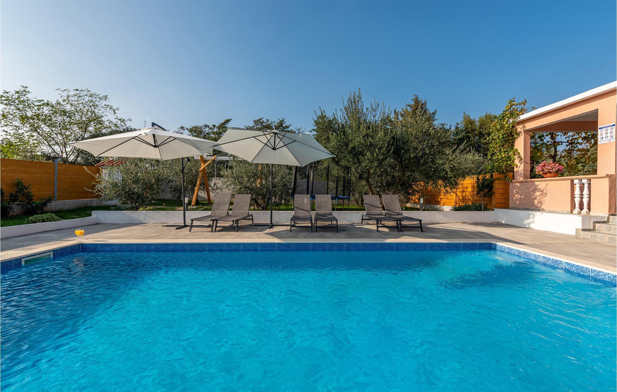 Etwas südlich von Zadar auf einem weitläufigen Grundstück von über 2000 Quadratmetern, wohnen Sie in dieser einladenden Unterkunft in ruhiger Lage. Für die Kinder stehen Trampolin und Schaukel bereit. Ob Grillen im Garten, Schwimmen im Pool, ein leckeres Frühstück im Freien oder die Fahrt zur nahen Küste - Hier ist alles für eine erholsame Ferienzeit angerichtet.