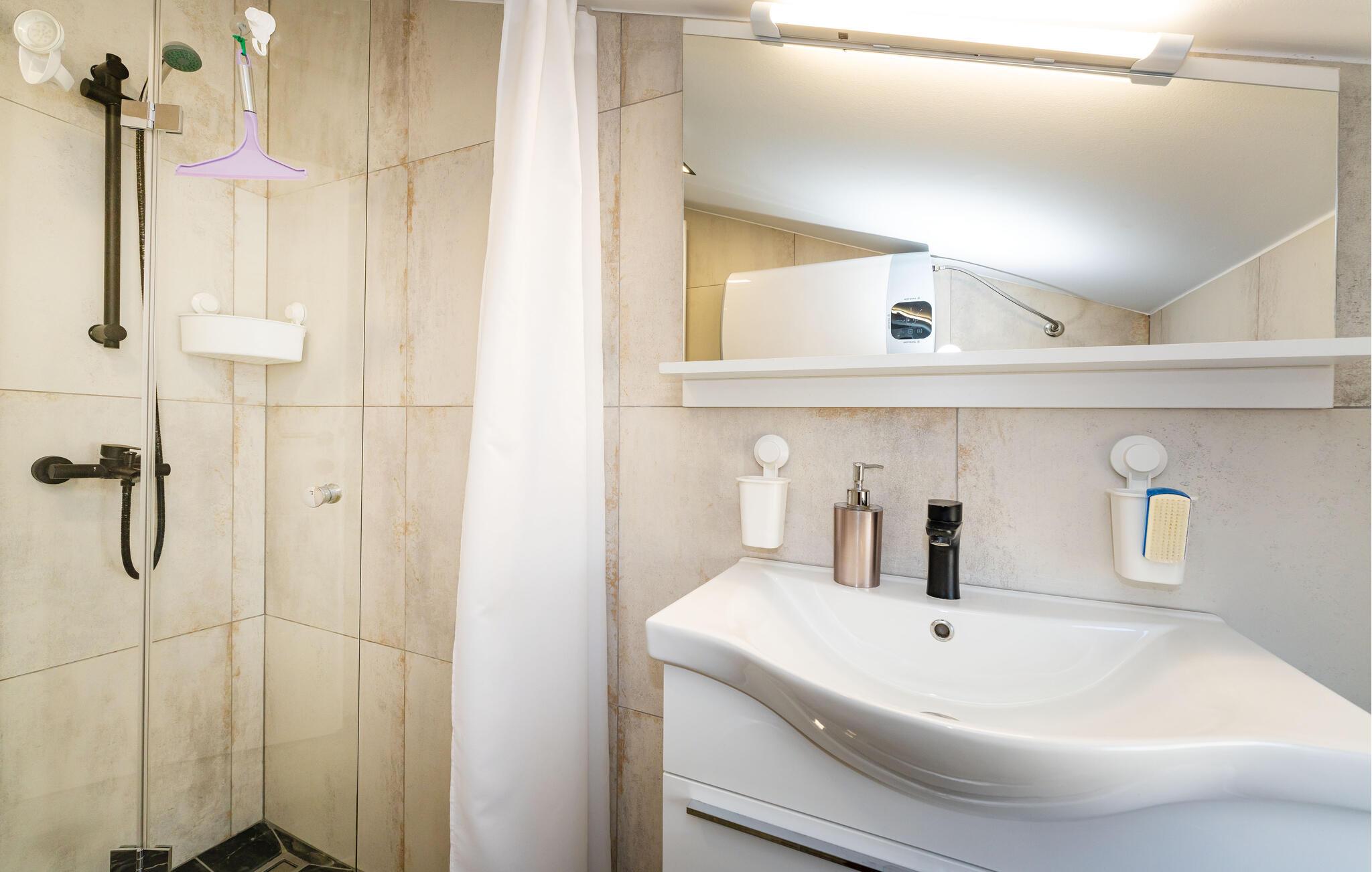 - WC mit warmem und kaltem Wasser, Dusche