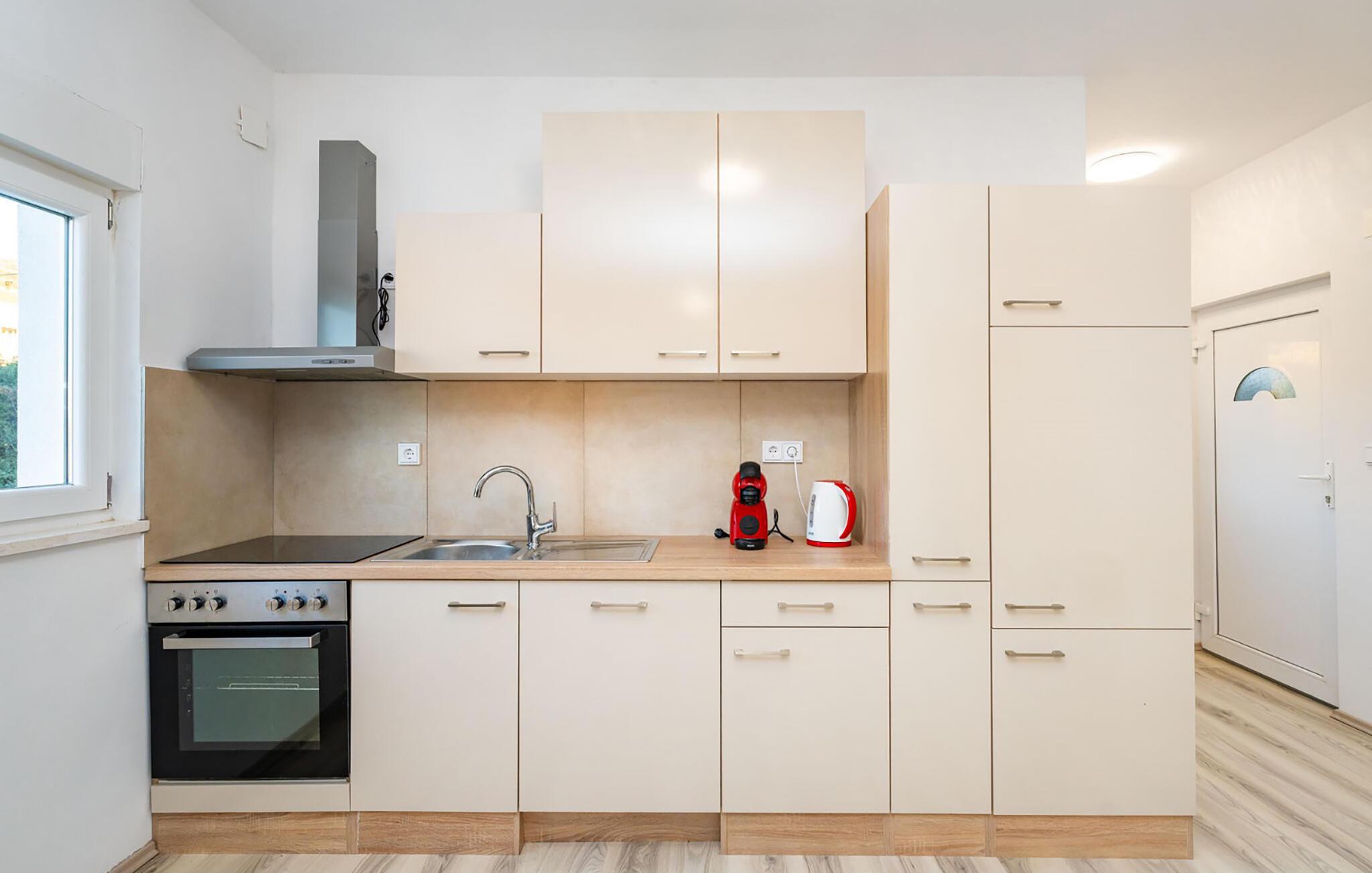 Spazieren Sie zu den nahe gelegenen Stränden von Gornji Karin und genießen Sie das klare Wasser der Adriaküste. Erkunden Sie die ruhige Karinsko-More-Lagune oder unternehmen Sie eine Bootsfahrt auf dem Fluss Zrmanja. Wer es sportlicher mag, probiert sich beim Rafting. Auch die Nationalparks Paklenica und Krka sind gut erreichbar und locken mit beeindruckenden Landschaften und Wanderwegen. Verbringen Sie unvergessliche Urlaubstage zwischen Wasser, Bergen und Natur.