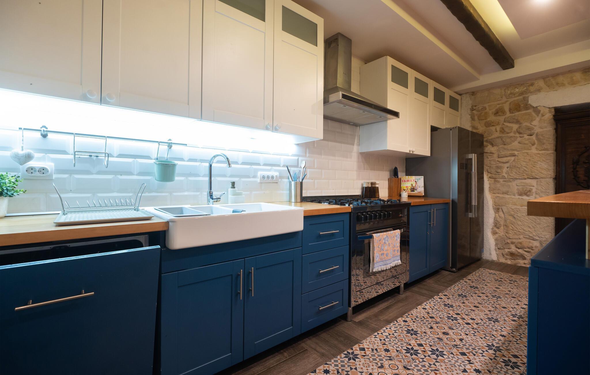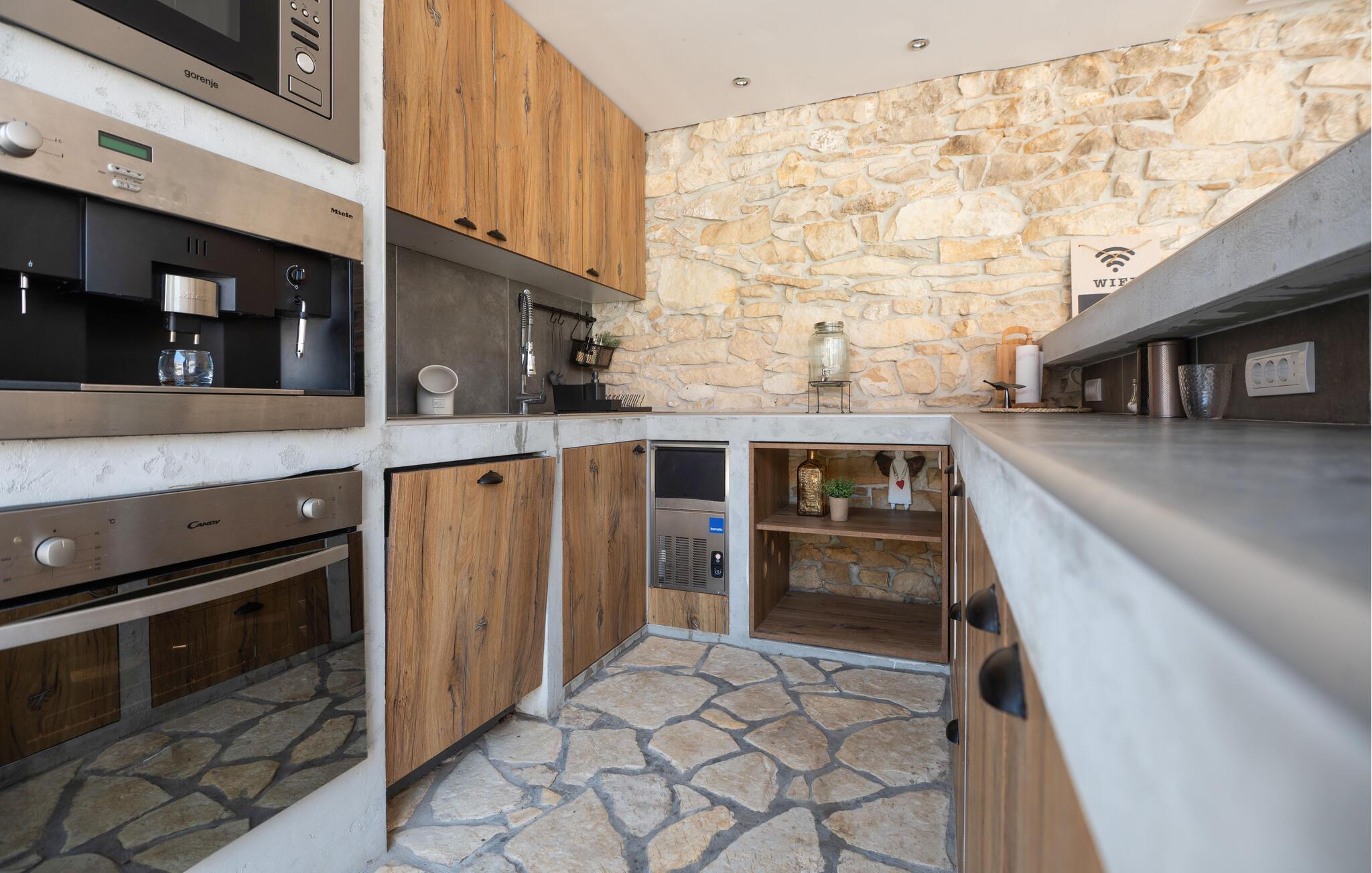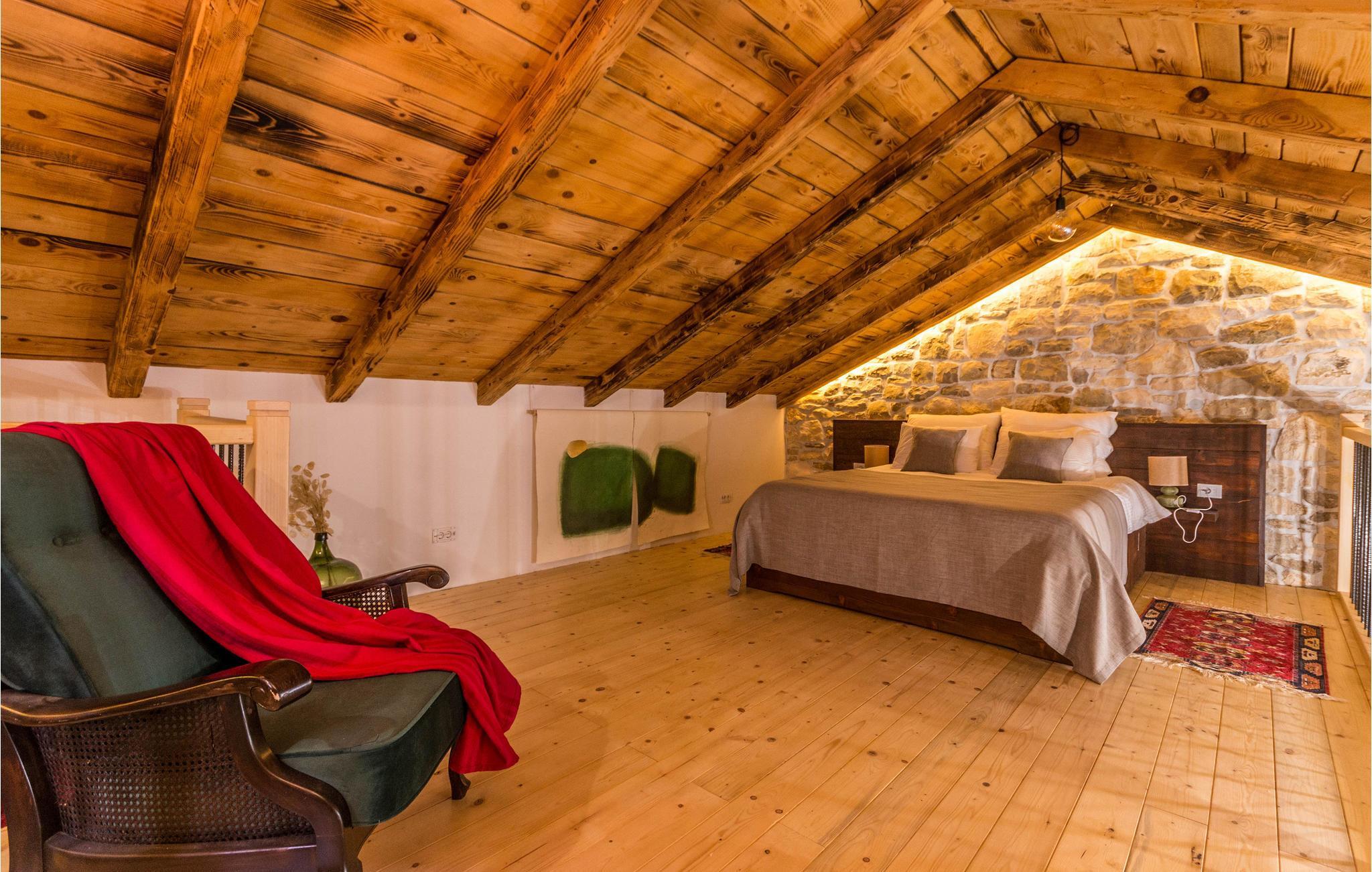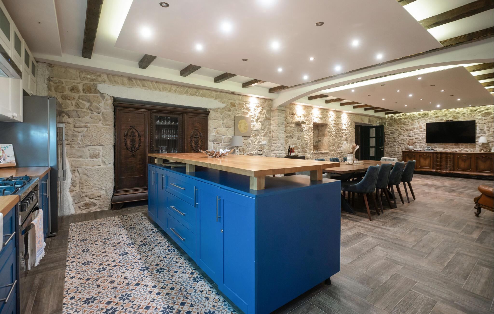 Nur wenige Kilometer vom Novigrader Meer entfernt, heißt Sie dieses schöne Ferienhaus willkommen. Mit Ihrer Großfamilie oder mehreren befreundeten Familien und Paaren können Sie sich in zwei Gebäuden ausbreiten und es sich gutgehen lassen. Die Bauweise des Hauses versprüht in allem Räumen Charme und lädt Sie ein, zu verweilen. Veranstalten Sie gemeinsame Kochabende oder spielen Sie Brettspiele am langen Esstisch. Die Veranda ist im Freien ein schöner Ort, um den Schatten zu genießen, ein Buch zu lesen und Ihren Kindern beim Baden im Swimmingpool zuzuschauen. Verbringen Sie viel Zeit in Ihrem privaten Innenhof, grillen und essen die Erzeugnnis aus dem Garten. Fordern Sie sich beim Tischfußball heraus und bewundern den Sternenhimmel in der Nacht.