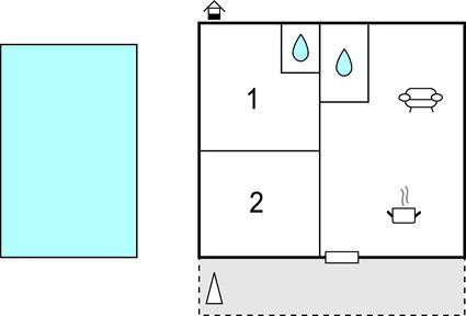 Badezimmer 5m2 (nr. 1) - WC. Warmes und kaltes Wasser. Dusche