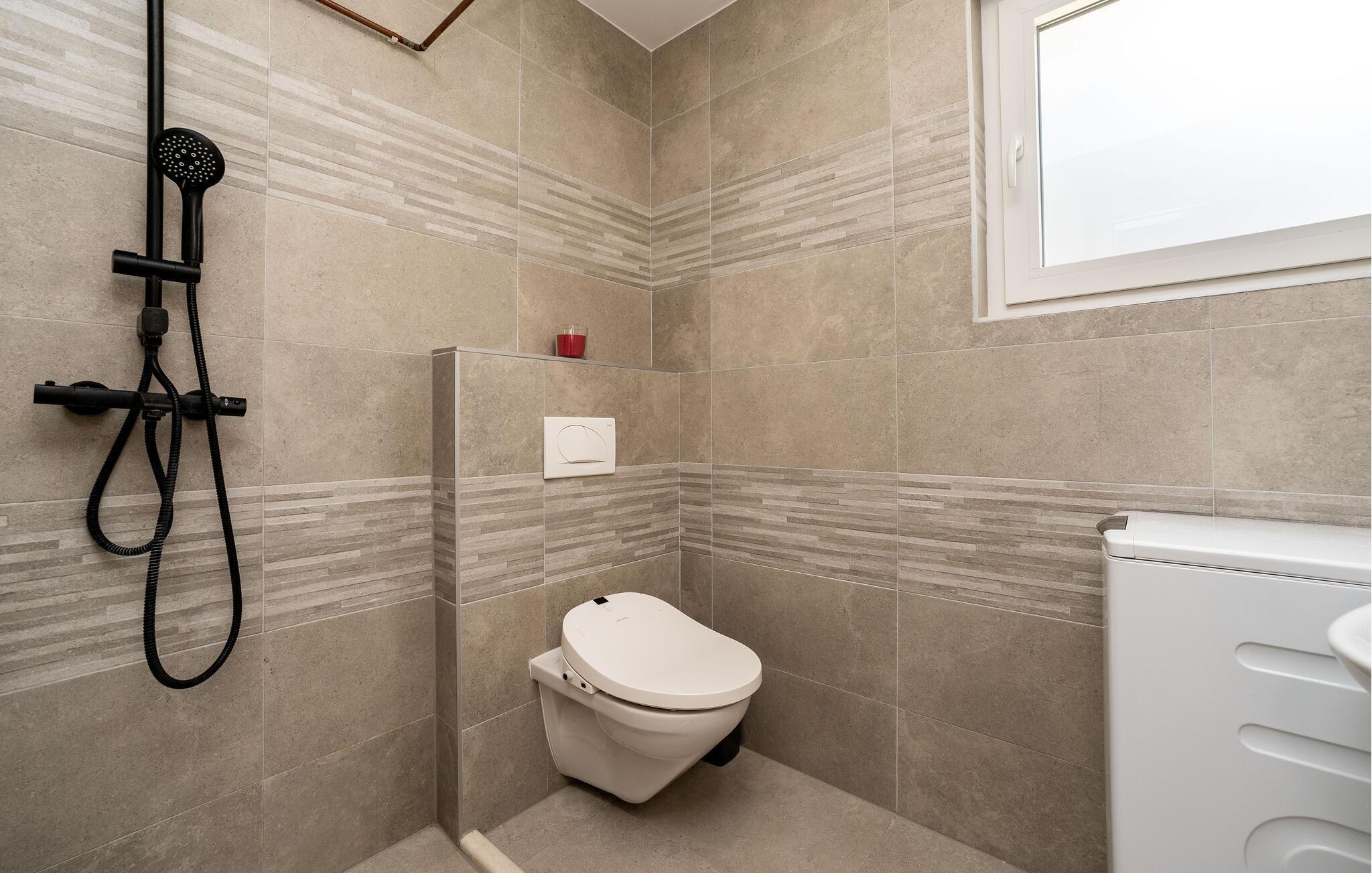 Badezimmer 4m2 (nr. 2) - WC. Warmes und kaltes Wasser. Dusche