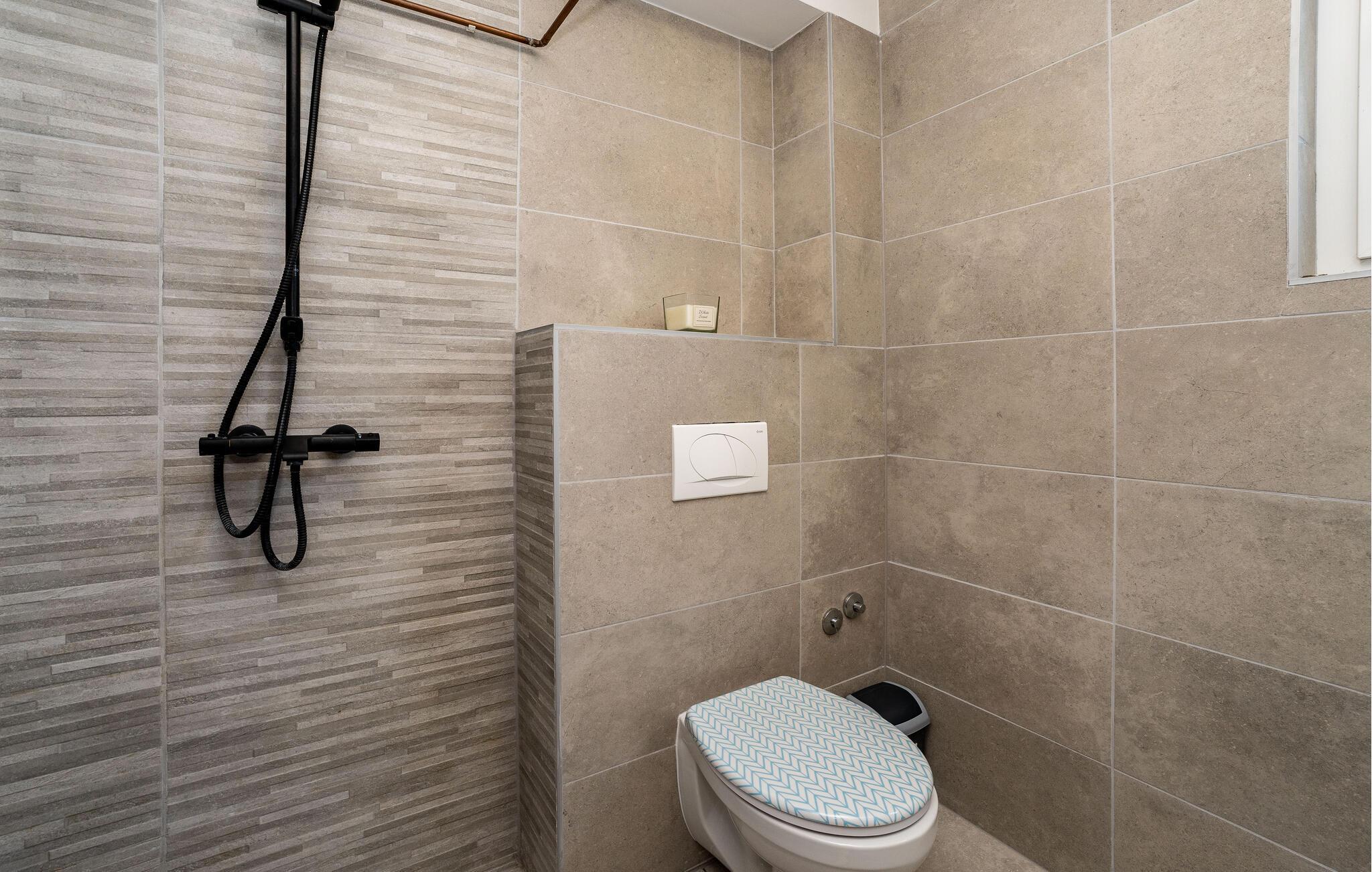 Badezimmer 4m2 (nr. 1) - WC. Warmes und kaltes Wasser. Dusche