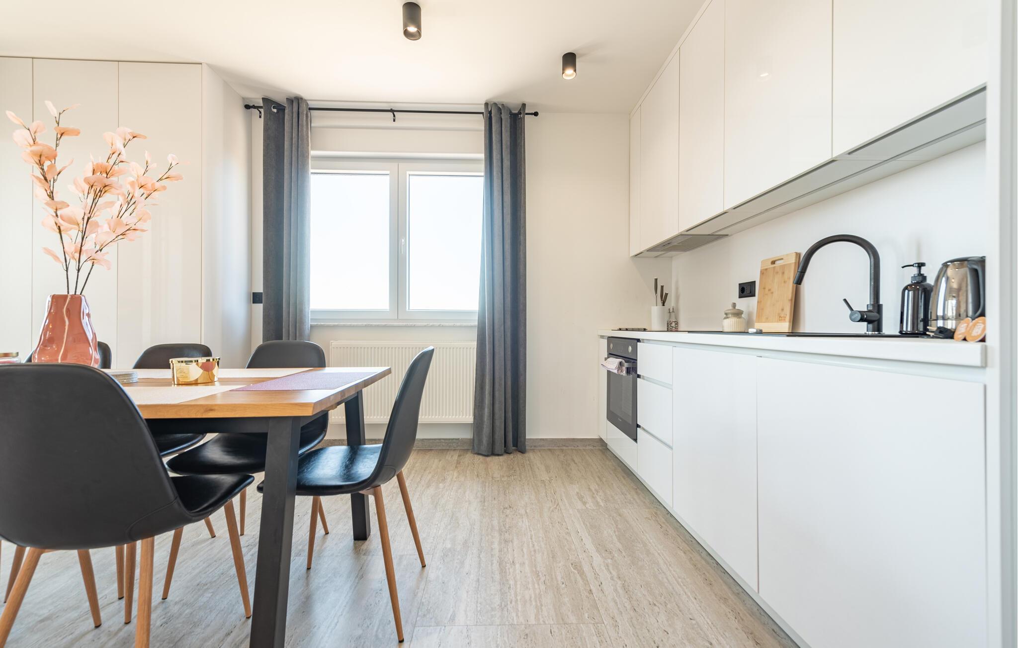 Die Wohnung empfängt Sie in unmittelbarer Nähe zum Strand und eignet sich bestens für Ihren Urlaub mit schönen Stunden am Meer, das Sie mit wenigen Schritten erreichen, und spannenden Ausflügen in der Umgebung. Die hellen Räume und eine moderne Einrichtung bilden den Rahmen um die gemeinsame Zeit und machen es Ihnen leicht, zu entspannen. Ausgewähltes Design und hochwertige Materialien schaffen eine Umgebung, in der Sie Ihre Batterien wieder aufladen können und das Wohnen zum Genuss wird. Beginnen Sie Ihre Urlaubstage mit einem leckeren Frühstück auf Ihrer privaten Terrasse und schmieden Pläne für den bevorstehenden Tag.