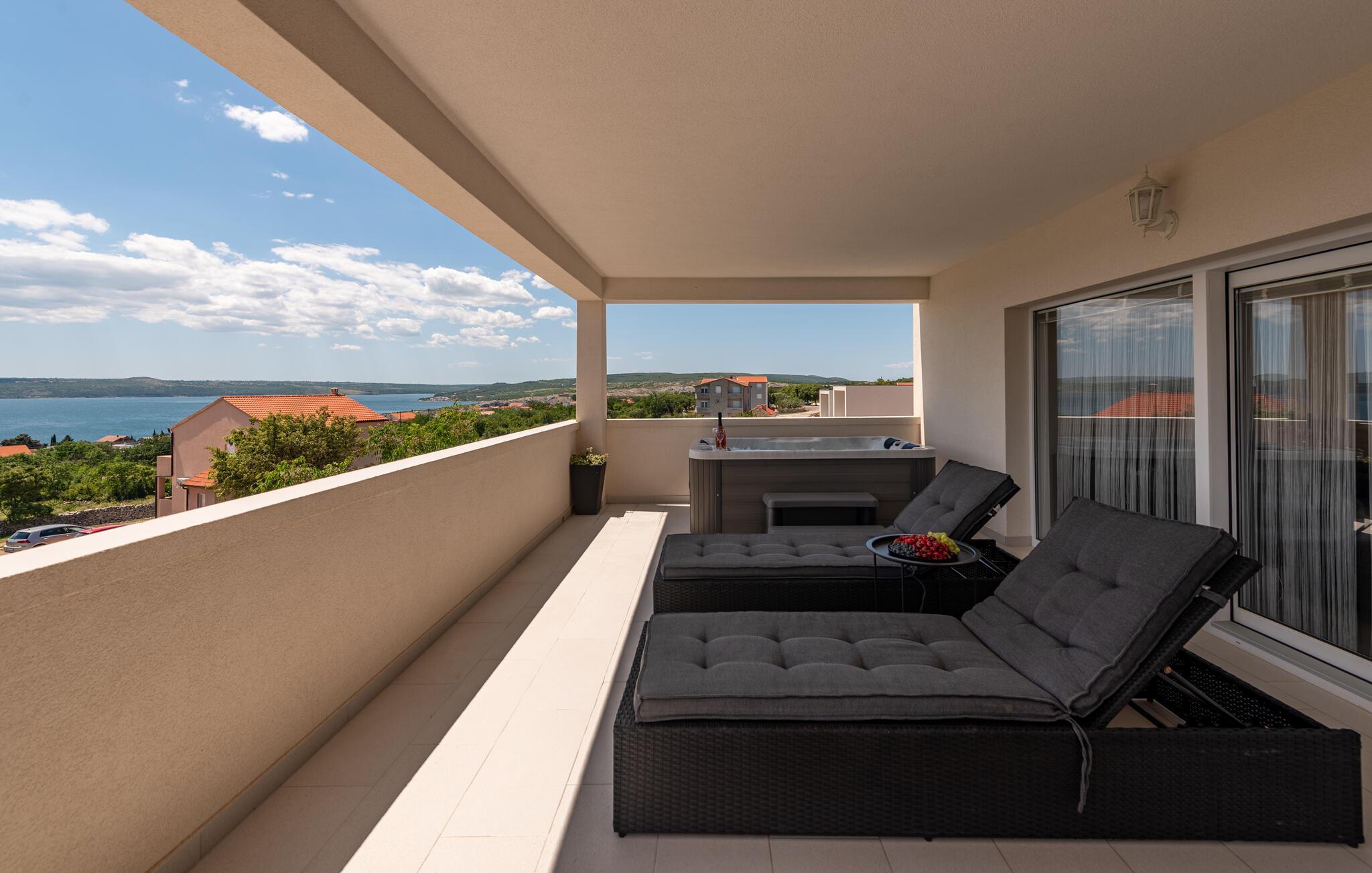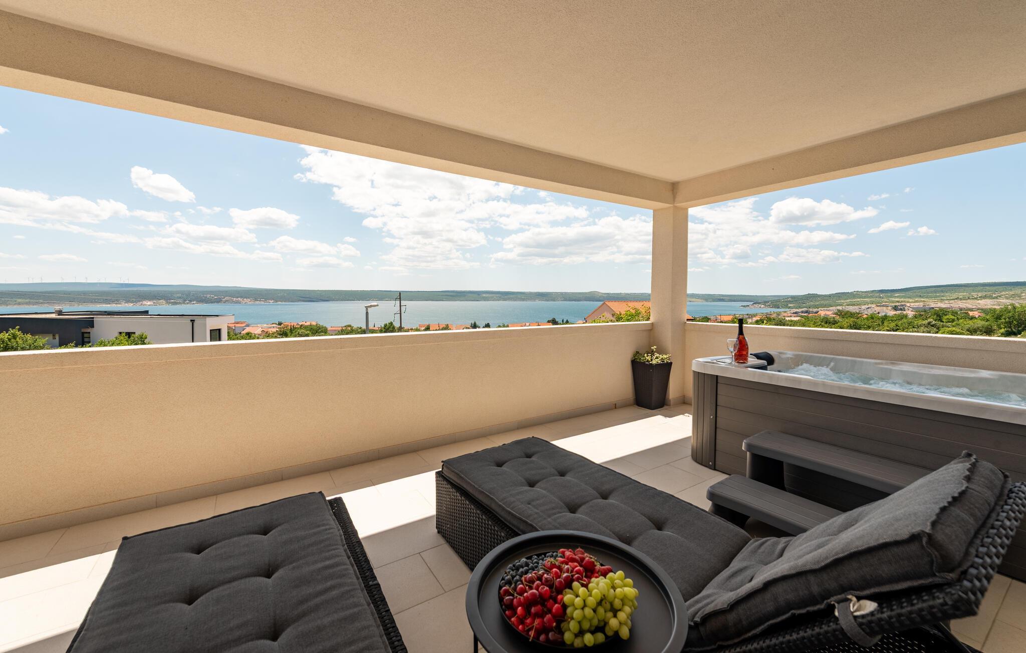 Mit einem schönem Panoramablick auf das Novigrader Meer empfängt Sie diese schöne und moderne Ferienwohnung mit Whirlpool und Gemeinschaftspool.