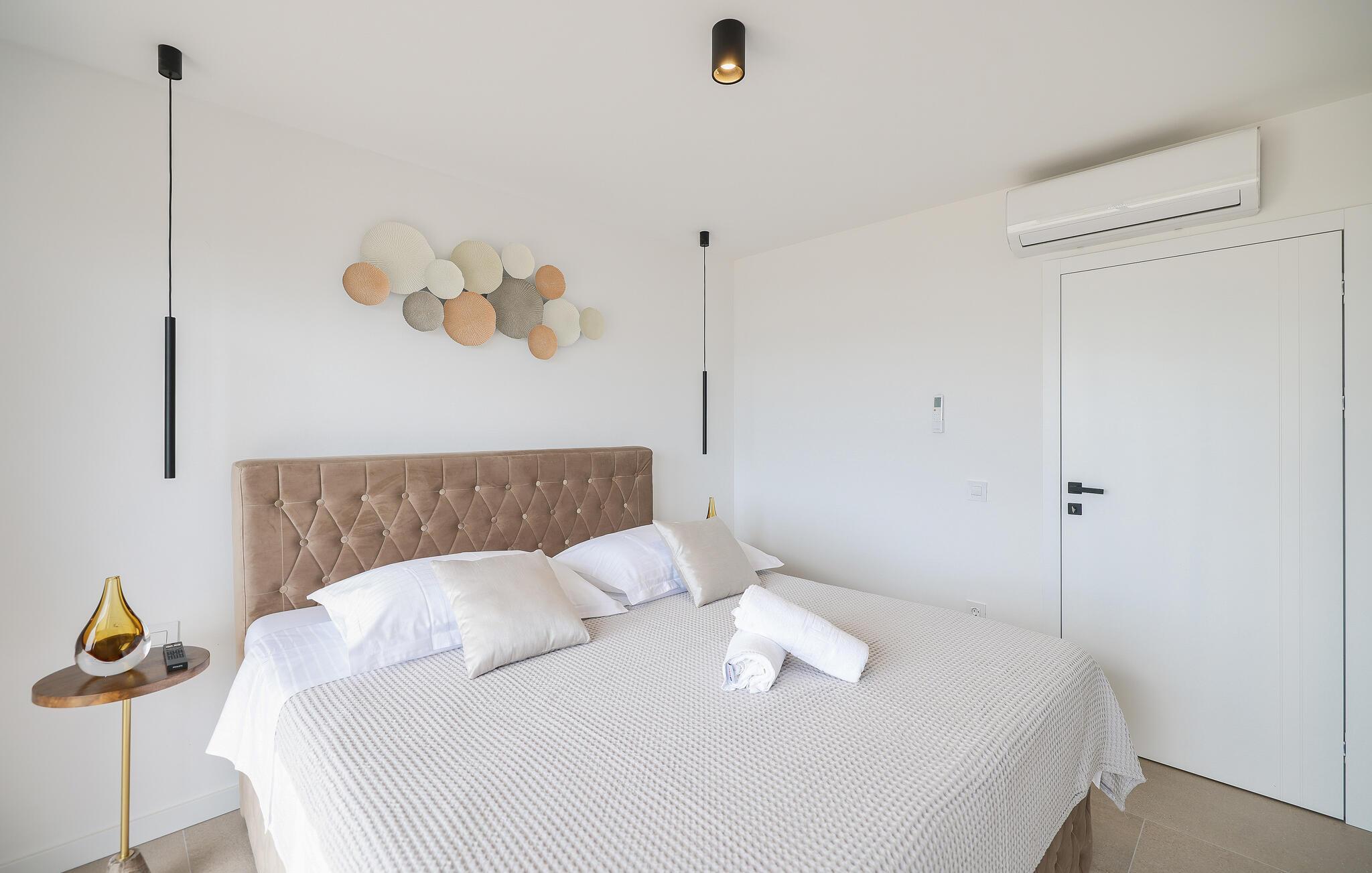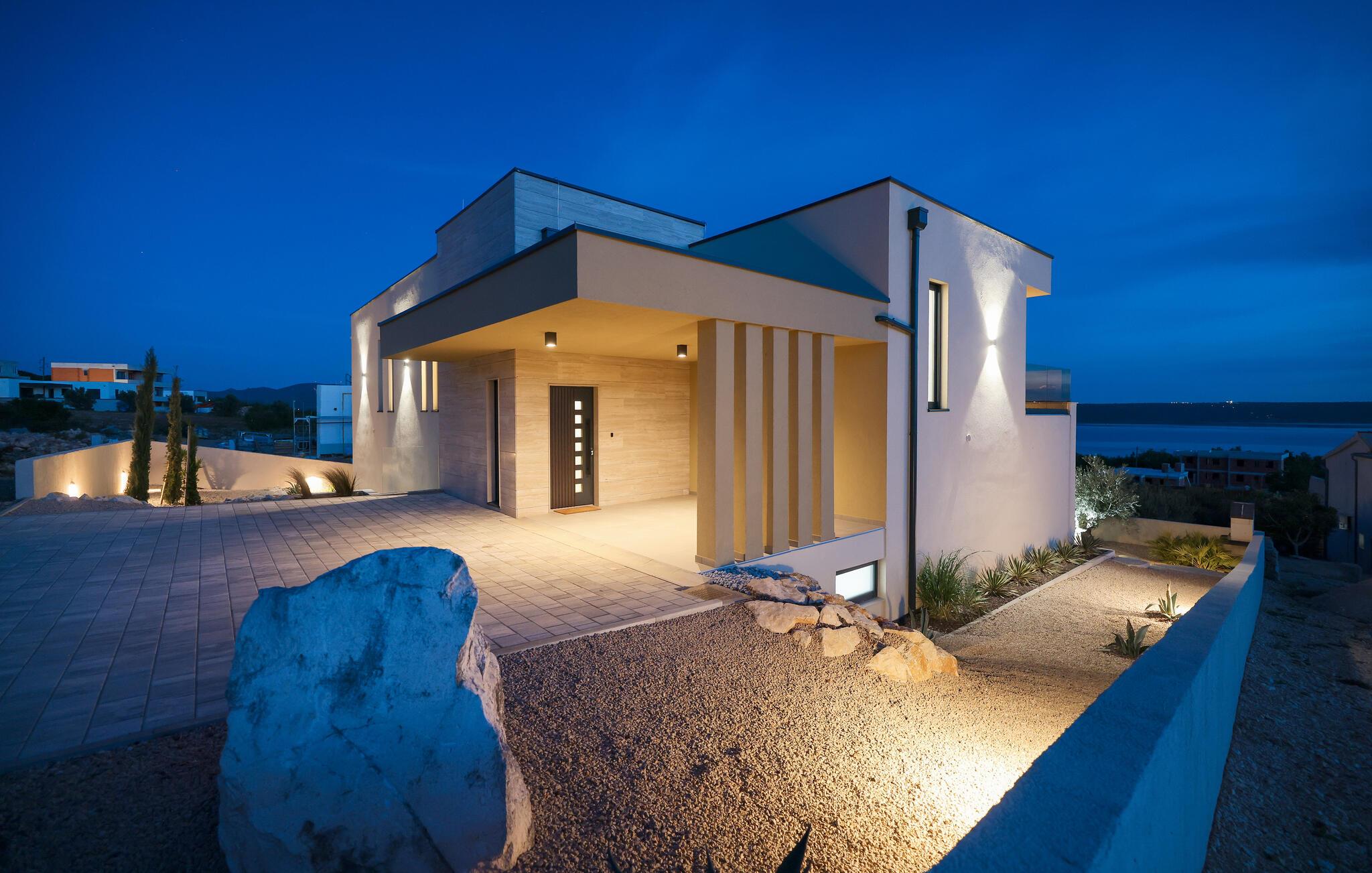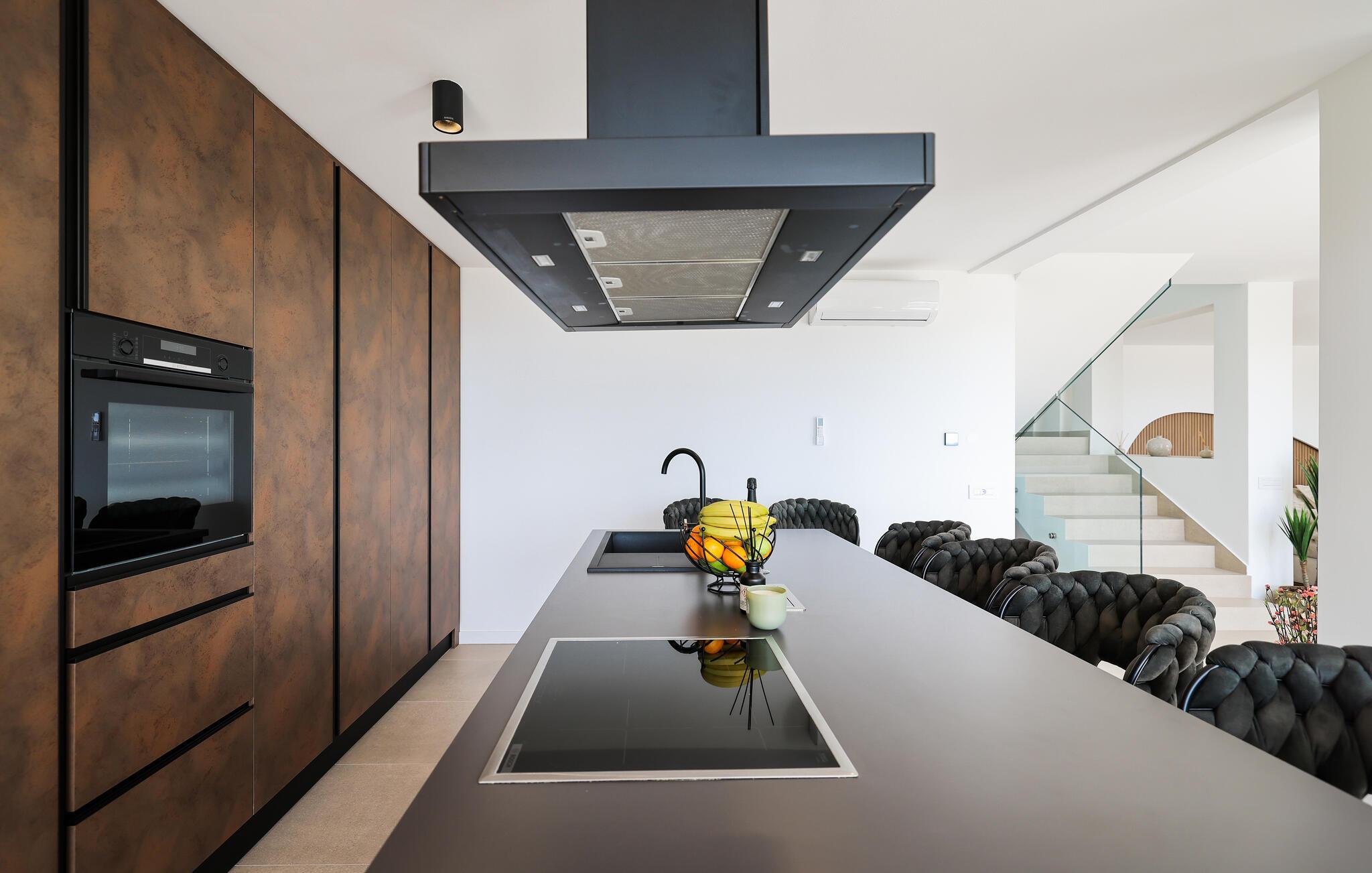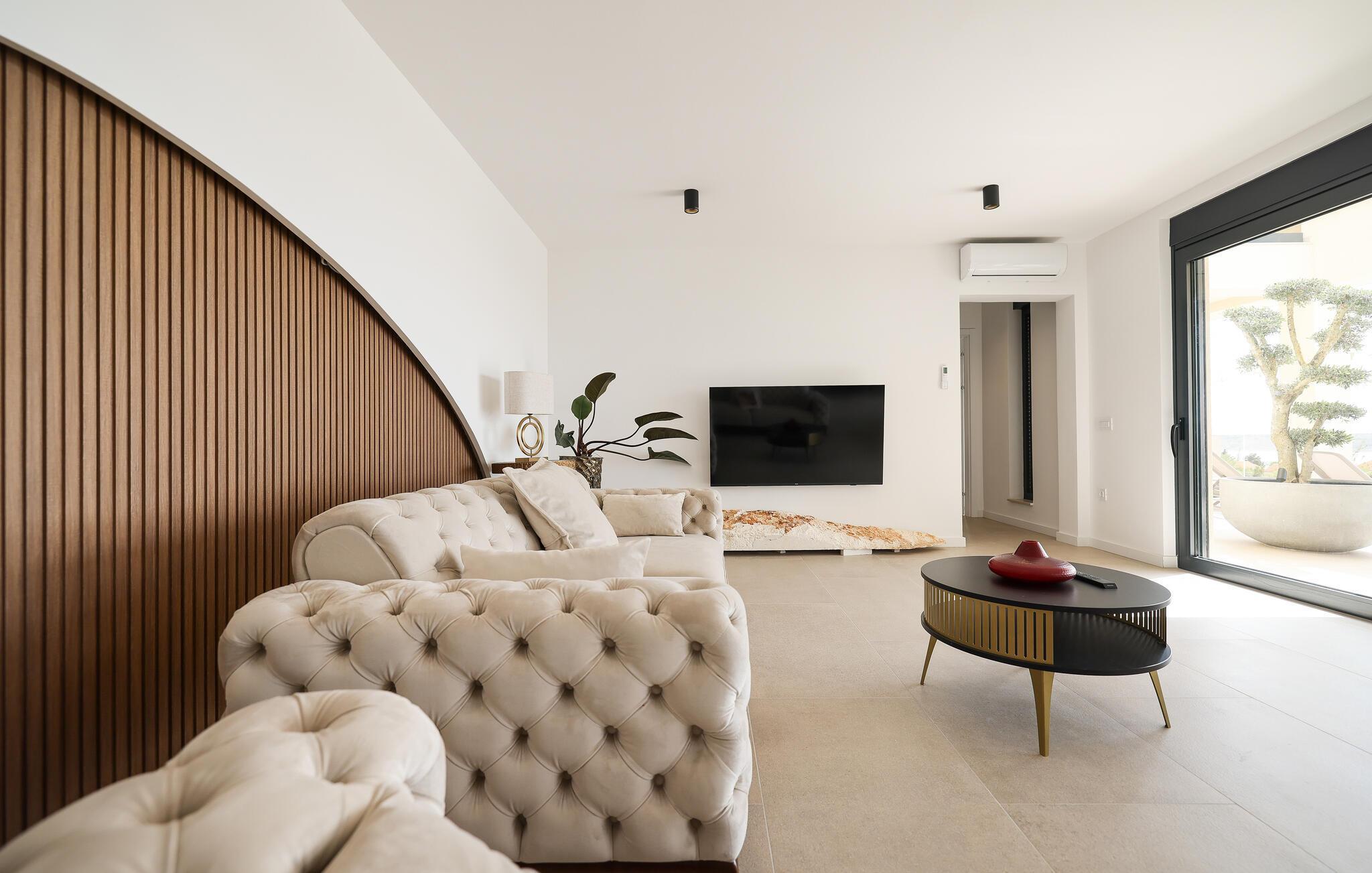 In diesem exquisiten Ferienhaus in Maslenica erleben Sie luxuriösen Komfort und elegantes Design. Die Innenräume sind mit hochwertigen Möbelstücken stilvoll eingerichtet, die ein Gefühl von Raffinesse und Wohlbehagen vermitteln. Verweilen Sie in den wunderschönen Räumen, kommen zur Ruhe oder zaubern in der großartig ausgestatteten, modernen Küche.