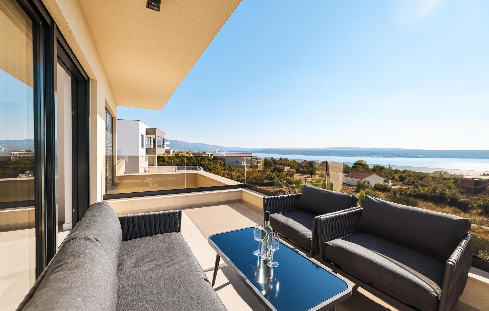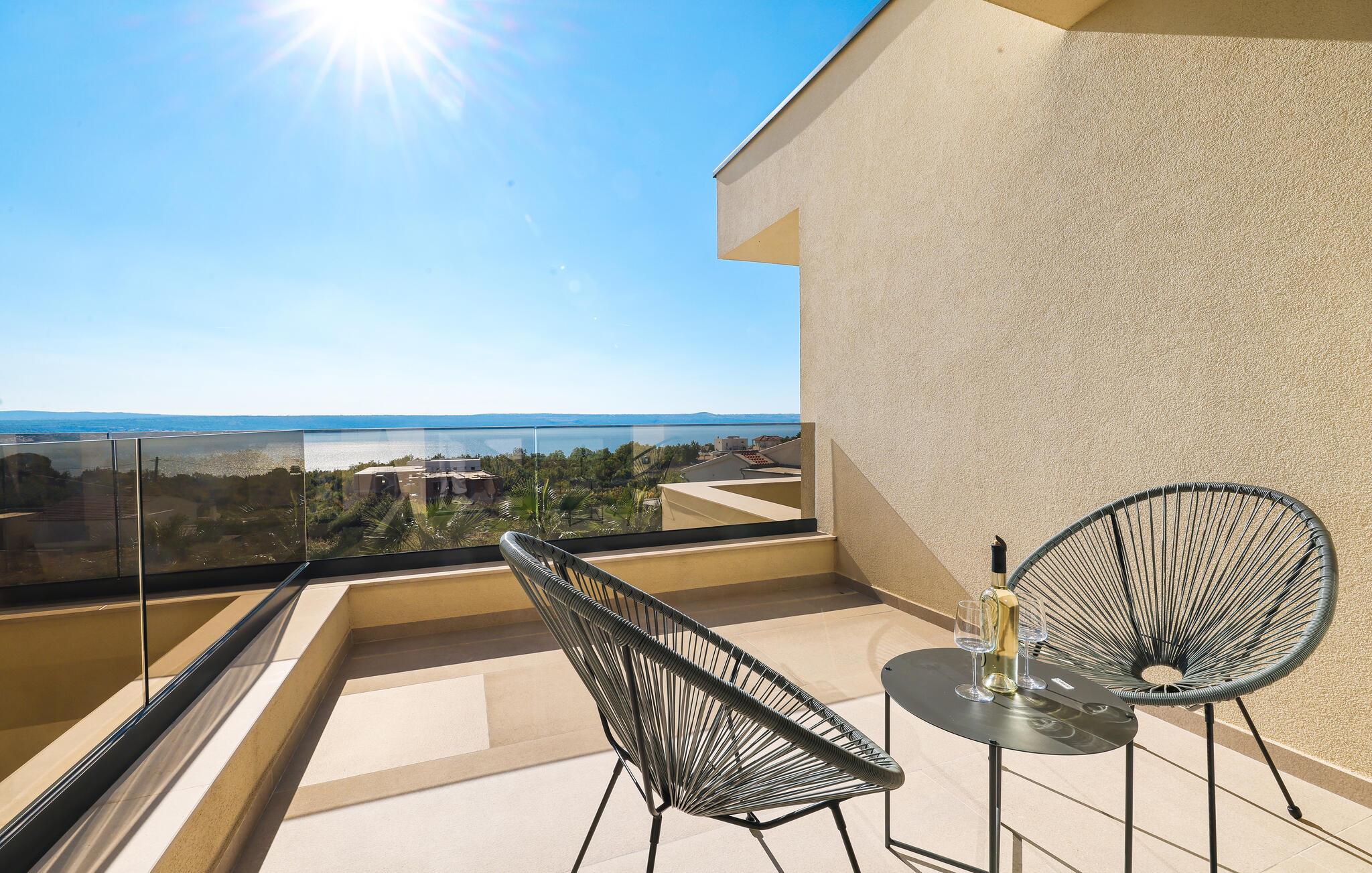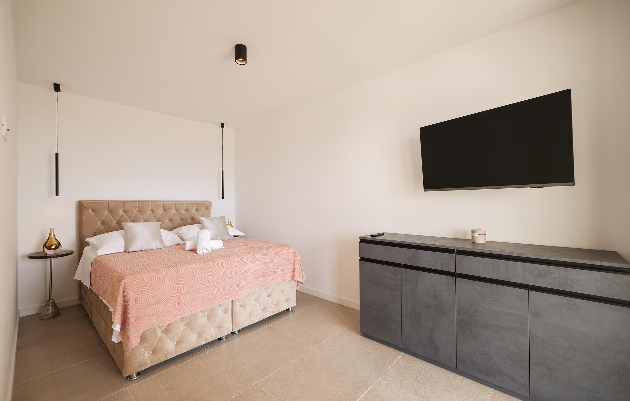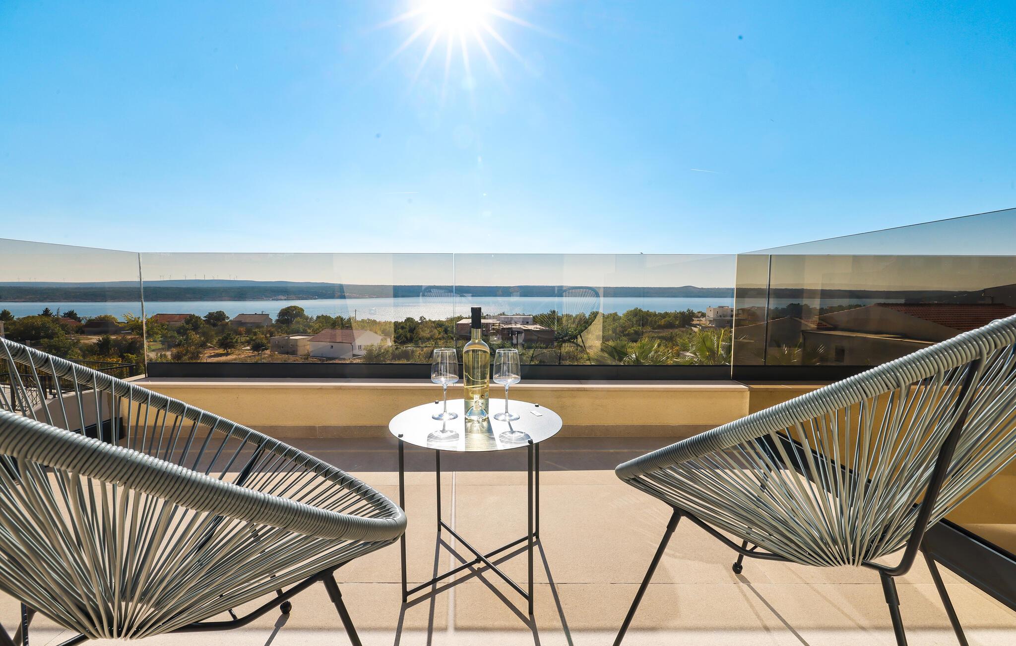 In diesem exquisiten Ferienhaus in Maslenica erleben Sie luxuriösen Komfort und elegantes Design. Die Innenräume sind mit hochwertigen Möbelstücken stilvoll eingerichtet, die ein Gefühl von Raffinesse und Wohlbehagen vermitteln. Verweilen Sie in den wunderschönen Räumen, kommen zur Ruhe oder zaubern in der großartig ausgestatteten, modernen Küche.