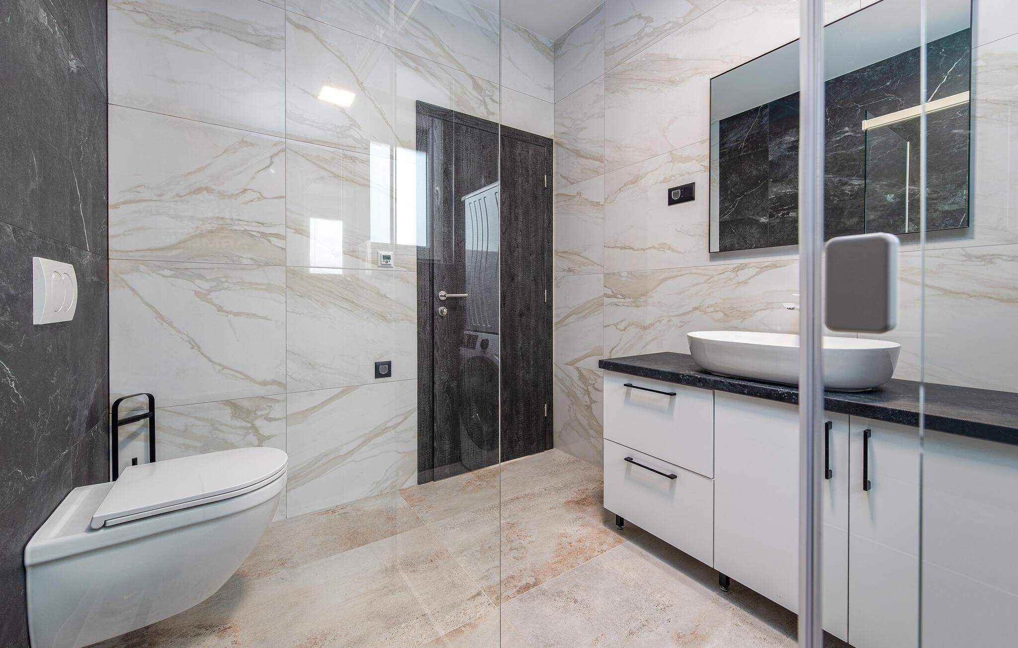 Badezimmer 7m2 (nr. 1) - WC. Warmes und kaltes Wasser. Dusche