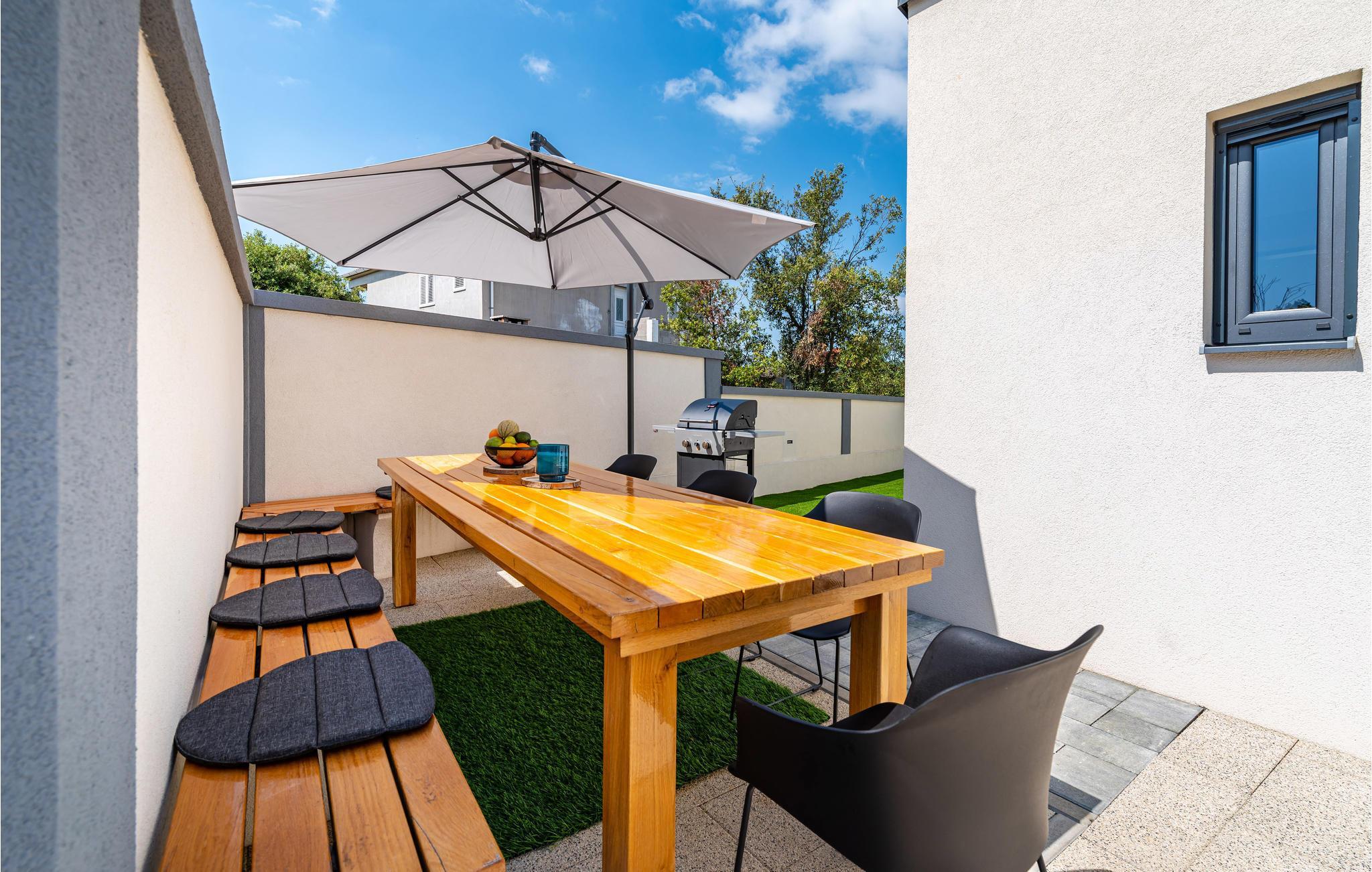 Freuen Sie sich auf einen unvergesslichen und großartigen Aufenthalt in dieser stilvoll und komplett eingerichteten Unterkunft. Hier wird es Ihnen an nichts fehlen. Die helle und moderne Einrichtung sorgt für äußerst hohen Komfort. Sie finden viele verschiedene Plätze, an denen Sie sich sonnen können, mit Ihren Liebsten zusammensitzen oder entspannen können. Auf dem Balkon, der Terrasse, am Pool im Freizeitkeller – jedem ist hier das Richtige geboten. Lassen Sie Ihre Haut von der Sonne wärmen, nachdem Sie eine erfrischende Runde im Pool gedreht haben und lassen Sie Ihre Kinder unbesorgt im Garten bei den Spielgeräten spielen. In der Außenküche bereiten Sie sich und Ihren Liebsten an der frischen Luft ein leckeres Barbecue mit lokalen Spezialitäten zu.