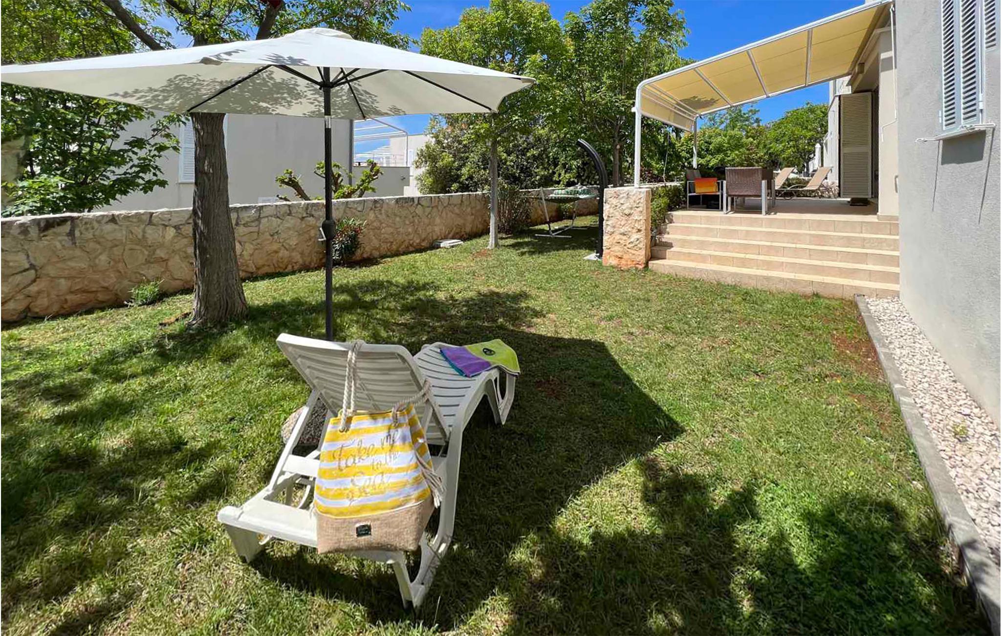 Treten Sie mit dem Morgenkaffee auf die Terrasse und genießen Sie die ersten Sonnenstrahlen, während Ihre Kinder begeistert spielen, abends lassen Sie hier den Tag vielleicht mit kalten Getränken und einem leckeren Essen vom Grill ausklingen. Die Spiel- und Fitnessgeräte teilen Sie mit den Gästen einer weiteren Wohnung.