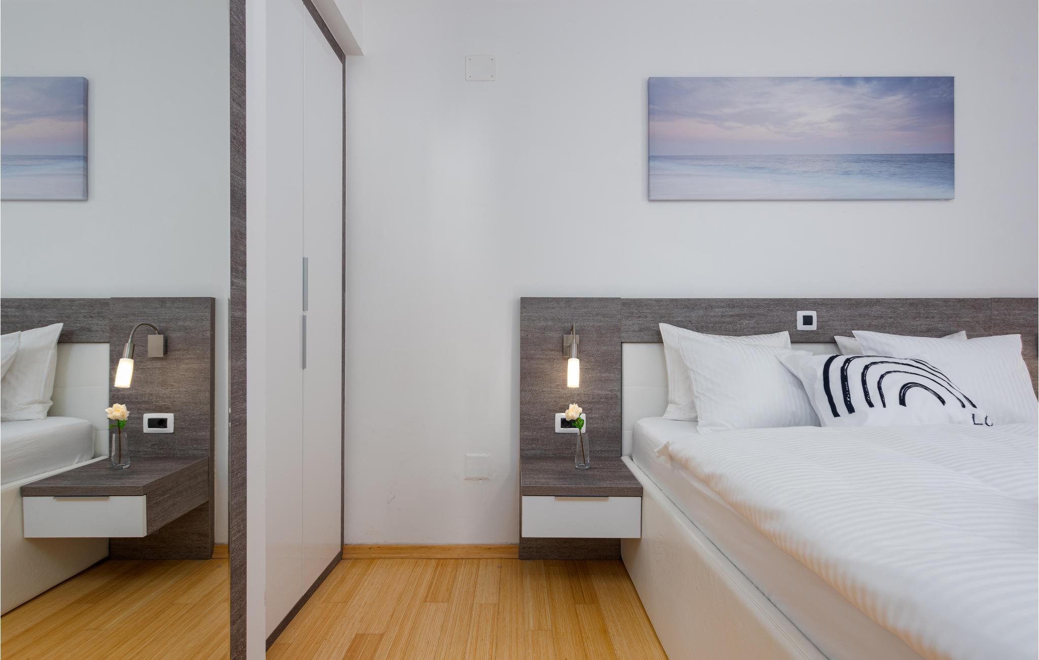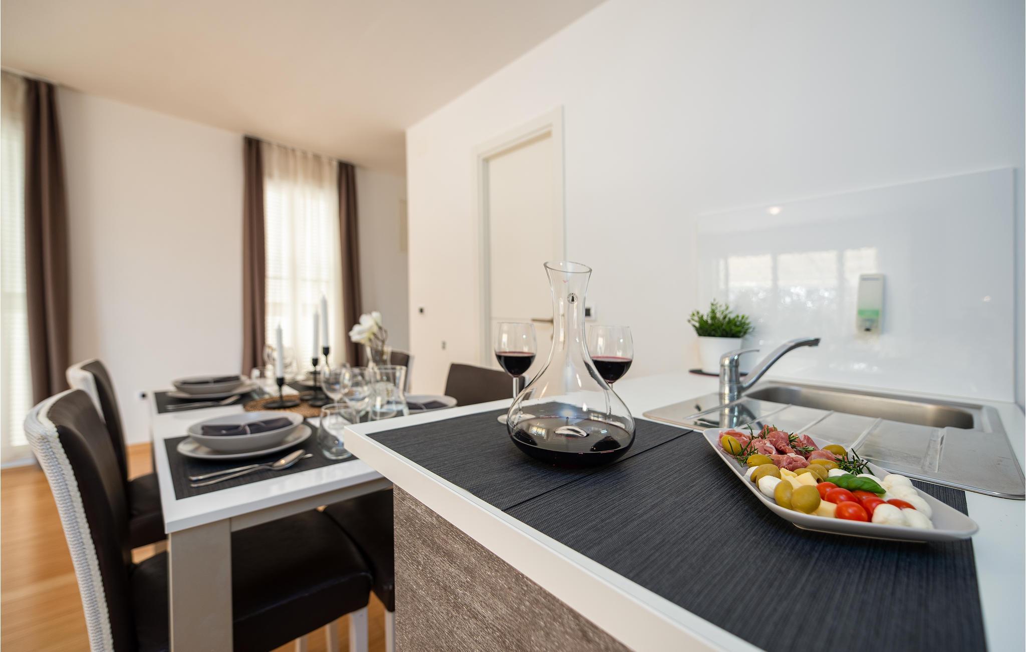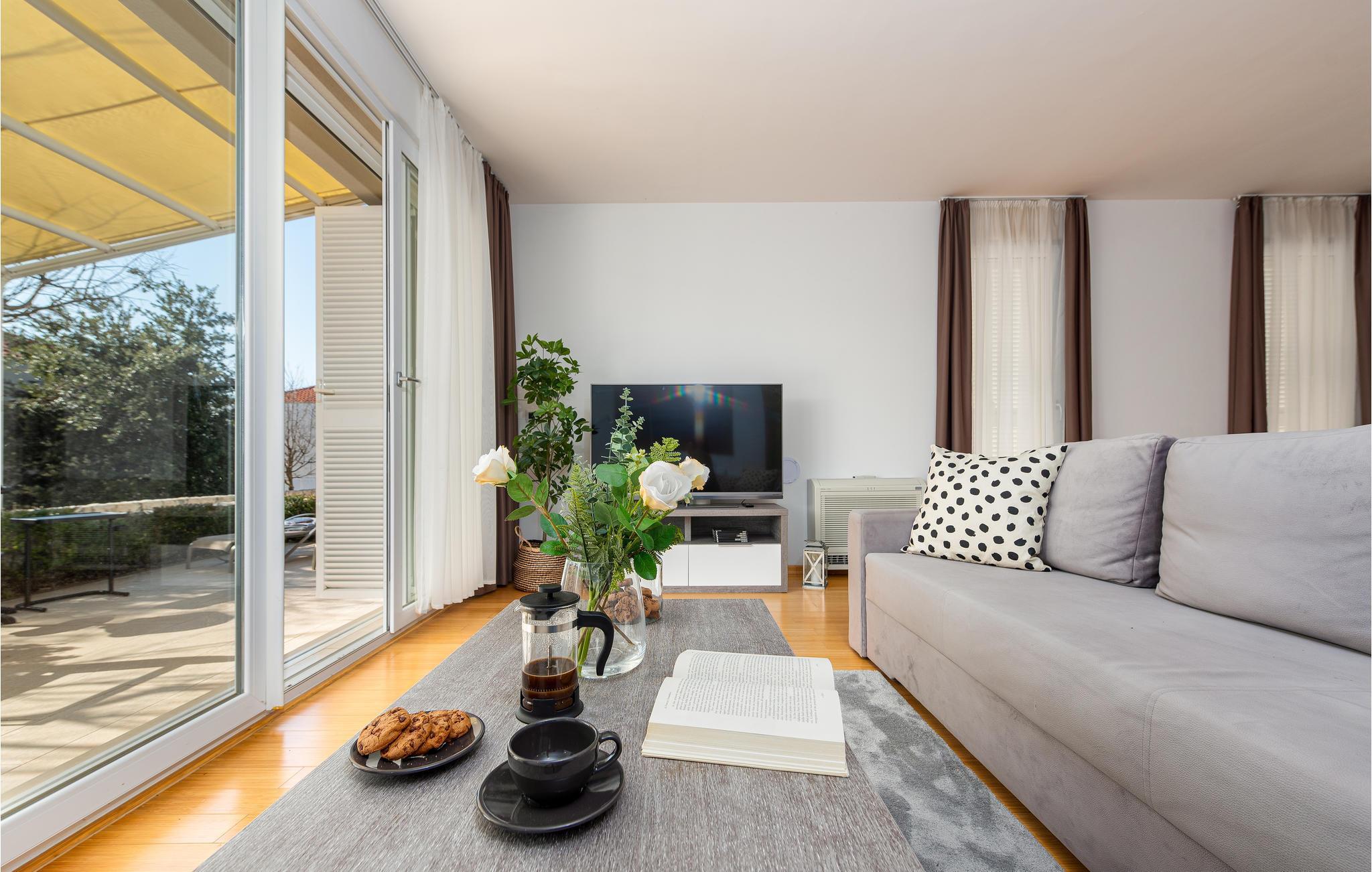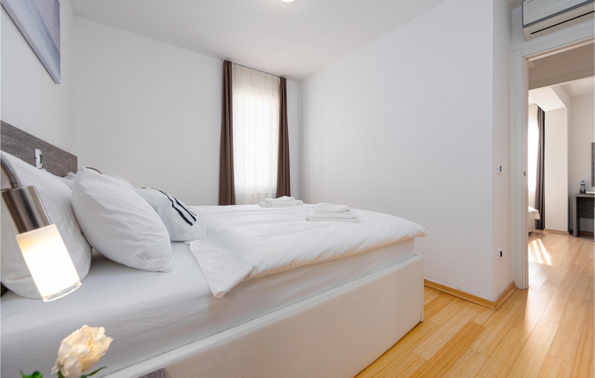 Gehen Sie die paar Schritte zum Meer und genießen Sie das klare Wasser am Privatstrand, wo kostenlose Sonnenliegen für Sie bereitstehen. Besuchen Sie die faszinierende Stadt Zadar, die neben ihrer fantastischen Lage an der Küste auch viele imposante historische Bauwerke zu bieten hat. Schlendern Sie etwa über das römische Forum, oder tauchen Sie tief in die Geschichte der frühen Bewohner im archäologischen Museum ein. Eine nahezu perfekte Aussicht bietet sich Ihnen bei einem Spaziergang auf der Stadtmauer. Beenden Sie Ihren Ausflug auf der Uferpromenade und lassen Sie sich von einem spektakulären Sonnenuntergang über der Adria verzaubern.