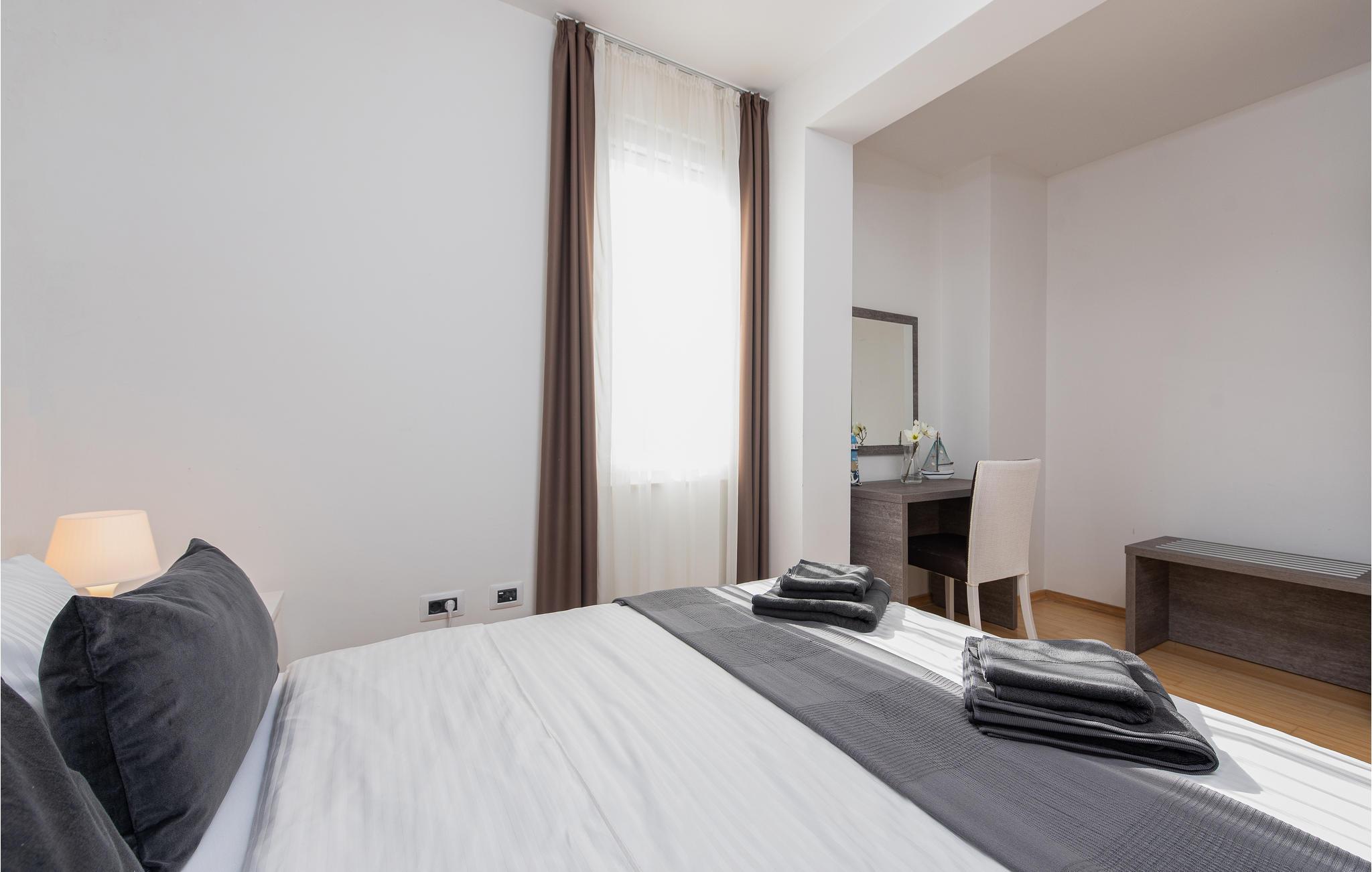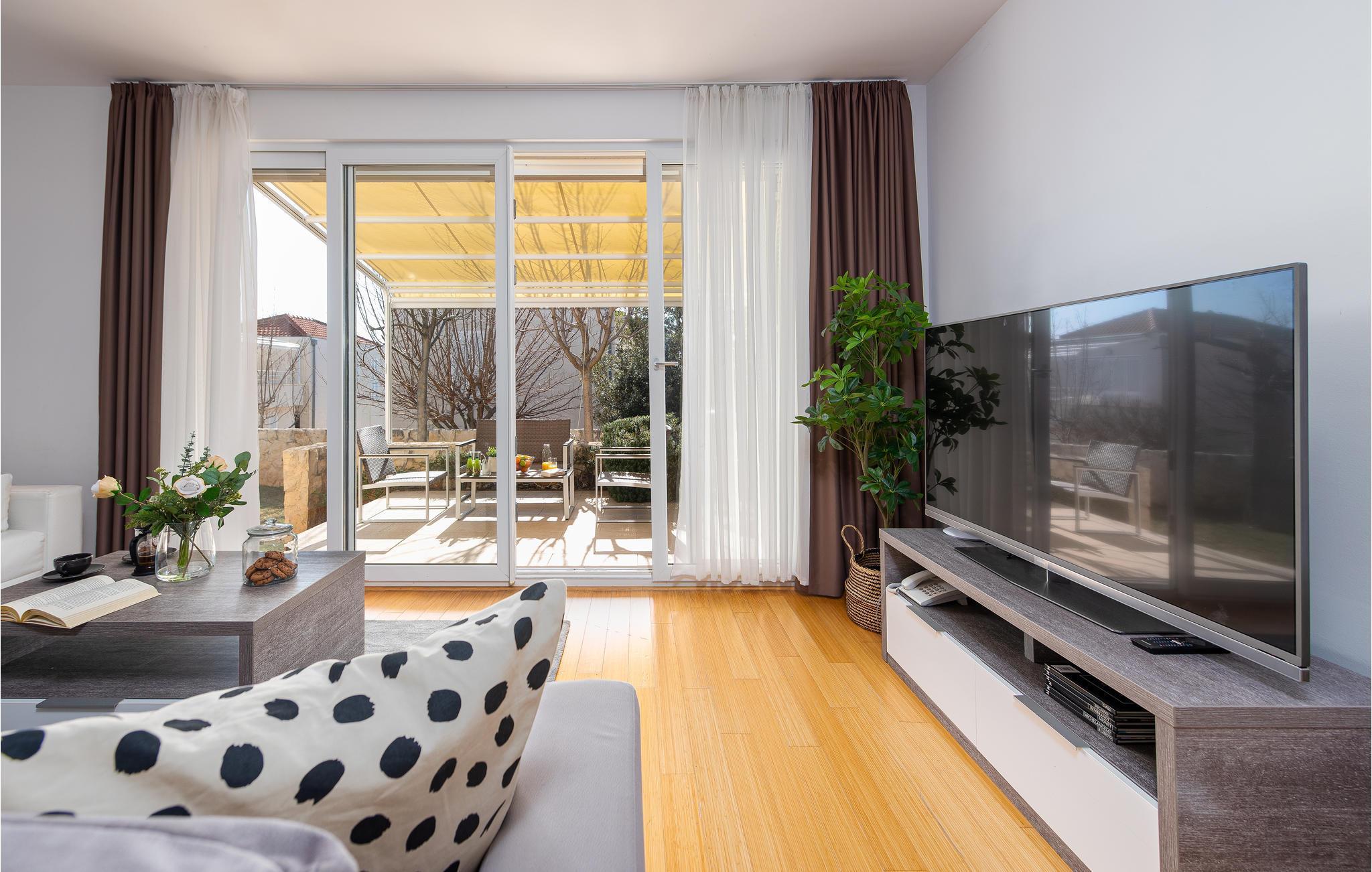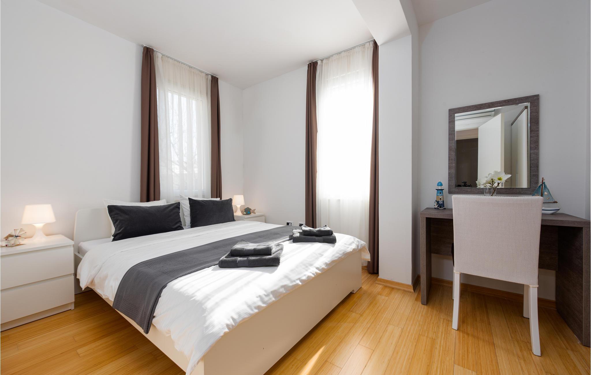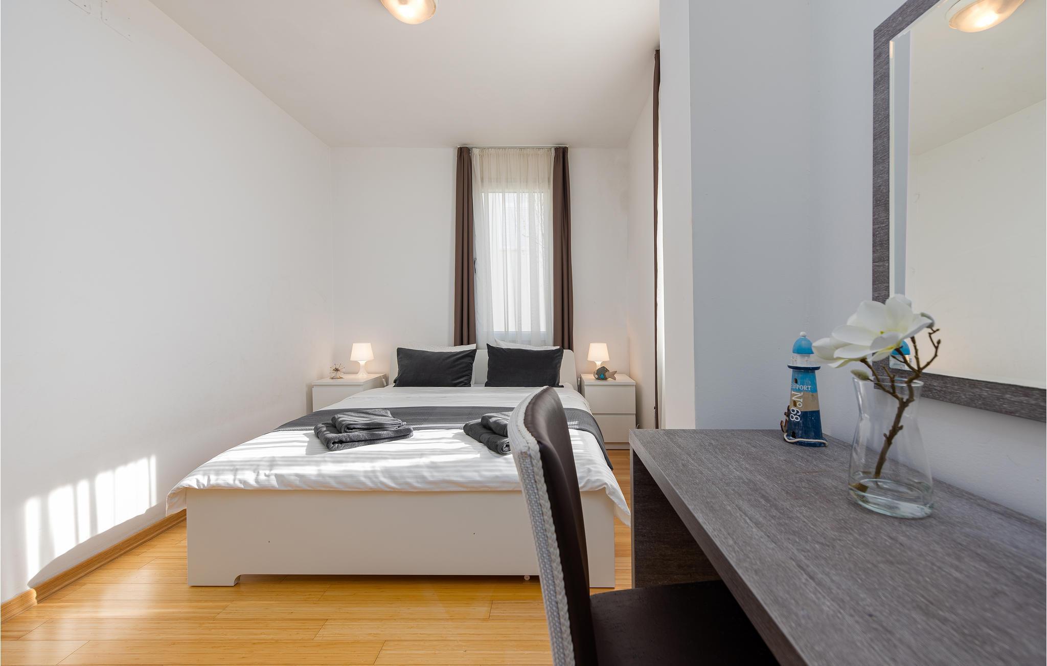 Gehen Sie die paar Schritte zum Meer und genießen Sie das klare Wasser am Privatstrand, wo kostenlose Sonnenliegen für Sie bereitstehen. Besuchen Sie die faszinierende Stadt Zadar, die neben ihrer fantastischen Lage an der Küste auch viele imposante historische Bauwerke zu bieten hat. Schlendern Sie etwa über das römische Forum, oder tauchen Sie tief in die Geschichte der frühen Bewohner im archäologischen Museum ein. Eine nahezu perfekte Aussicht bietet sich Ihnen bei einem Spaziergang auf der Stadtmauer. Beenden Sie Ihren Ausflug auf der Uferpromenade und lassen Sie sich von einem spektakulären Sonnenuntergang über der Adria verzaubern.