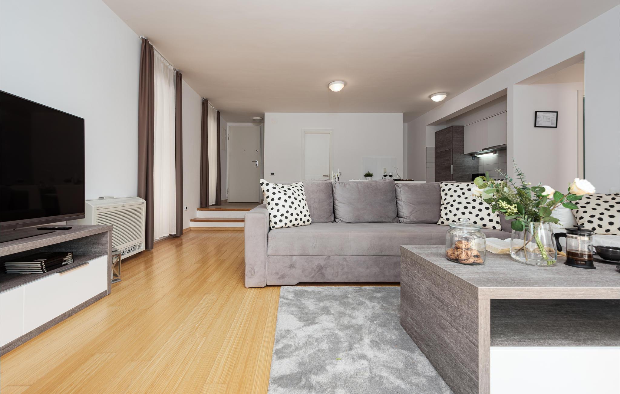Machen Sie es sich in der komfortablen Wohnung so richtig gemütlich, die mit hellen Räumen mit modernem Interieur den idealen Rahmen für eine erholsame Auszeit bietet. Hier können Sie in vollen Zügen die gemeinsamen Tage genießen, die stilvolle Einrichtung macht es Ihnen leicht, zu entspannen. Stärken Sie sich morgens mit einem leckeren Frühstück, schwimmen Sie ein paar Runden im einem der drei gemeinsam genutzten Pools, bevor Sie zu einem Ausflug in die Umgebung aufbrechen. Nach einem erlebnisreichen Tag bietet die Saunalandschaft und das Fitnesscenter des Resorts wohltuende Erholung.