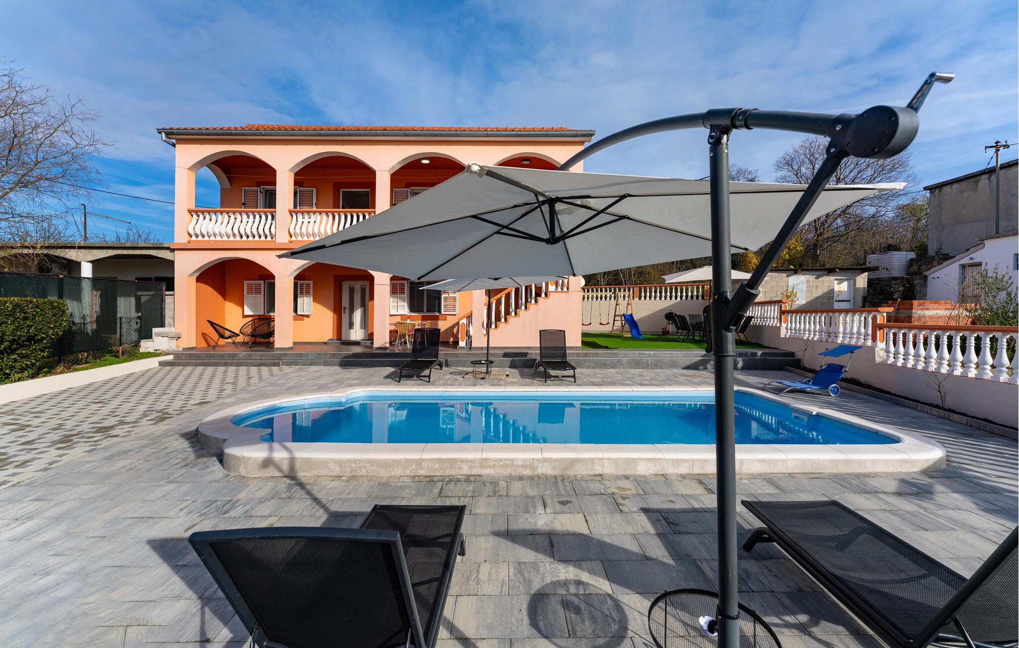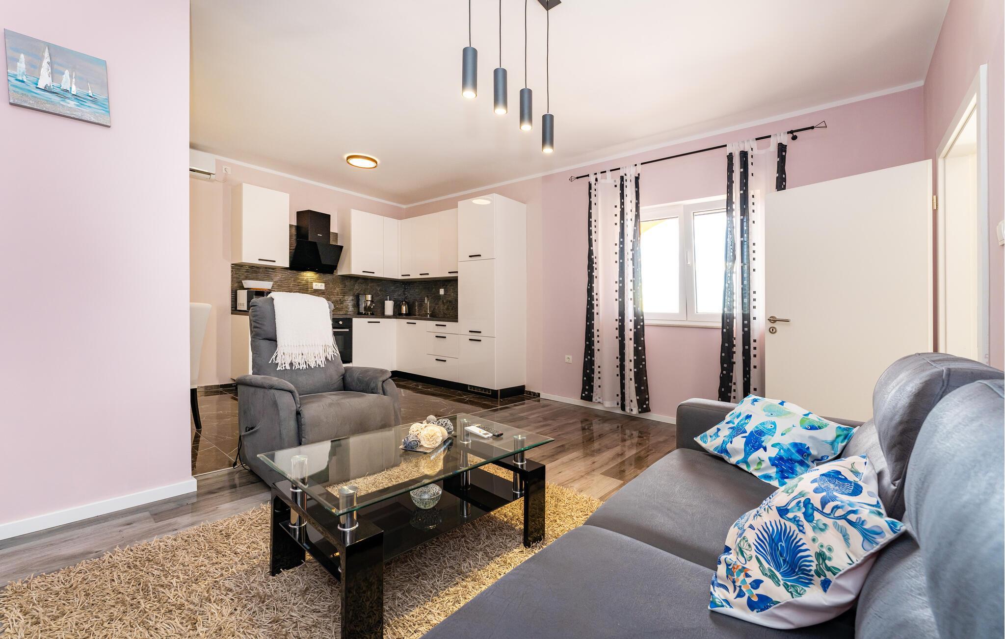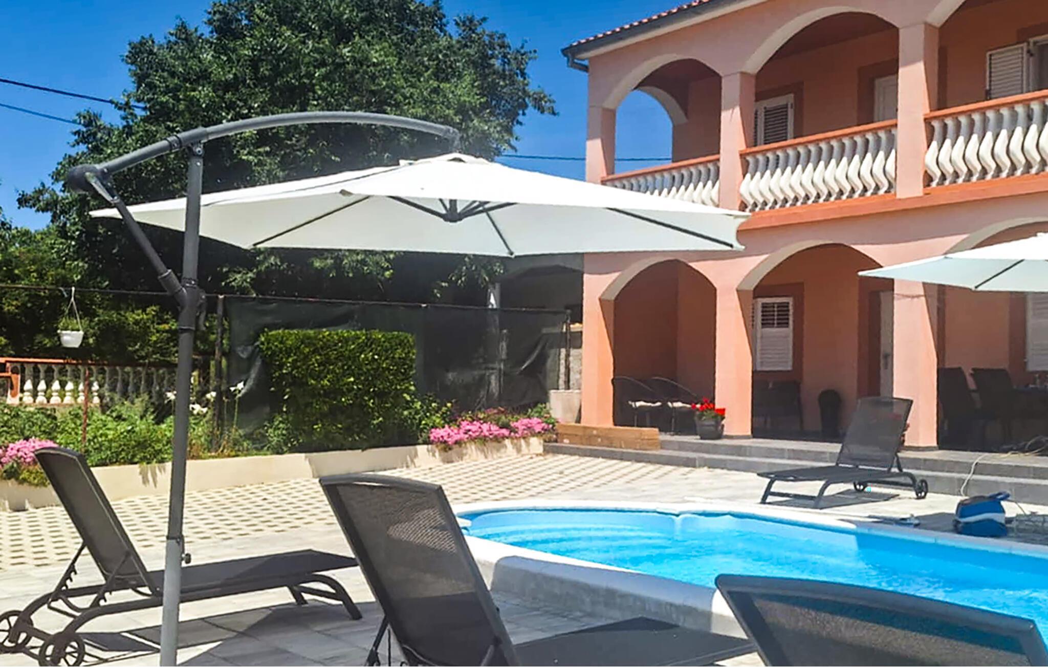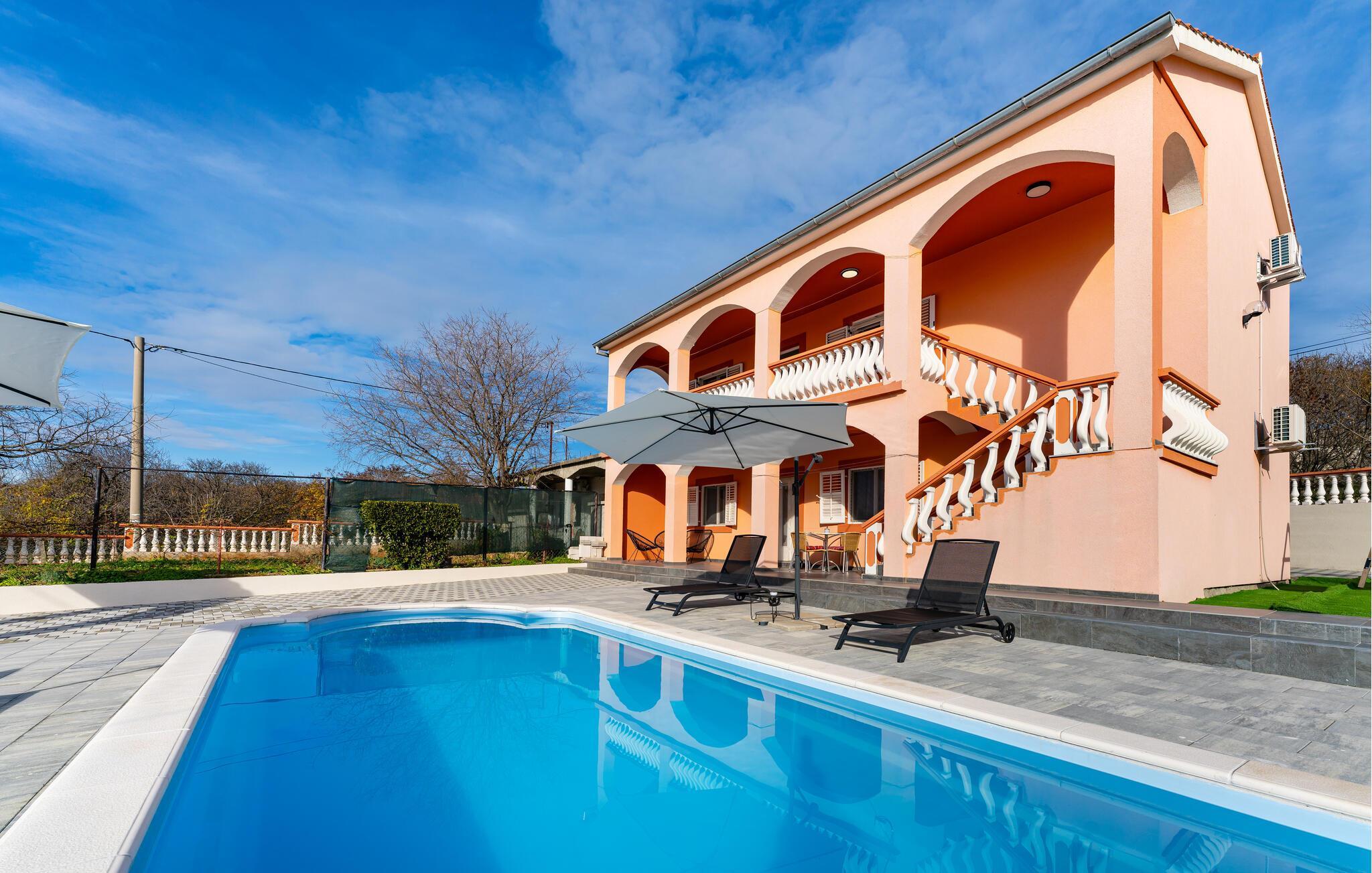 Ihr großzügiges Anwesen in Slivnica, nahe Zadar, verfügt über zwei modern eingerichtete Apartments, die keine Wünsche offenlassen. Kochen Sie gemeinsam in einer der beiden Küchen des Hauses, die mit modernen Geräten und stilvollem Design überzeugen. Und verbringen Sie gesellige Stunden in den gemütlichen Wohnbereichen mit elegantem Ambiente. Vom Balkon im Obergeschoss haben Sie eine fantastische Aussicht über die umliegende Landschaft.