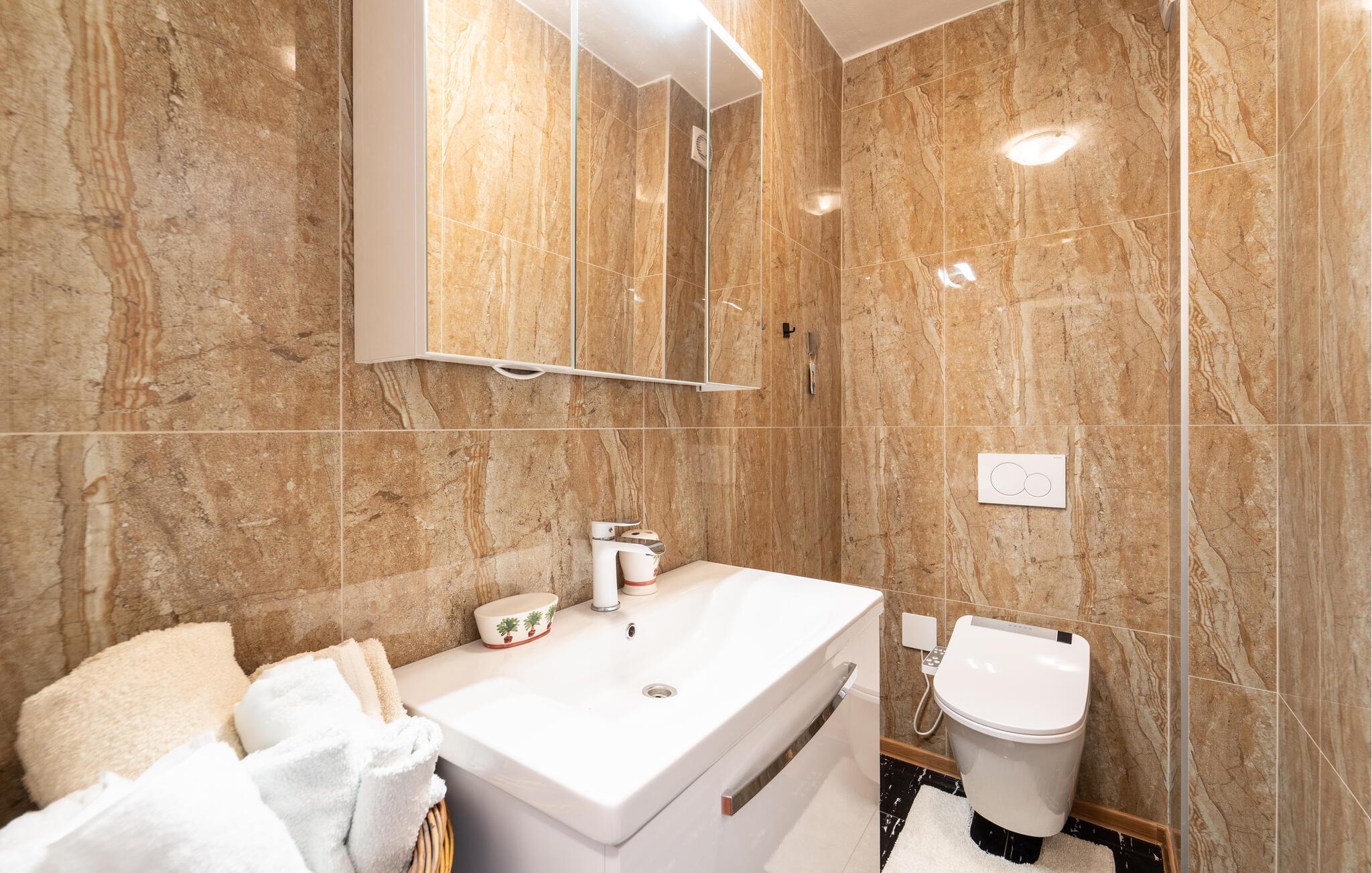 Badezimmer 8m2 (nr. 2) - WC. Warmes und kaltes Wasser. Badewanne