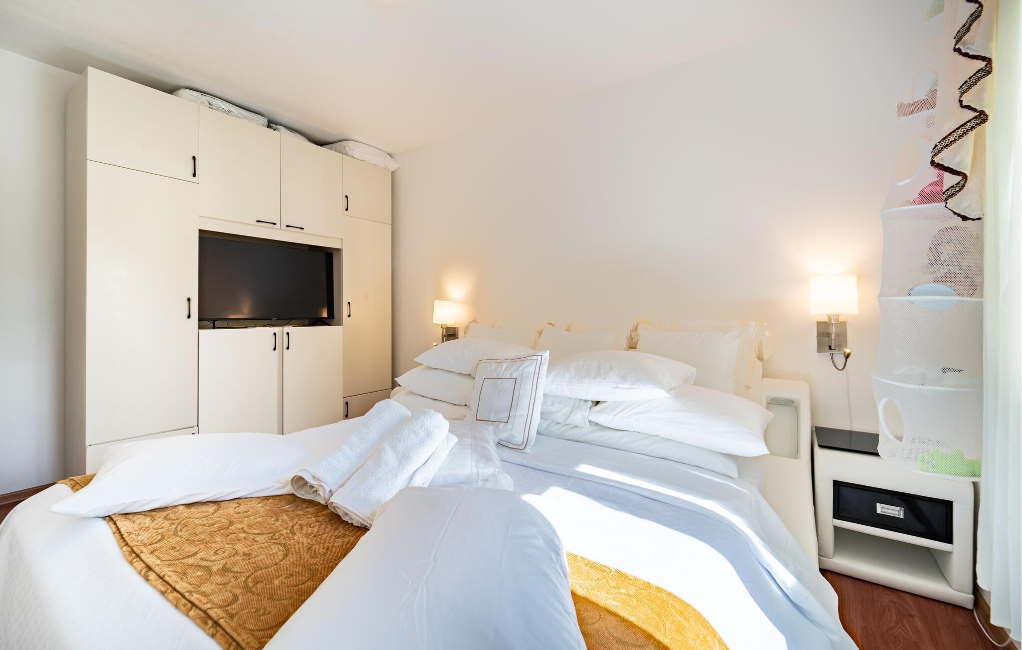 Reisen Sie mit Ihrer Familie nach Sukosan und verbringen einen erholsamen Urlaub in dieser ansprechenden Ferienwohnung. Gemeinsam mit Ihrer Großfamilie können Sie sich hier direkt wohlfühlen, in die Betten einsinken und Ihren Kofferinhalt verstauen. Die schöne Wohnung ist mit allen Annehmlichkeiten ausgestattet, die Sie für Ihren Ferienalltag, beim Kochen, Essen oder Spielen brauchen. Auch Wellnesszeiten kommen dank Whirlpool-Badewanne für zwei Personen nicht zu kurz. Wenn Sie sportlicher unterwegs sind, können Sie sich auf einen gemeinsamen Fitnessraum mit guter Ausstattung freuen.