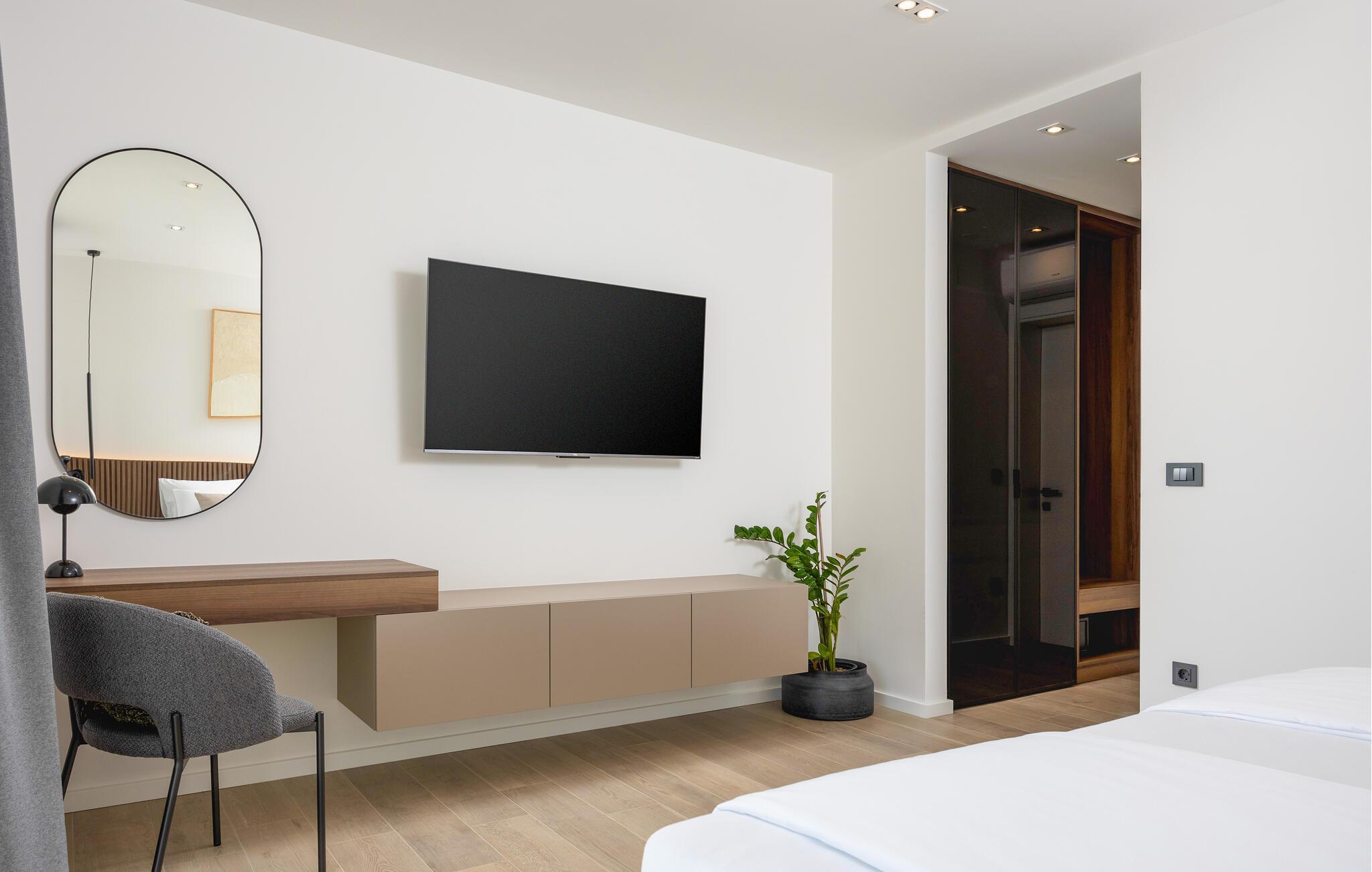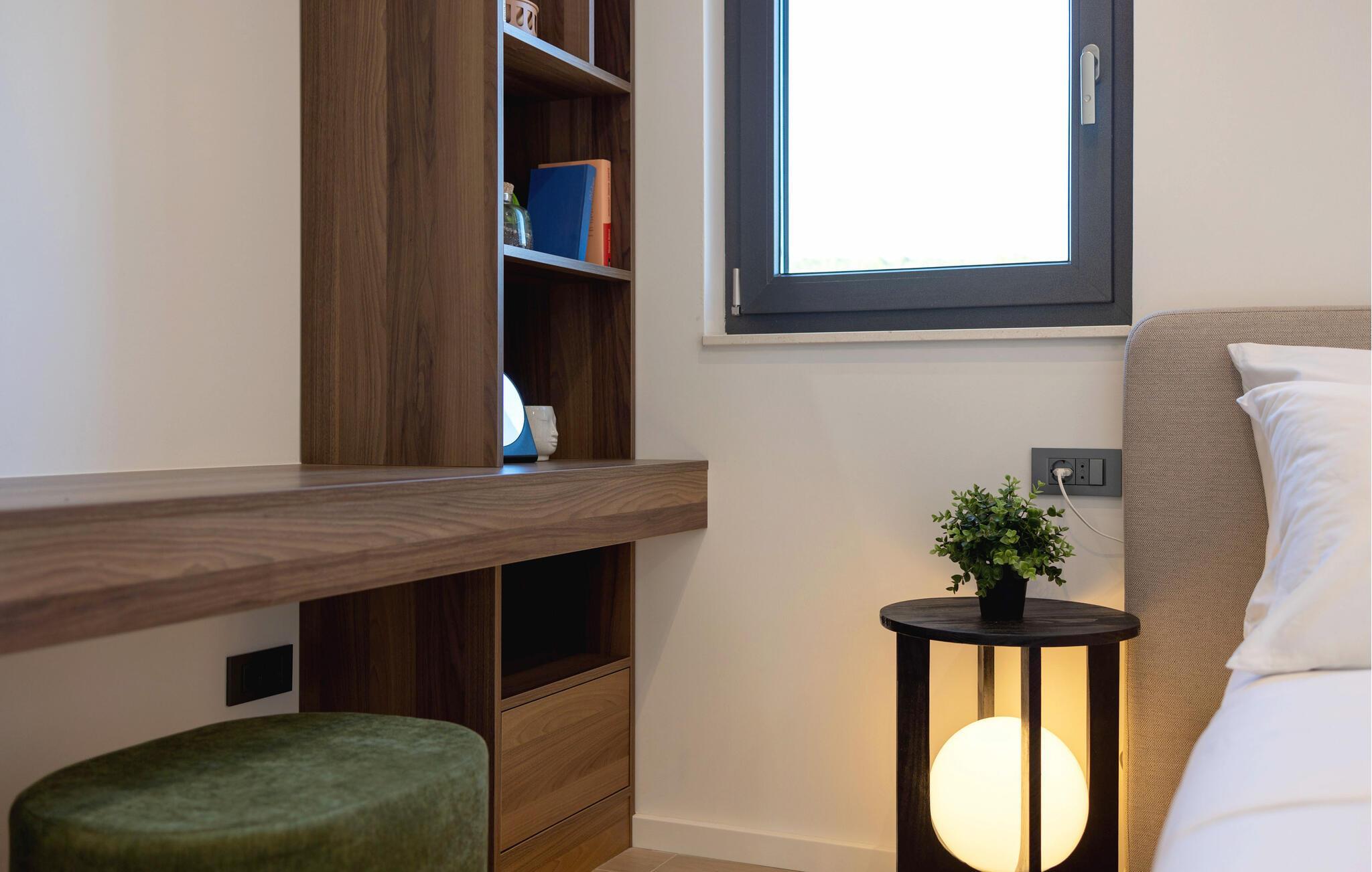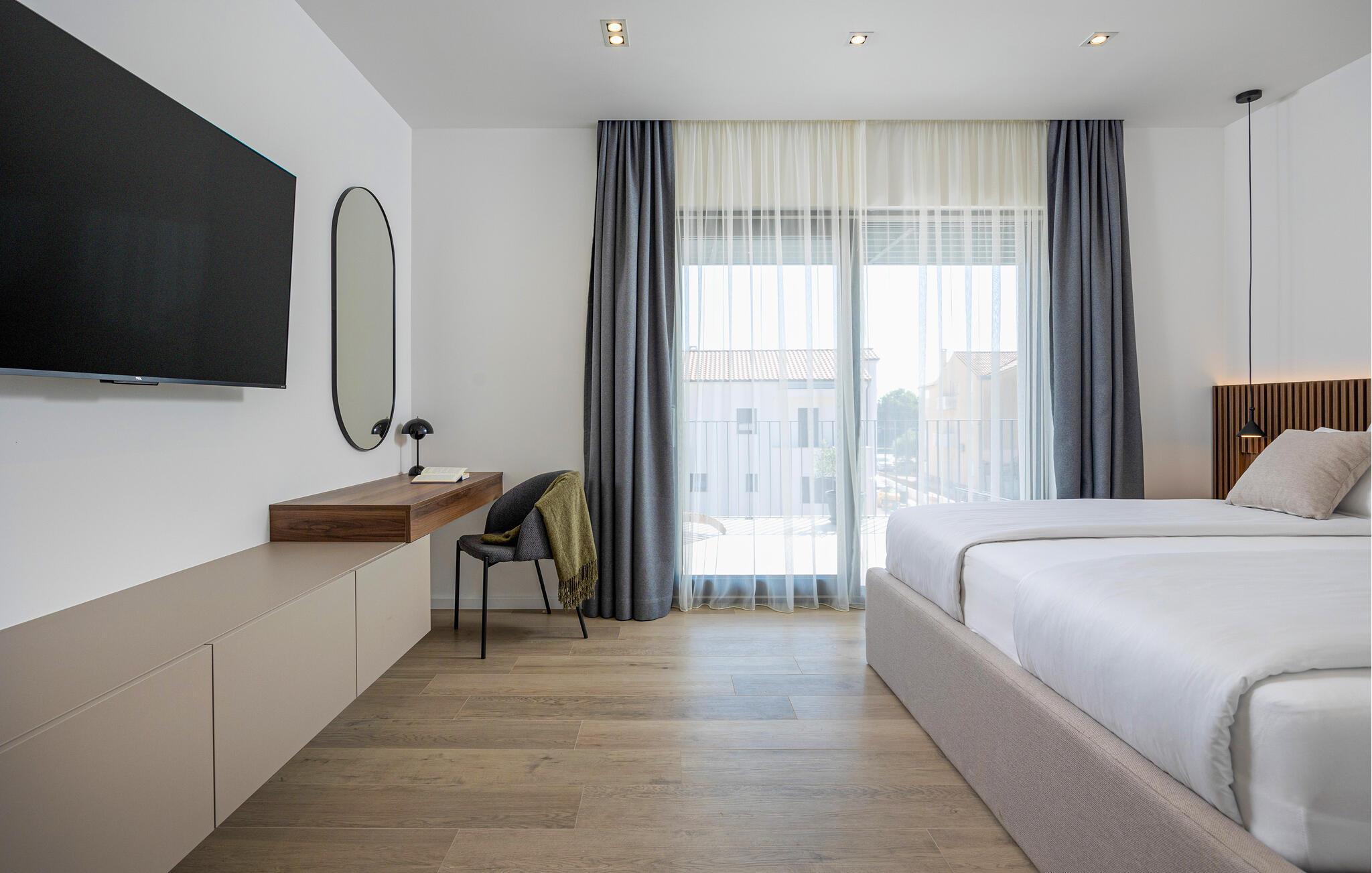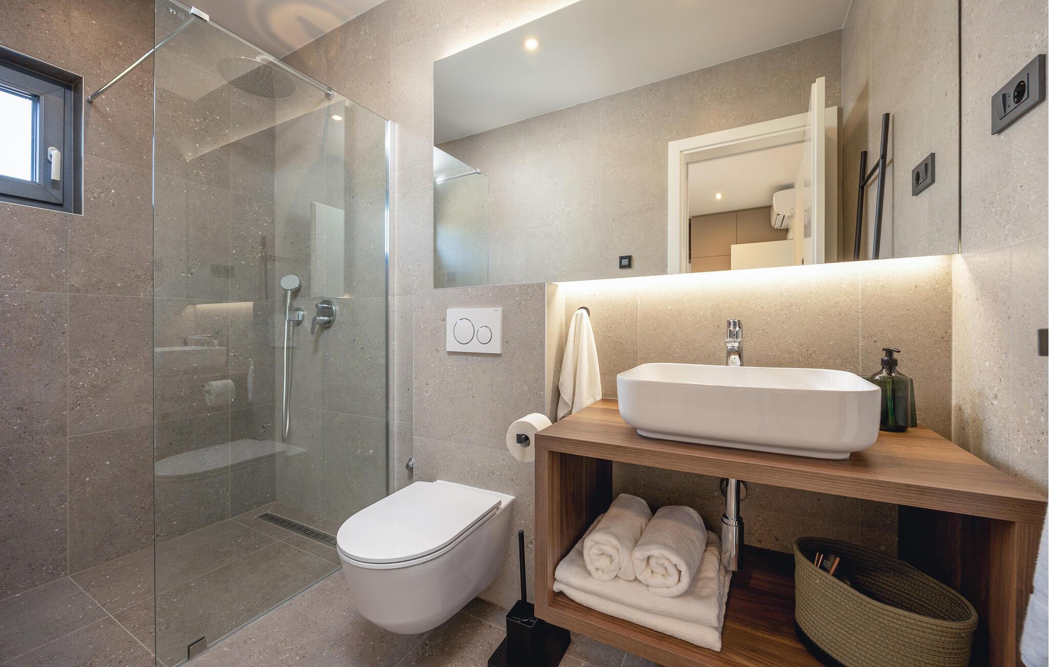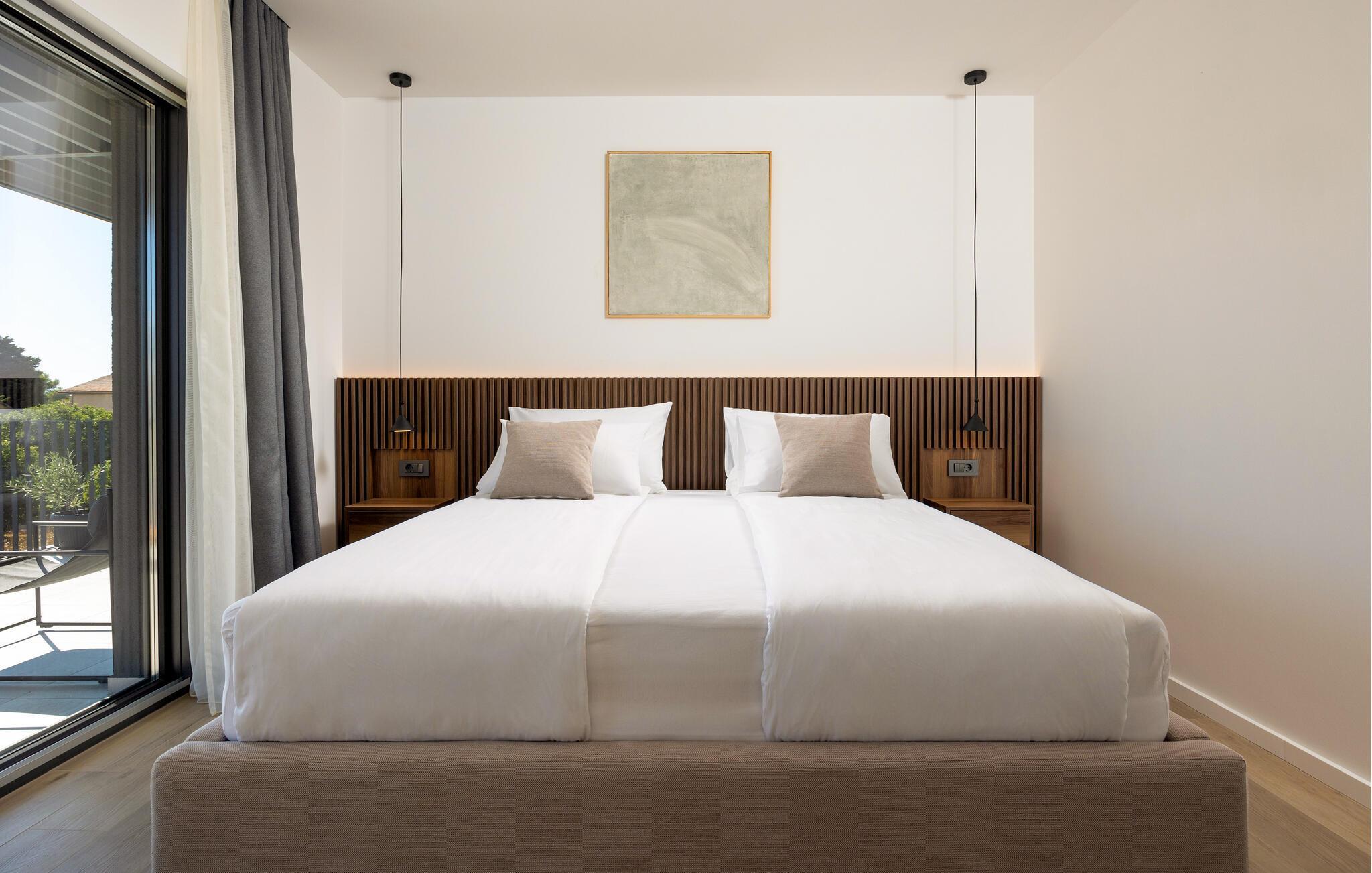 In diesem modernen Ferienhaus in Sukosan erwartet Sie ein Urlaub voller Komfort und Eleganz. Das großzügige, schlicht designte Interieur bietet Ihnen alles, was Sie für Ihren erholsamen Aufenthalt brauchen. Zaubern Sie in der Küche leckere Mahlzeiten oder versammeln sich zu einem unterhaltsamen Filmabend auf dem Sofa. Der lichtdurchflutete Wohnbereich führt auf eine überdachte Terrasse, die sich perfekt für gemeinsame Mahlzeiten im Freien eignet. Der zusätzliche Balkon an den Schlafzimmern bietet Ihnen einen herrlichen Meerblick und macht das Aufstehen besonders angenehm. Der Swimmingpool im Garten lädt Sie zu entspannten Tagen ein, während Sie das stilvolle Ambiente genießen – ideal für Ihren gelungenen Urlaub.