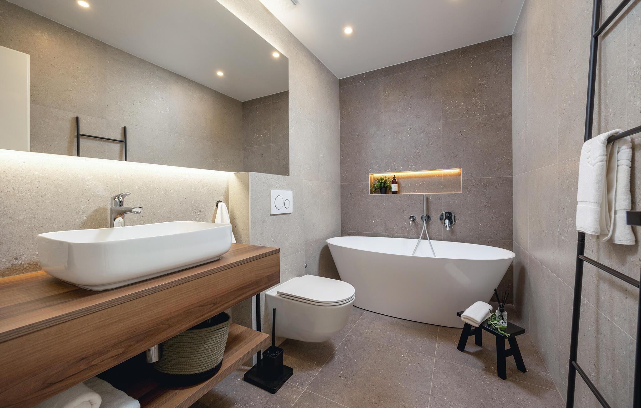 Badezimmer 5m2 (nr. 3) - WC. Warmes und kaltes Wasser. Badewanne