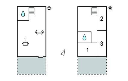 Badezimmer 5m2 (nr. 1) - WC. Warmes und kaltes Wasser. Dusche