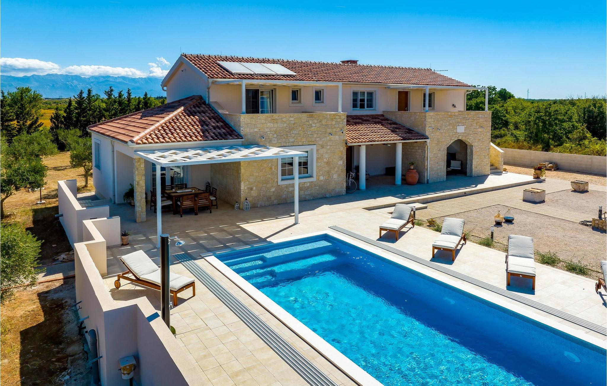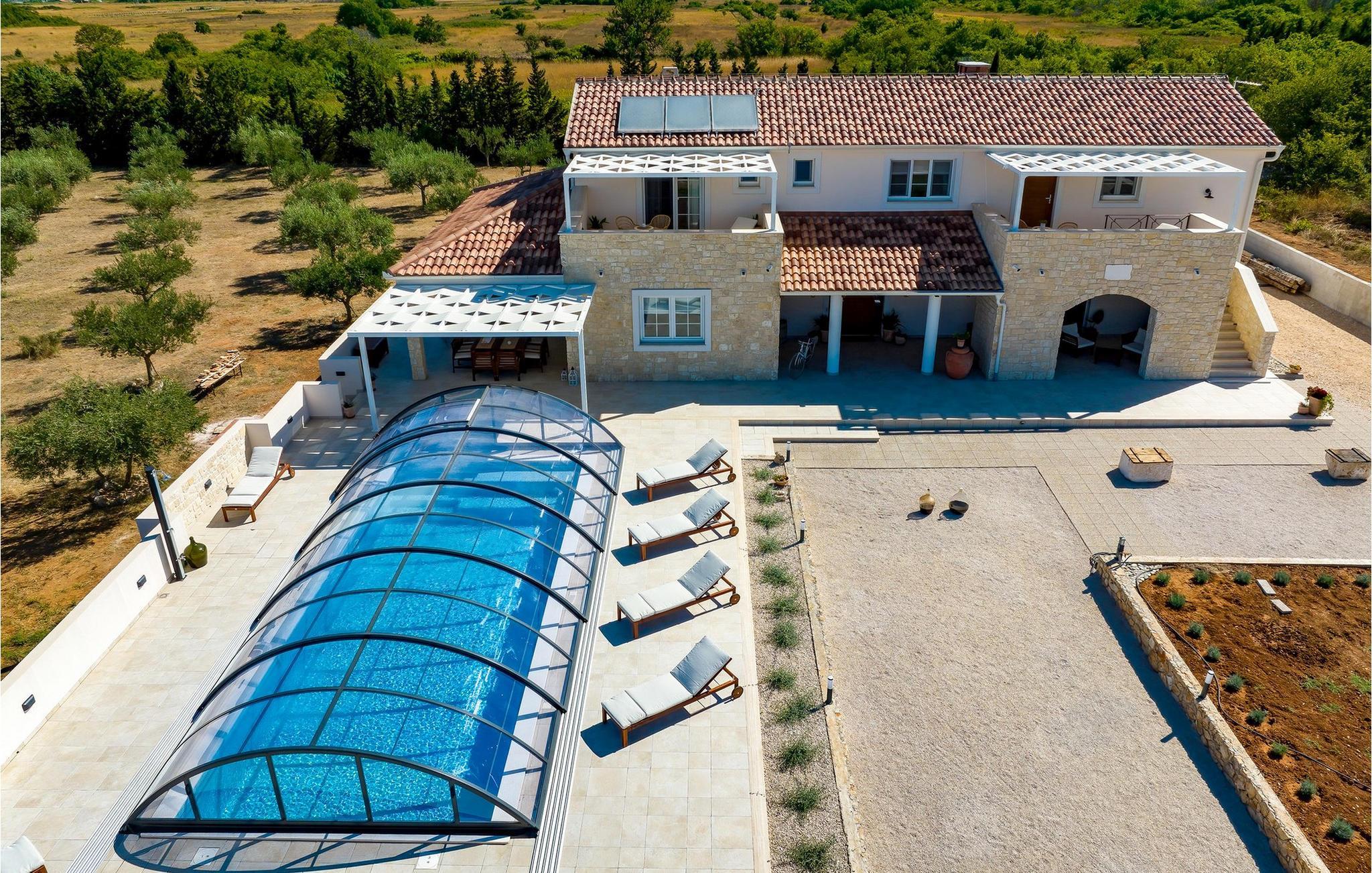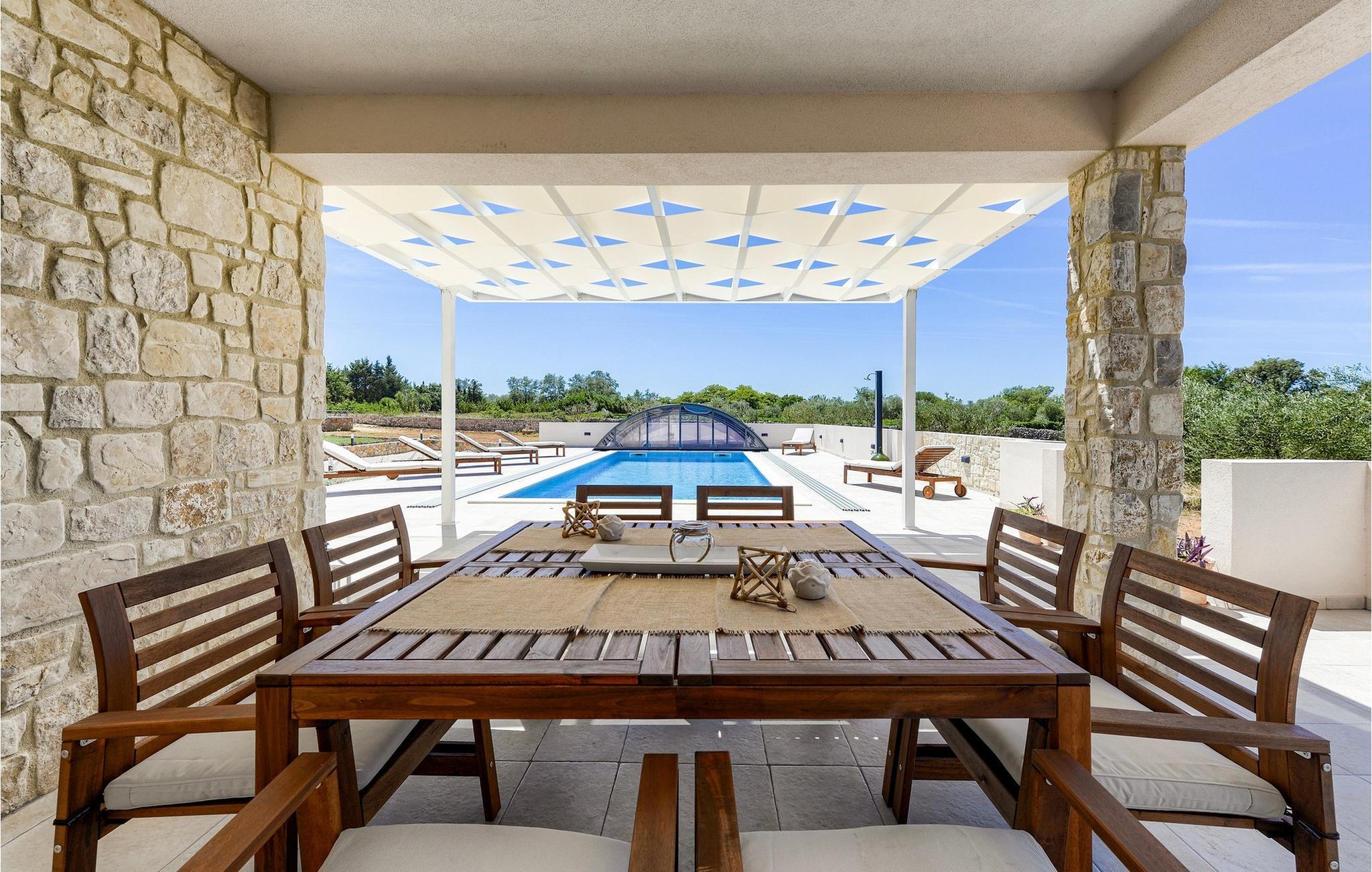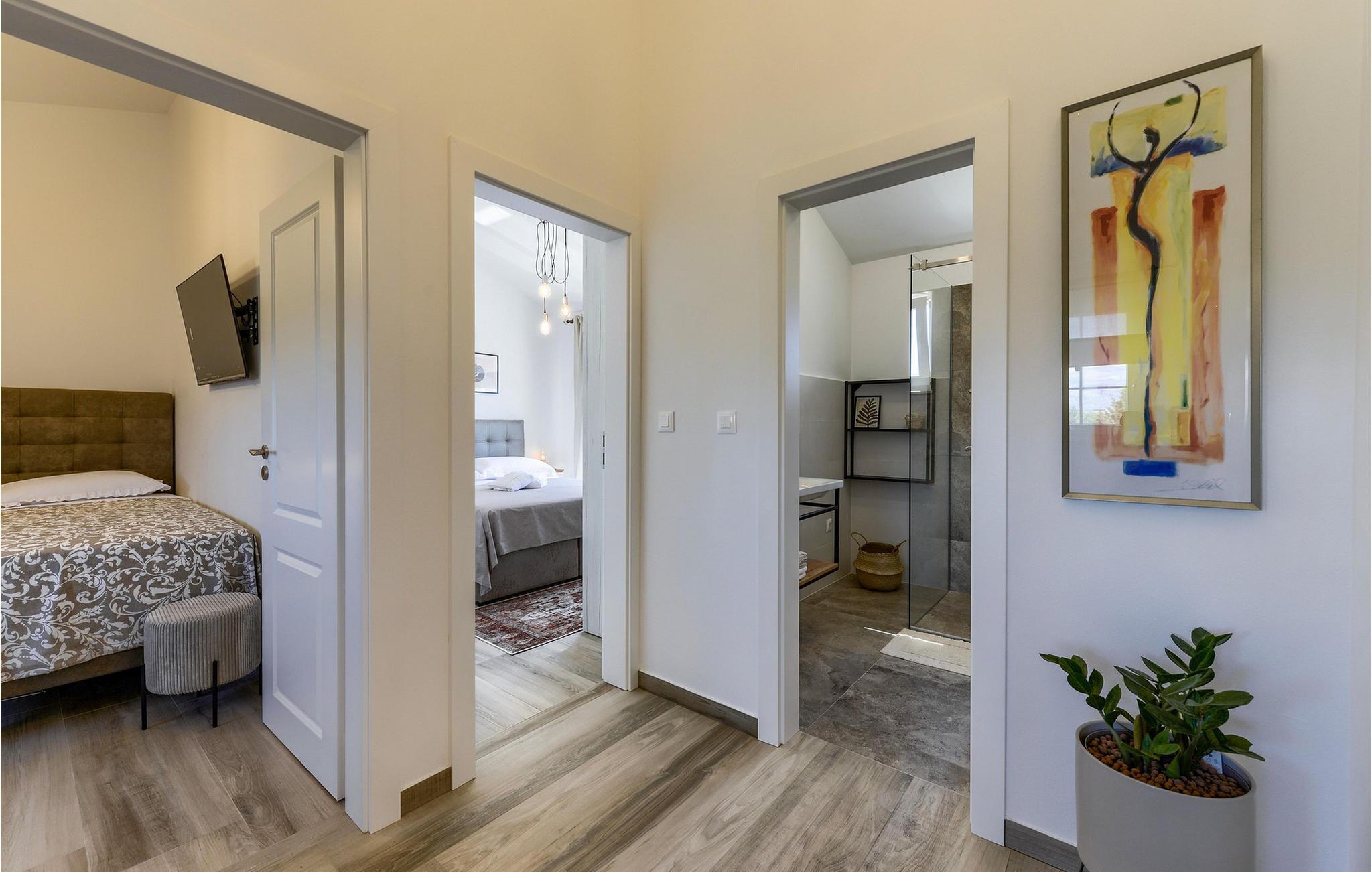 Villa Tesoro liegt in Zaton, nur 3 km von der Königsstadt Nin und 15 km von der Stadt Zadar entfernt. In Zaton finden Sie sicherlich wunderschöne Sand- und Kiesstrände wie „Pliša“ und „Punta“, die dank ihres reichhaltigen touristischen Inhalts und des wunderschönen Meeres ein unverzichtbares Reiseziel sind. Seit Jahren wird Zaton von einer großen Zahl in- und ausländischer Touristen besucht, die einen ruhigen und angenehmen Urlaub verbringen möchten. Wenn Sie einer von ihnen sind, gönnen Sie sich den Urlaub, von dem Sie schon lange träumen! Die Villa wurde 2022 im rustikalen Stil erbaut, sie bietet Platz für maximal 8 Personen, denen 300 m2 Wohnfläche zur Verfügung stehen, und die Gesamtfläche des Grundstücks beträgt 9000 m2. Die Villa ist voll klimatisiert und bietet Ihnen 4 Schlafzimmer, davon drei mit einem Doppelbett und das vierte Zimmer mit zwei Einzelbetten. Die Villa verfügt außerdem über 4 Badezimmer mit Duschen. Im Wohnzimmer können Sie es sich auf dem Sofa, dem Zweisitzer und dem Sessel bequem machen, außerdem gibt es einen Couchtisch und einen Fernseher. Neben dem Wohnzimmer gibt es eine moderne Küche, die mit allem ausgestattet ist, was Sie zum Zubereiten der Lieblingsgerichte für die ganze Familie benötigen, sowie ein Esszimmer mit einem Esstisch für 8 Personen. Auf der Außenterrasse können Sie sich bequem im überdachten Pool von 40 m2 mit einer Tiefe von 1,5 Metern erfrischen, neben dem sich 8 Sonnenliegen befinden. Es gibt auch einen Gasgrill im Freien. Zu den weiteren Ausstattungsmerkmalen der Villa Tesoro gehören eine Waschmaschine, ein Bügeleisen, eine separate Toilette, ein Futterspender und ein Babybett. Die Villa ist eingezäunt und bietet ausreichend Parkplätze. Vergessen Sie nicht, die wunderschöne Stadt Nin, die in einer wunderschönen Lagune an der Adria liegt, und das Touristenzentrum Zadar zu besuchen. Der Zadar-Archipel ist voller versteckter Inseln und wir empfehlen Ihnen, die Kornaten oder Dugi otok zu besuchen. Wenn Sie auf der Suche nach einem Ausflug an Land sind und die atemberaubende Natur kennenlernen möchten, wählen Sie den Nationalpark Plitvicer Seen oder den Nationalpark Krka. Abenteurer können Rafting in der Schlucht des Flusses Zrmanja oder Bungee-Jumping von der Maslenica-Brücke ausprobieren. Der Ausblick auf das Meer, die Inseln und die grünen Berge, den Sie mit nach Hause nehmen, ist einfach unvergesslich! Willkommen in der Villa Tesoro! *Eine zusätzliche Funktion des Pools ist das Schwimmen gegen den Strom!