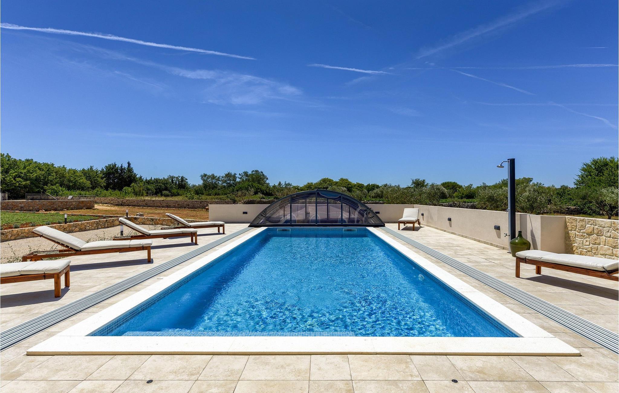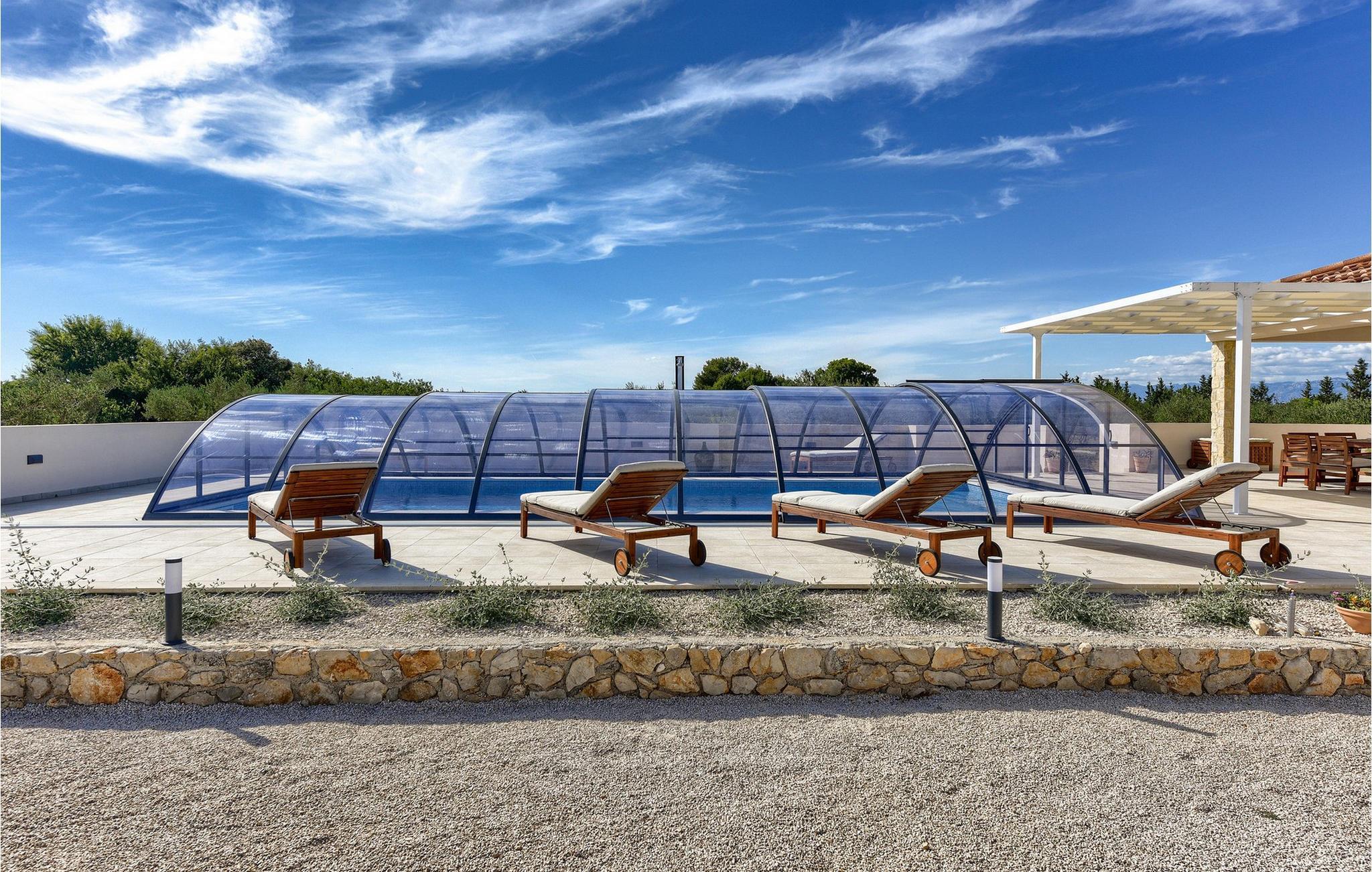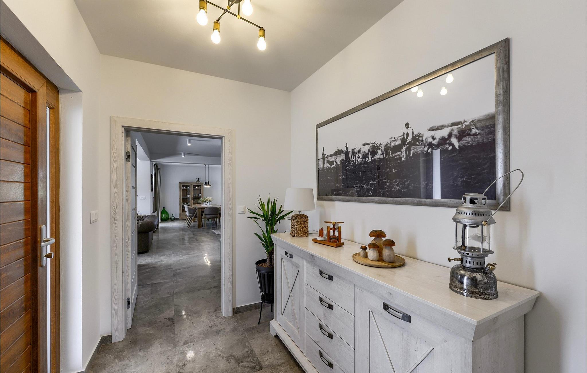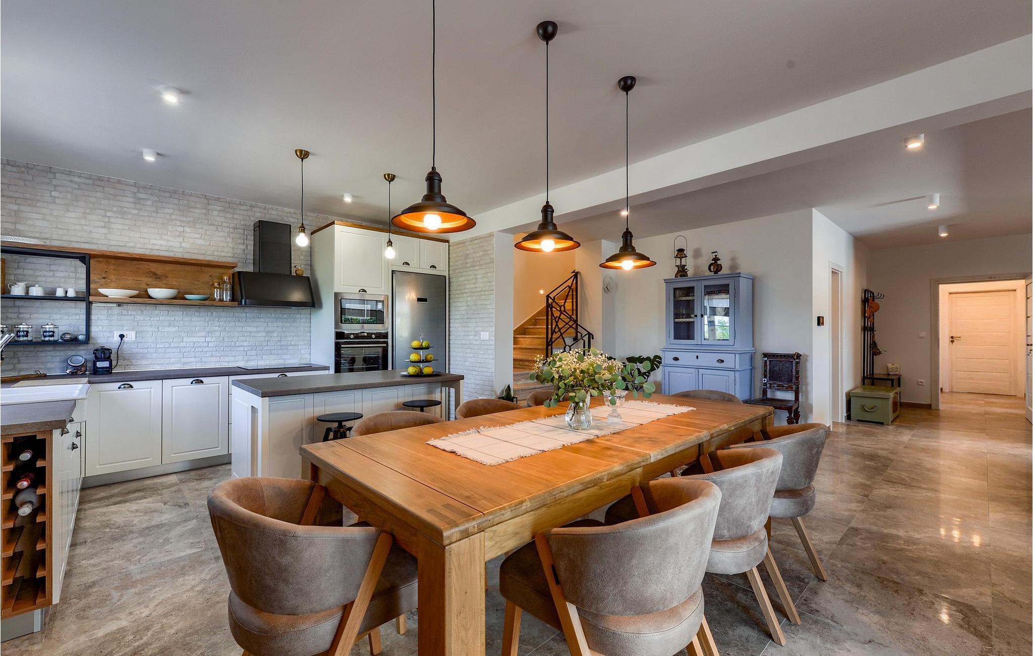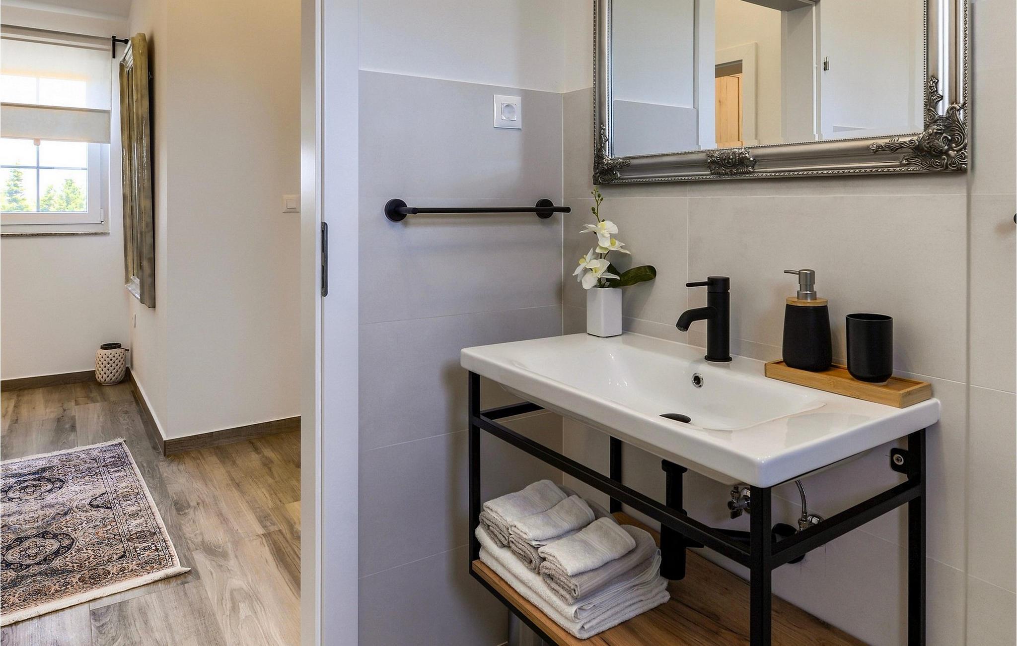 Villa Tesoro liegt in Zaton, nur 3 km von der Königsstadt Nin und 15 km von der Stadt Zadar entfernt. In Zaton finden Sie sicherlich wunderschöne Sand- und Kiesstrände wie „Pliša“ und „Punta“, die dank ihres reichhaltigen touristischen Inhalts und des wunderschönen Meeres ein unverzichtbares Reiseziel sind. Seit Jahren wird Zaton von einer großen Zahl in- und ausländischer Touristen besucht, die einen ruhigen und angenehmen Urlaub verbringen möchten. Wenn Sie einer von ihnen sind, gönnen Sie sich den Urlaub, von dem Sie schon lange träumen! Die Villa wurde 2022 im rustikalen Stil erbaut, sie bietet Platz für maximal 8 Personen, denen 300 m2 Wohnfläche zur Verfügung stehen, und die Gesamtfläche des Grundstücks beträgt 9000 m2. Die Villa ist voll klimatisiert und bietet Ihnen 4 Schlafzimmer, davon drei mit einem Doppelbett und das vierte Zimmer mit zwei Einzelbetten. Die Villa verfügt außerdem über 4 Badezimmer mit Duschen. Im Wohnzimmer können Sie es sich auf dem Sofa, dem Zweisitzer und dem Sessel bequem machen, außerdem gibt es einen Couchtisch und einen Fernseher. Neben dem Wohnzimmer gibt es eine moderne Küche, die mit allem ausgestattet ist, was Sie zum Zubereiten der Lieblingsgerichte für die ganze Familie benötigen, sowie ein Esszimmer mit einem Esstisch für 8 Personen. Auf der Außenterrasse können Sie sich bequem im überdachten Pool von 40 m2 mit einer Tiefe von 1,5 Metern erfrischen, neben dem sich 8 Sonnenliegen befinden. Es gibt auch einen Gasgrill im Freien. Zu den weiteren Ausstattungsmerkmalen der Villa Tesoro gehören eine Waschmaschine, ein Bügeleisen, eine separate Toilette, ein Futterspender und ein Babybett. Die Villa ist eingezäunt und bietet ausreichend Parkplätze. Vergessen Sie nicht, die wunderschöne Stadt Nin, die in einer wunderschönen Lagune an der Adria liegt, und das Touristenzentrum Zadar zu besuchen. Der Zadar-Archipel ist voller versteckter Inseln und wir empfehlen Ihnen, die Kornaten oder Dugi otok zu besuchen. Wenn Sie auf der Suche nach einem Ausflug an Land sind und die atemberaubende Natur kennenlernen möchten, wählen Sie den Nationalpark Plitvicer Seen oder den Nationalpark Krka. Abenteurer können Rafting in der Schlucht des Flusses Zrmanja oder Bungee-Jumping von der Maslenica-Brücke ausprobieren. Der Ausblick auf das Meer, die Inseln und die grünen Berge, den Sie mit nach Hause nehmen, ist einfach unvergesslich! Willkommen in der Villa Tesoro! *Eine zusätzliche Funktion des Pools ist das Schwimmen gegen den Strom!