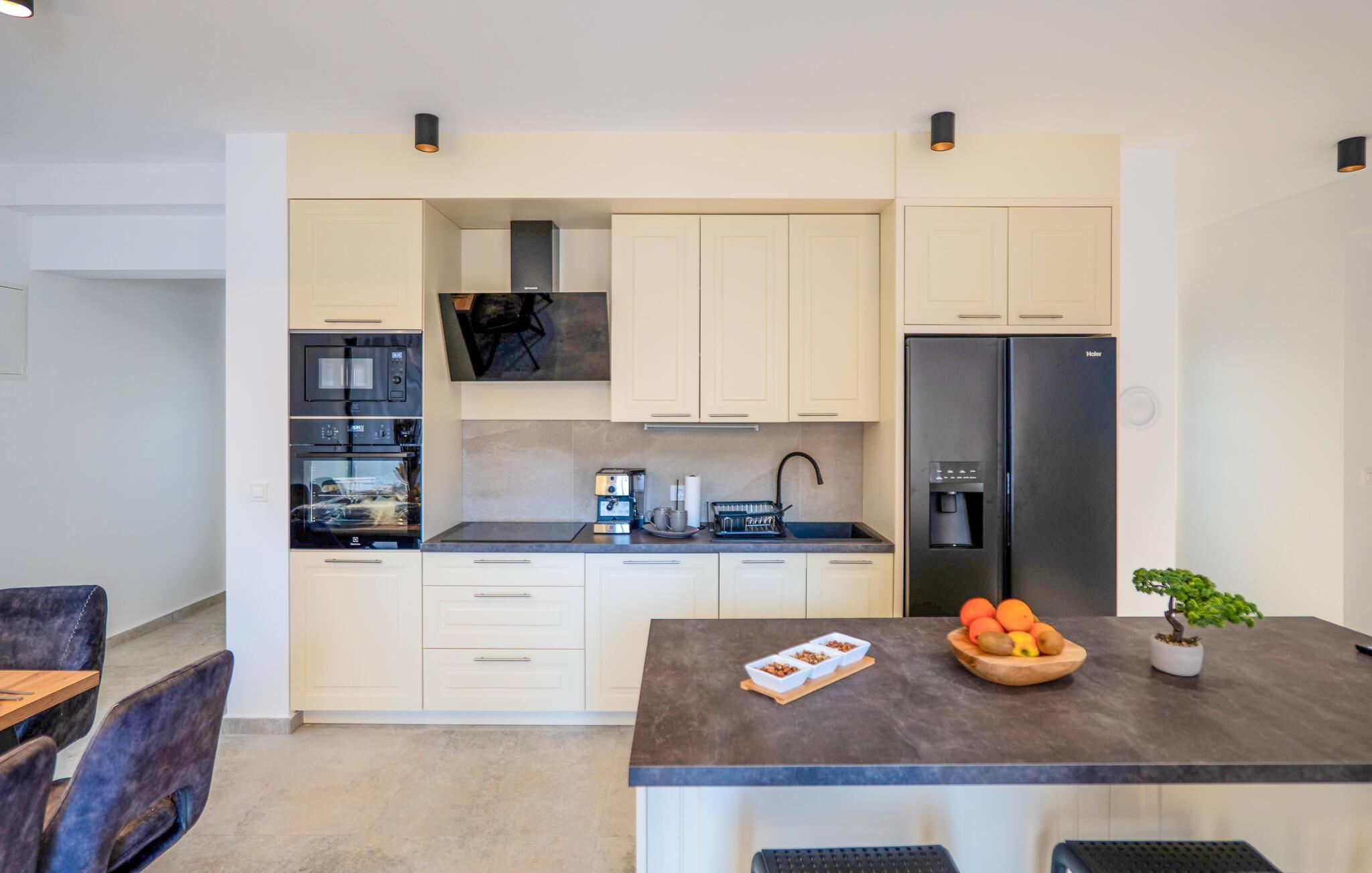 Ein großes Platzangebot, Komfort und ansprechendes Design sind Merkmale dieses großartigen Ferienhauses. Gemeinsam mit Ihrer Großfamilie oder befreundeten Paaren können Sie es sich hier gemütlich und die zwei Ebenen, plus der großen Dachterrasse, zu Ihrem zweiten Zuhause machen. Entdecken Sie das Haus und finden Ihren Lieblingsplatz, egal ob in der geräumigen Essküche, die viel Platz zum gemeinsamen Kochen bietet oder den schönen Schlafzimmern.