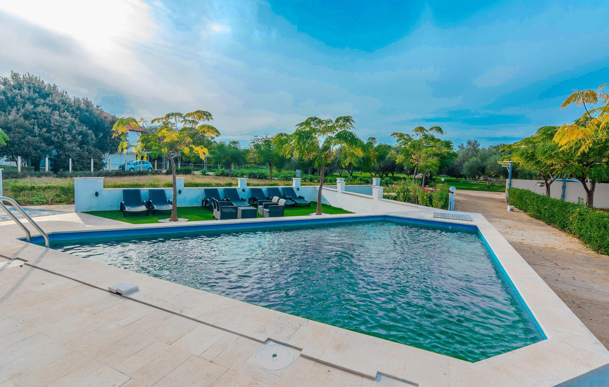 Entspannen Sie sich in dieser familienfreundlichen Ferienwohnung mit Gemeinschaftspool und Spielplatz.