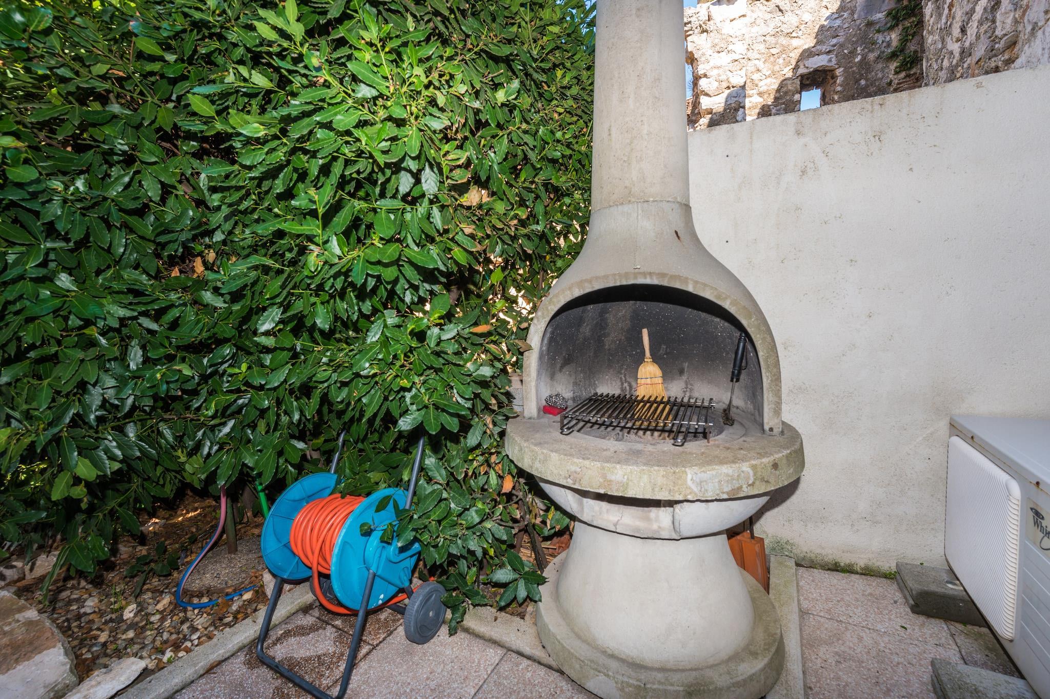Ground floor: (Living room(single sofa bed, TV(flatscreen, satellite)), Kitchen(dining table, electric kettle, cooker, coffee machine, oven, fridge-freezer, dishes and cutlery, Wine glasses), bathroom(shower, washbasin, toilet), terrace(private)) On the 1st floor: (bedroom(double bed)) air conditioning, garden(private), garden furniture, BBQ