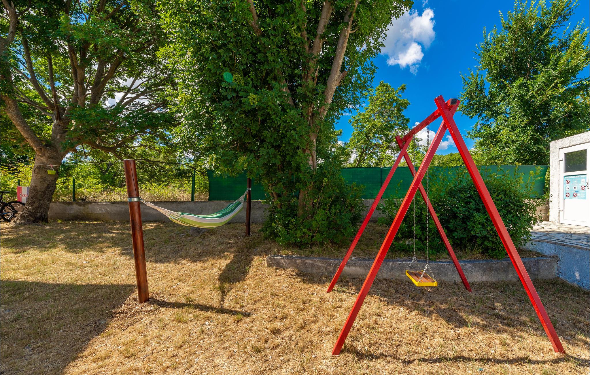 Dieses Ferienhaus beherbergt eine 1-Zimmer- und eine 2-Zimmerwohnung mit Außenverbindungen. Auf dem Grundstück haben die Kinder viel Platz zum Spielen und es steht ein schöner Pool für Erfrischungen bereit. Am nahe gelegenen Kiesstrand gibt es auch ein Heilschlammvorkommen. Besuchen Sie Zadar, es gibt dort eine schöne Altstadt und an der Promenade zwei Beispiele moderner Architektur, die wahre Besuchermagnete sind. Eines gibt die Wellen des Meeres in Tönen wider, das andere ist ein Lichtspiel, das besonders beim Sonnenuntergang genossen werden soll. Erleben Sie auch den nächstgelegenen Nationalpark, Paklenica, oder nehmen Sie Teil an einer Safari-Tour im Gebirge Velebit.