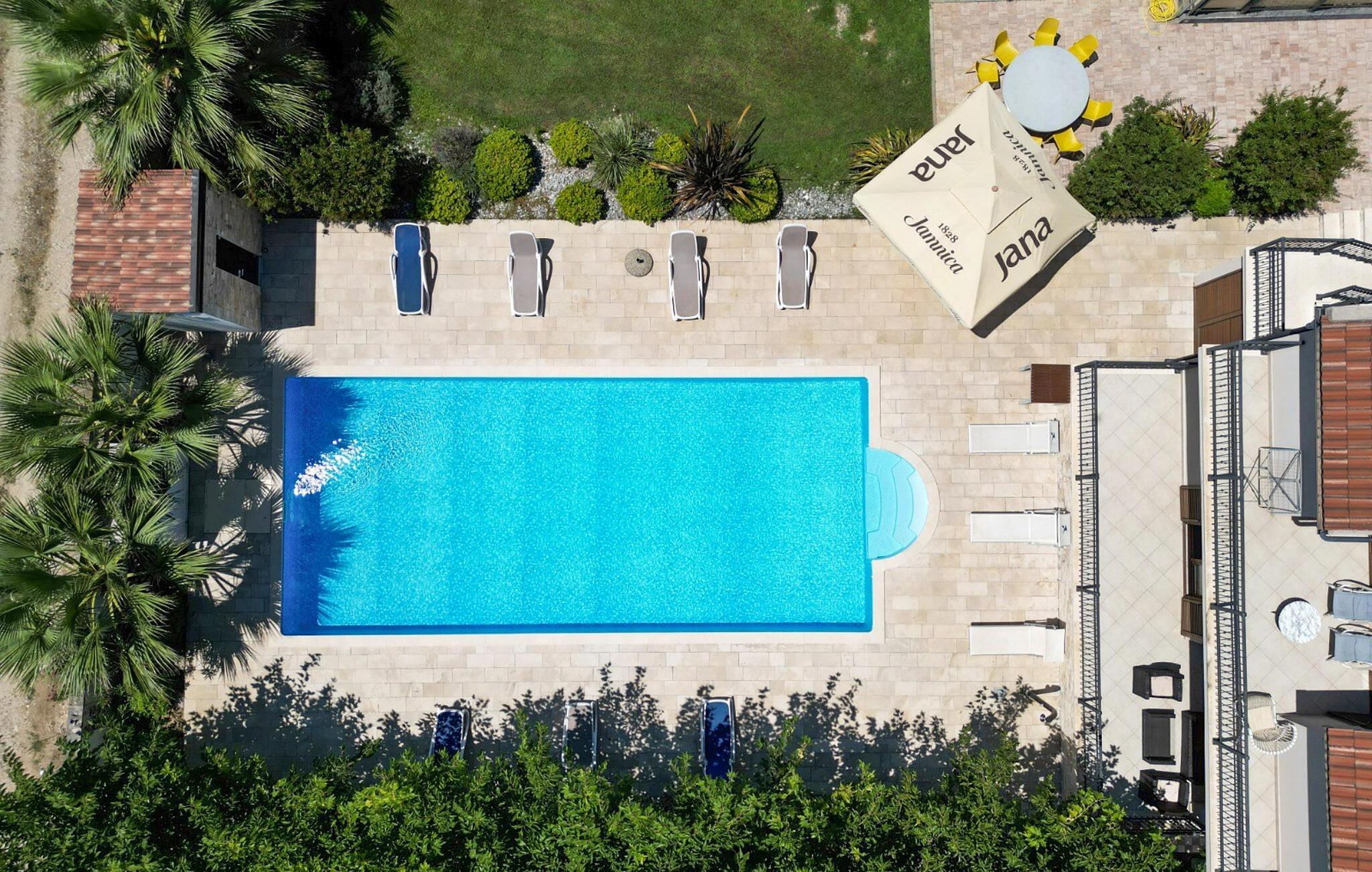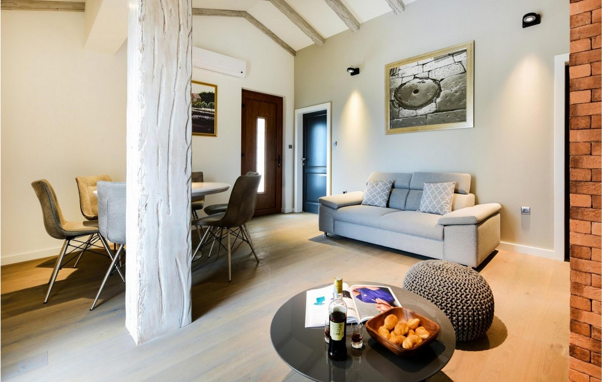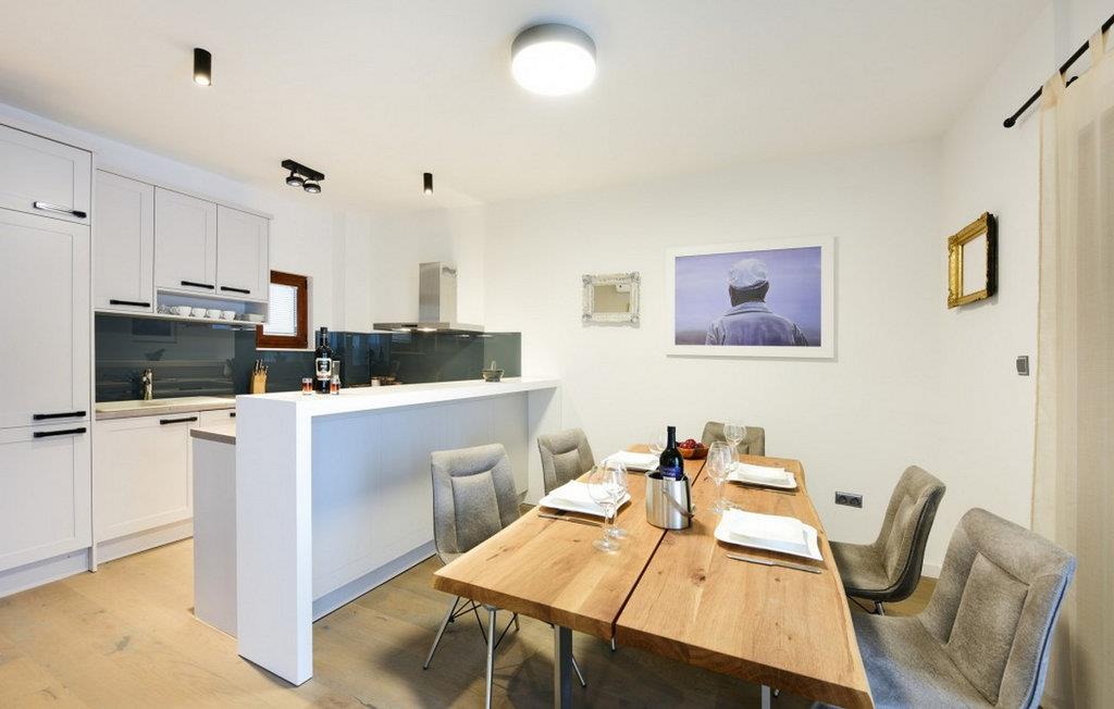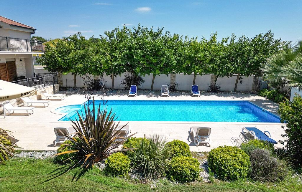 Die luxuriöse Villa Tona befindet sich in ruhiger Lage unweit von Zadar und verwöhnt Sie mit zahlreichen Extras, die einen Urlaub mit Familie oder Freunden zu einem unvergesslichen Erlebnis machen. Lassen Sie sich vom eleganten und hochwertig ausgestatteten Interieur begeistern und freuen Sie sich auf gesellige Kochabende sowie fröhliche Mahlzeiten in einem gepflegten und stilvollen Ambiente. Gönnen Sie sich wohlige Momente in der Sauna, während sich andere an der PlayStation, am Billardtisch, an der Dartscheibe oder am Kickertisch vergnügen. Insgesamt verfügt die Villa Tona über zwei voll ausgestattete Küchen, zwei Esszimmer und zwei Wohnzimmer.