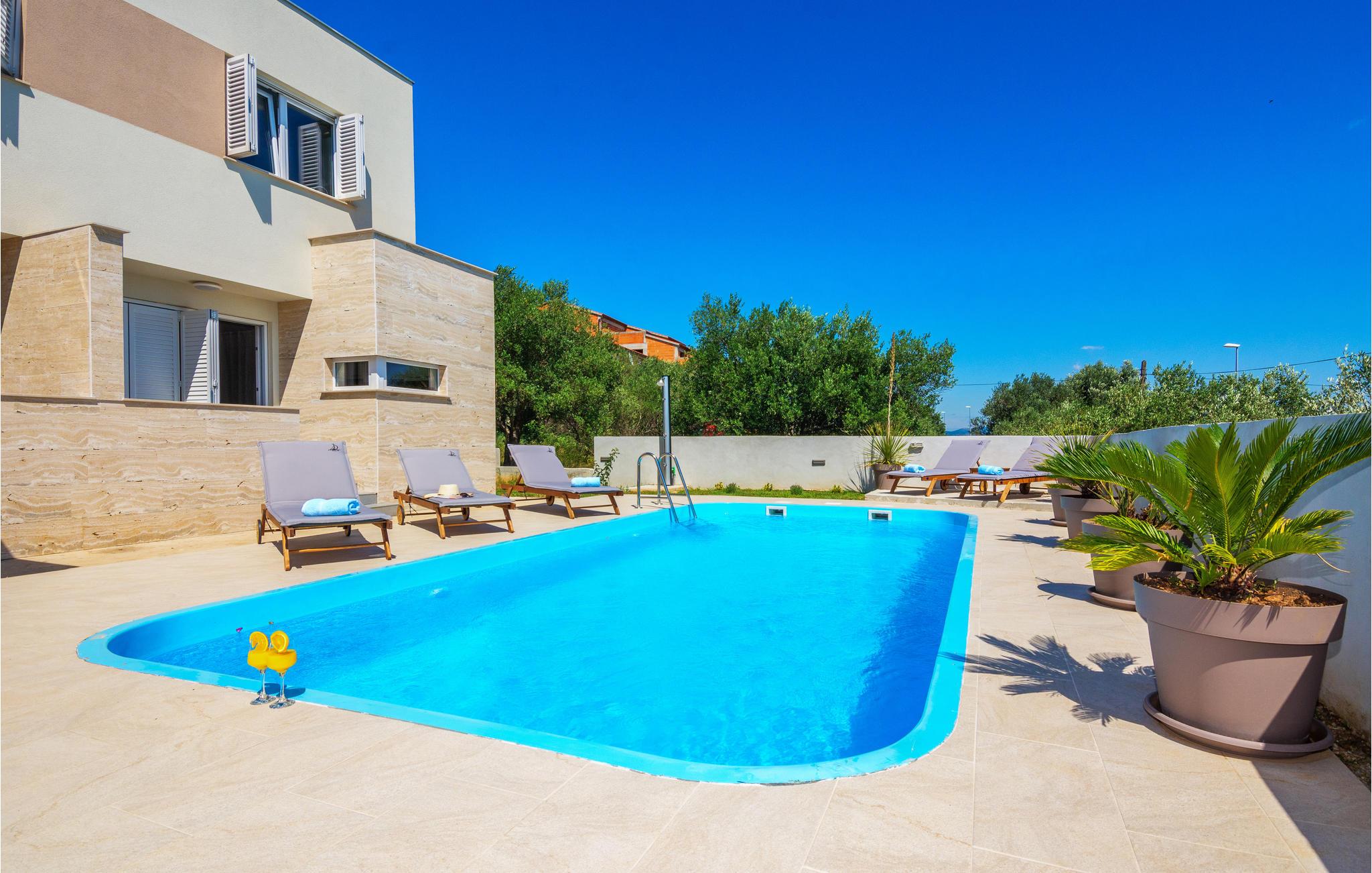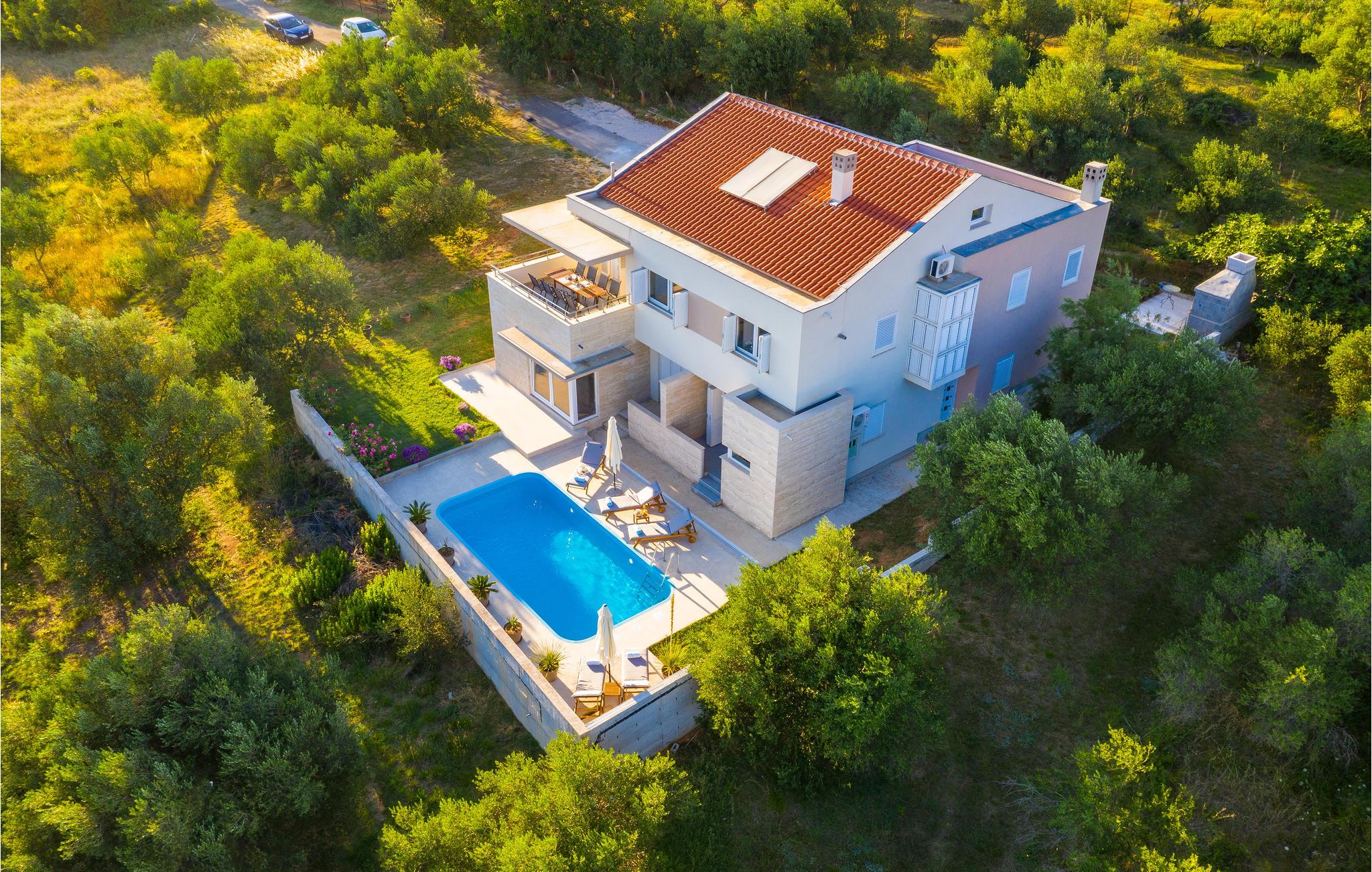 Im Küstenort Posedarje, nahe der Stadt Zadar befindet sich dieses schöne Ferienhaus mit Pool. Der Wohnbereich besteht im Erdgeschoss aus einem Schlafzimmer, Bad und Wohnzimmer mit Küche, während im Obergeschoss drei Schlafzimmer, zwei Bäder und ein Wohnzimmer mit Küche und Essbereich sind. Die Nähe zum Strand und kristallklarem Meer, die etwa 300 m weit entfernt liegen, ermöglicht es Ihnen den ganzen Tag mit Familie und Freunden im Meer zu schwimmen und sich zu sonnen. Von der unmittelbar in der Nähe gelegenen Verkehrsstraße gelangen Sie zu den Nationalparks, die aufgrund ihrer natürlichen Schönheit unbedingt einen Besuch wert sind. Besuchen Sie auch die Stadt Zadar, die über kulturelle und historische Denkmäler verfügt, sowie zahlreiche Sommerveranstaltungen und ausgezeichnete Restaurants.