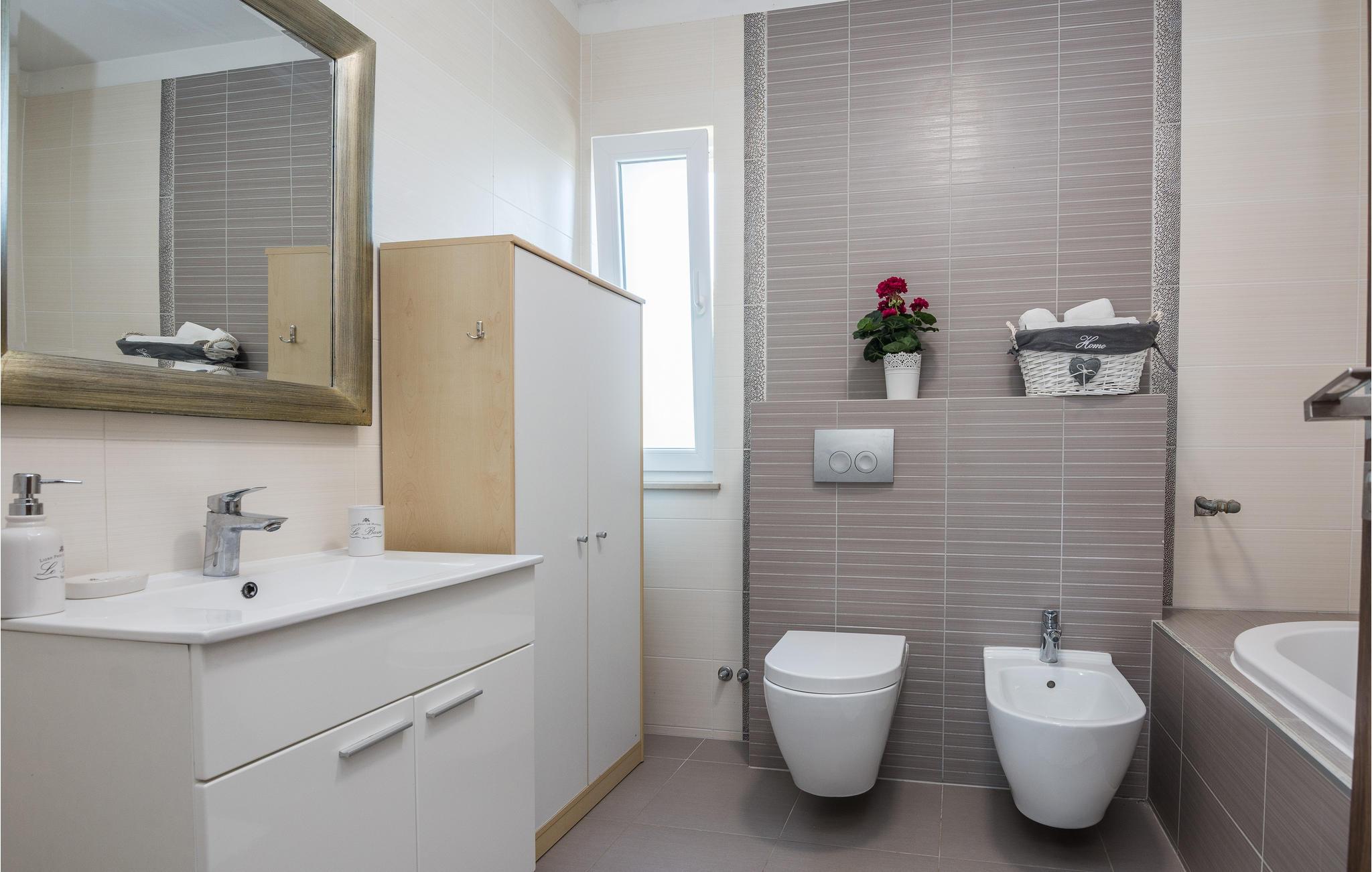 - WC mit warmem und kaltem Wasser, Badewanne