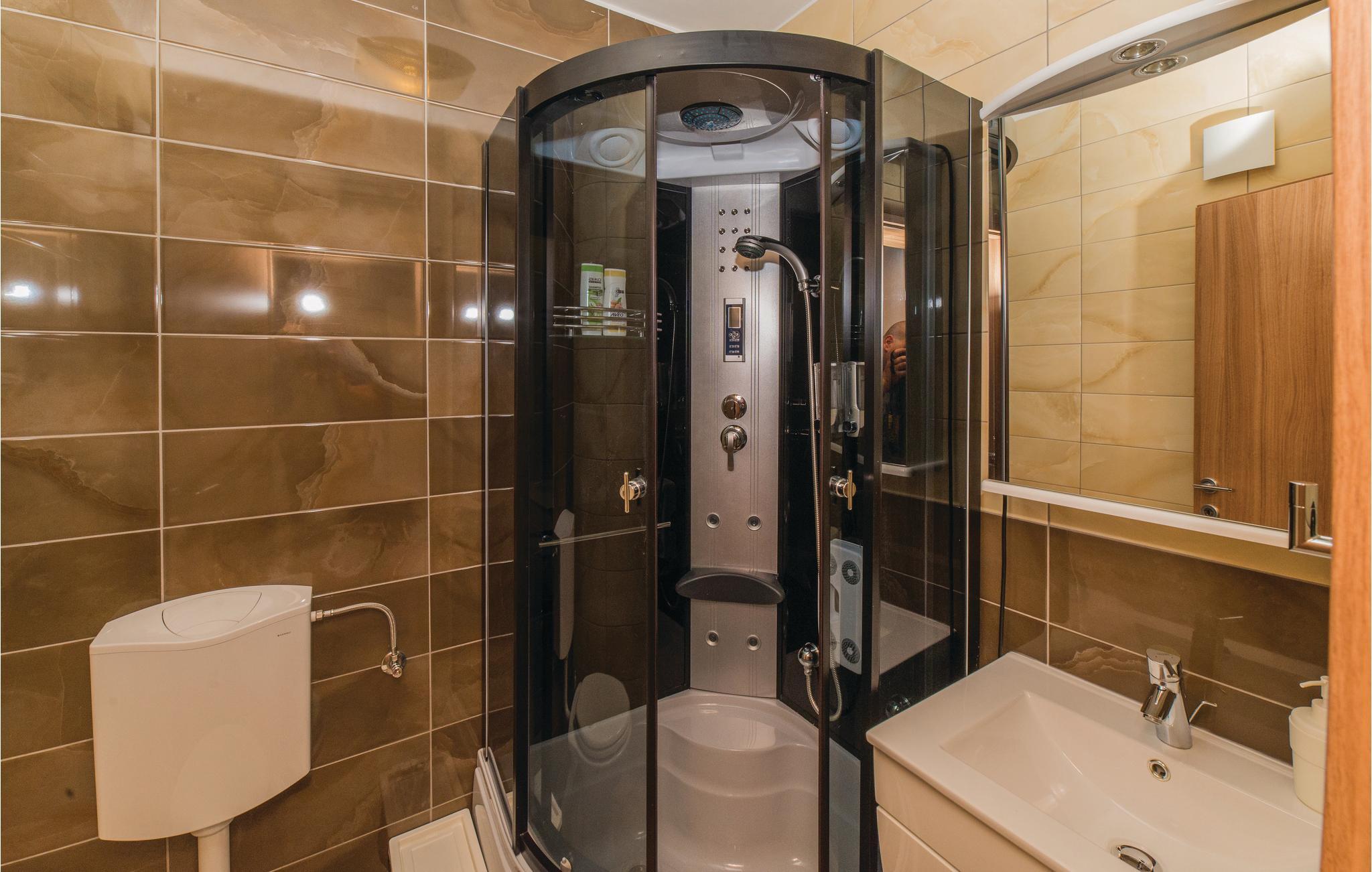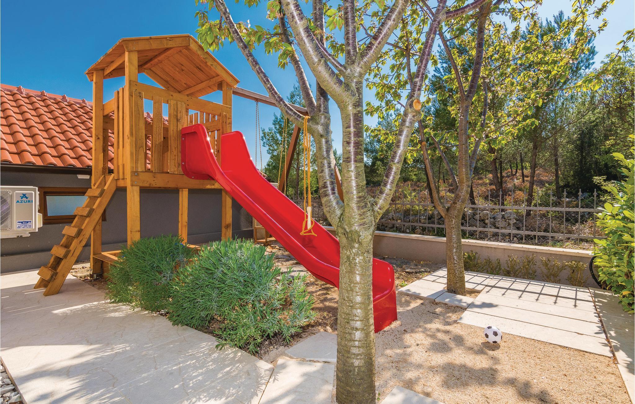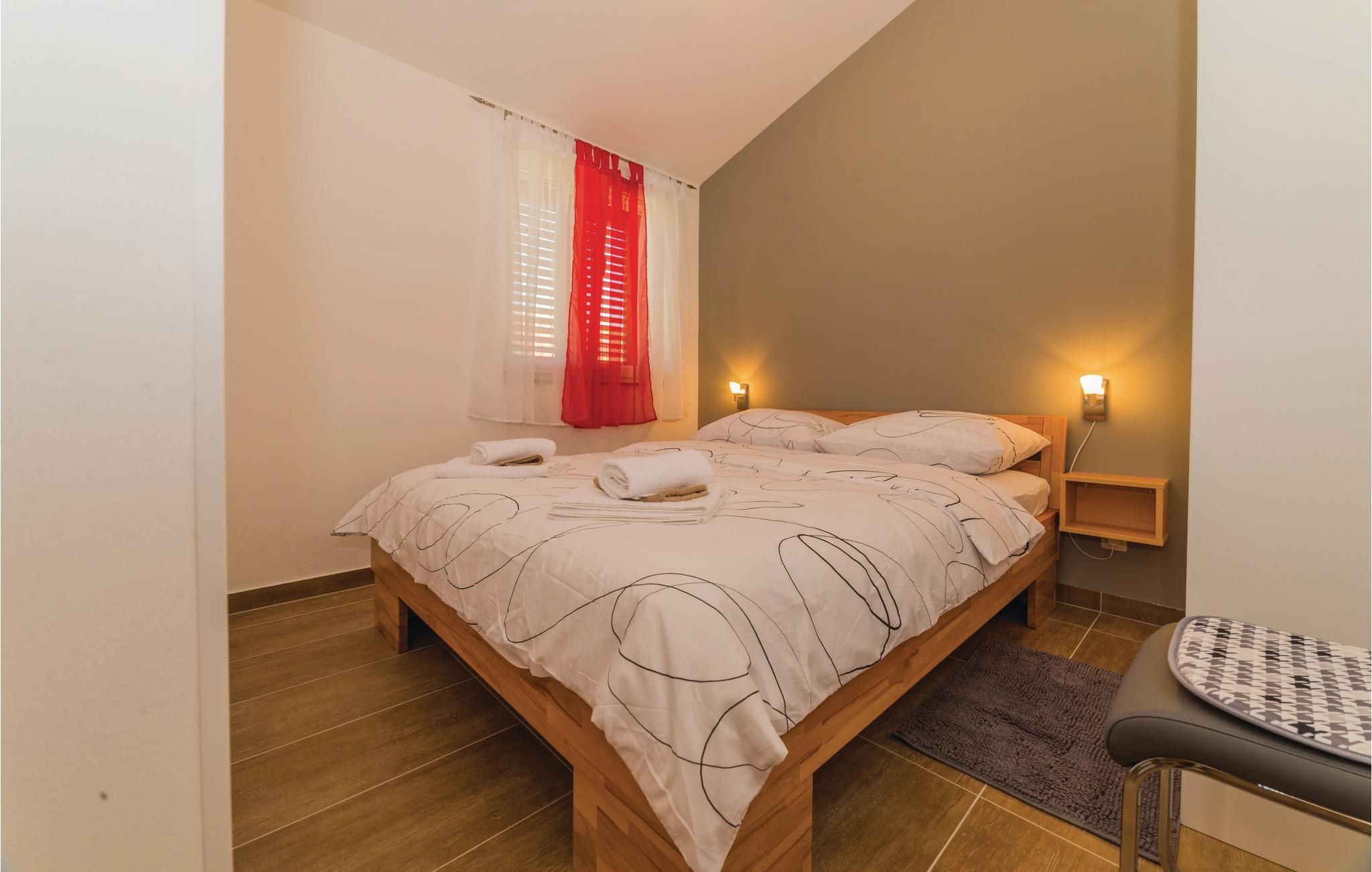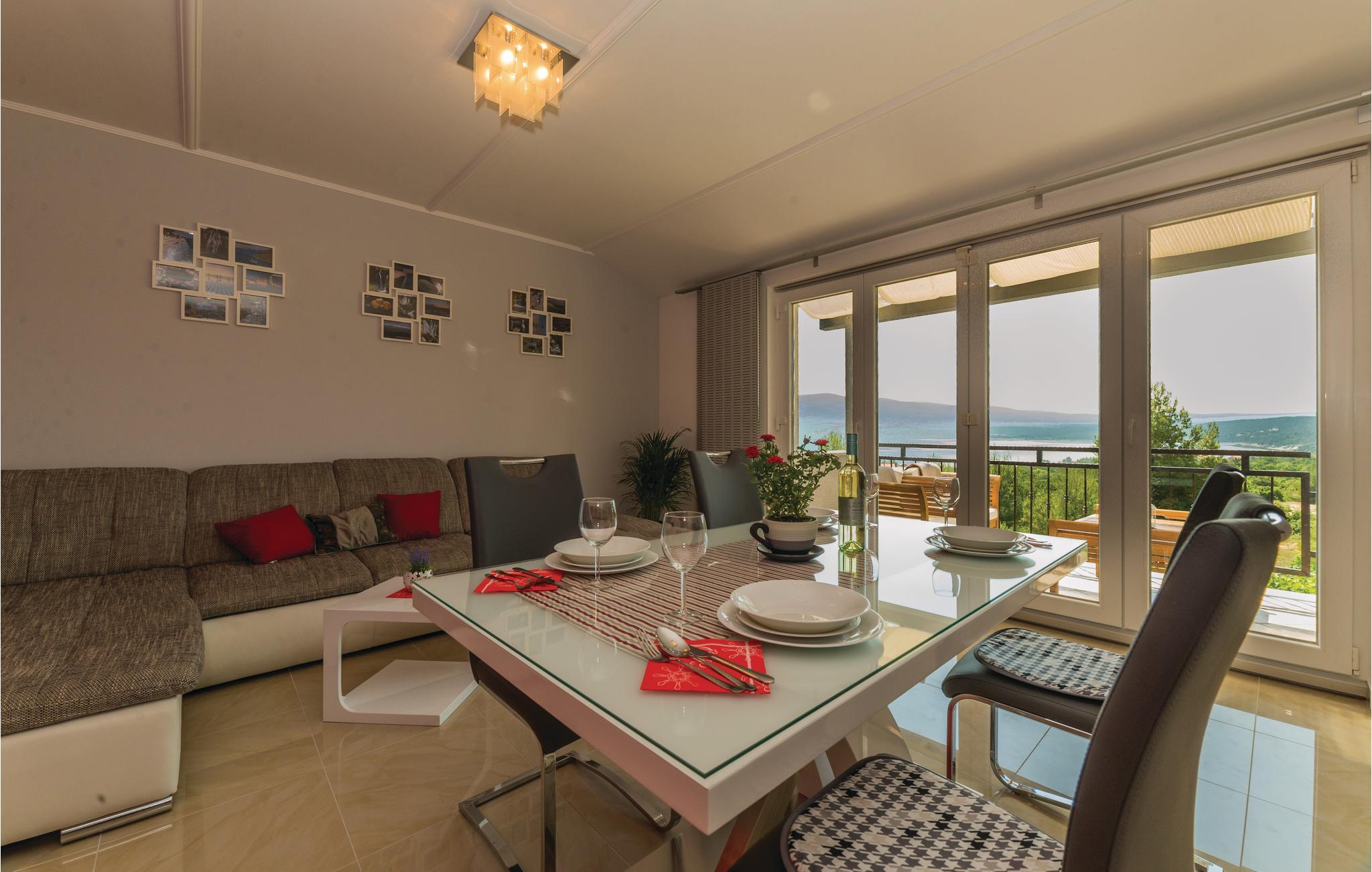 Modernes Ferienhaus mit Swimmingpool und schöner Aussicht auf die grüne Landschaft und das Meer. Ein ideales Reiseziel für Familien und Freunde, dess das Domizil besteht aus drei separaten Wohnungen. Im Erdgeschoss ist eine Wohnung mit vier Schlafzimmern, während im Obergeschoss zwei Wohnungen mit jeweils zwei Schlafzimmern sind. Die Etagen werden nur über Außentreppen erreicht, die Dachschrägen können auf 180 cm reichen. Von den Terrassen im Obergeschoss bietet sich ein Panoramablick auf das Meer, während im Erdgeschossbereich der Pool mit Sonnenliegen, Grill und eine überdachte Terrasse zum Relaxen vorhanden sind. Im Keller, welcher über eine Außentreppe zugänglich ist, befindet sich ein Billiardtisch, außerdem gibt es einen Whirlpool. Machen Sie einen sportlichen Ausflug, Unternehmen Sie z. B. Rafting auf dem Fluss Zrmanja oder eine Safari ins Velebit-Gebirge.