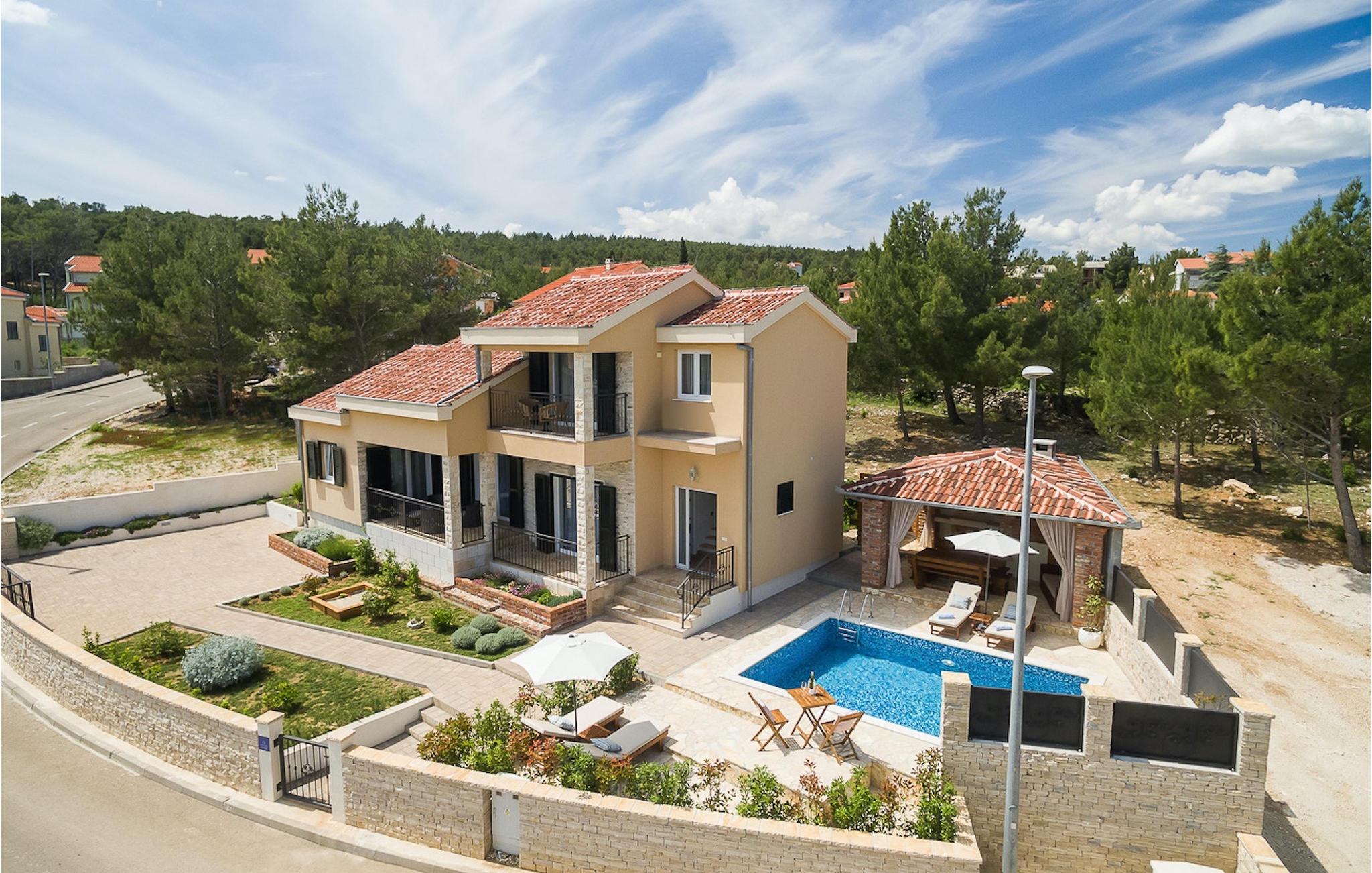 Die Familienvilla Noa befindet sich in dem kleinen Küstendorf Pridraga, in der Nähe der schönen Stadt Zadar. Die Villa Noa ist der perfekte Ort für einen Familienurlaub. Sie bietet Platz für bis zu 8 Personen in drei Schlafzimmern. Diese schöne Villa ist in zwei Stockwerke unterteilt. Das offene Erdgeschoss besteht aus einer voll ausgestatteten Küche mit Essbereich, einem gemütlichen Wohnzimmer mit Kamin, zwei bequemen Schlafzimmern, ein Badezimmer und eine Gästetoilette . Die Treppe führt Sie in den ersten Stock, wo Sie das Hauptschlafzimmer mit eigenem Bad und direktem Zugang zum Balkon finden. Der Balkon ist der perfekte private Ort, an dem Sie Ihren Morgenkaffee und den beruhigenden Blick auf das Meer genießen können. Neben dem Haus befindet sich eine schöne, voll ausgestattete Küche mit Holzkohlengrill und einem überdachten Essbereich im Freien, wo Sie köstliche Mahlzeiten zubereiten und mit Ihrer Familie und Freunden genießen können. Wenn Sie Ihren Urlaub in der Sonne verbringen möchten, finden Sie vor der Villa einen großen und einladenden Pool und 4 bequeme Sonnenliegen. Wenn Sie lieber warme Sommertage am Meer verbringen möchten, ist der Strand nur 10 Meter von der Villa entfernt.