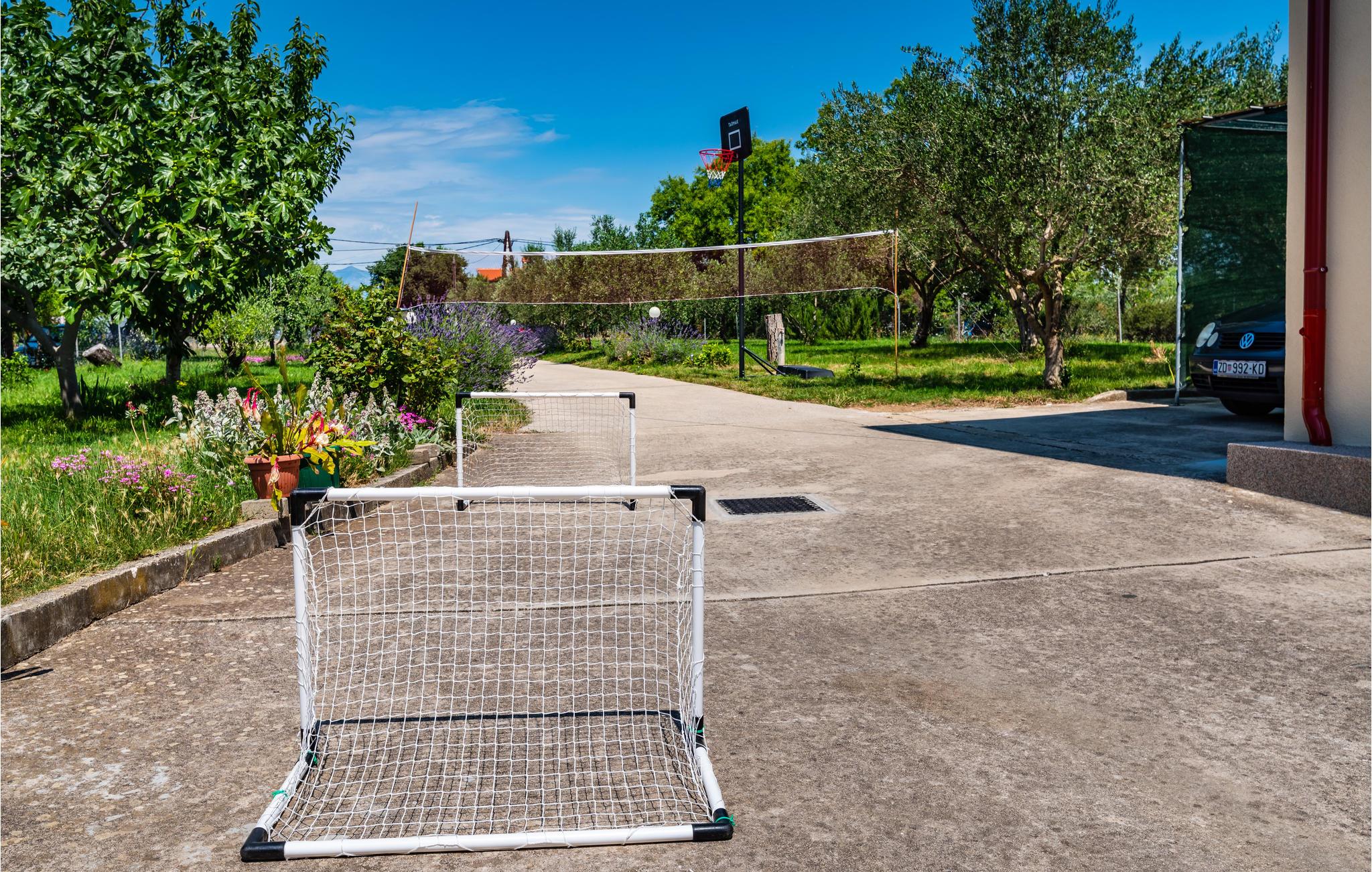 Dieses komfortable Ferienhaus mit Pool besteht aus zwei separaten Wohnungen, die über Außentreppen zugänglich sind. Besonders hervorzuheben ist das große und umzäunte Grundstück von ca. 3000 m², auf dem sich dieses wunderbare Haus befindet und das zum Sonnen, Schwimmen und Entspannen einlädt. Empfehlenswert ist ein Besuch der Stadt Zadar mit den Meeresorgeln und dem Gruß an die Sonne. Ebenfalls locken kulturelle Veranstaltungen und Konzerte viele Touristen in die Stadt. Die Nationalparks Paklenica, die Krka-Wasserfälle, Plitvicer Seen und die Kornati-Inseln sind interessante Ausflugsziele dieser Gegend.
