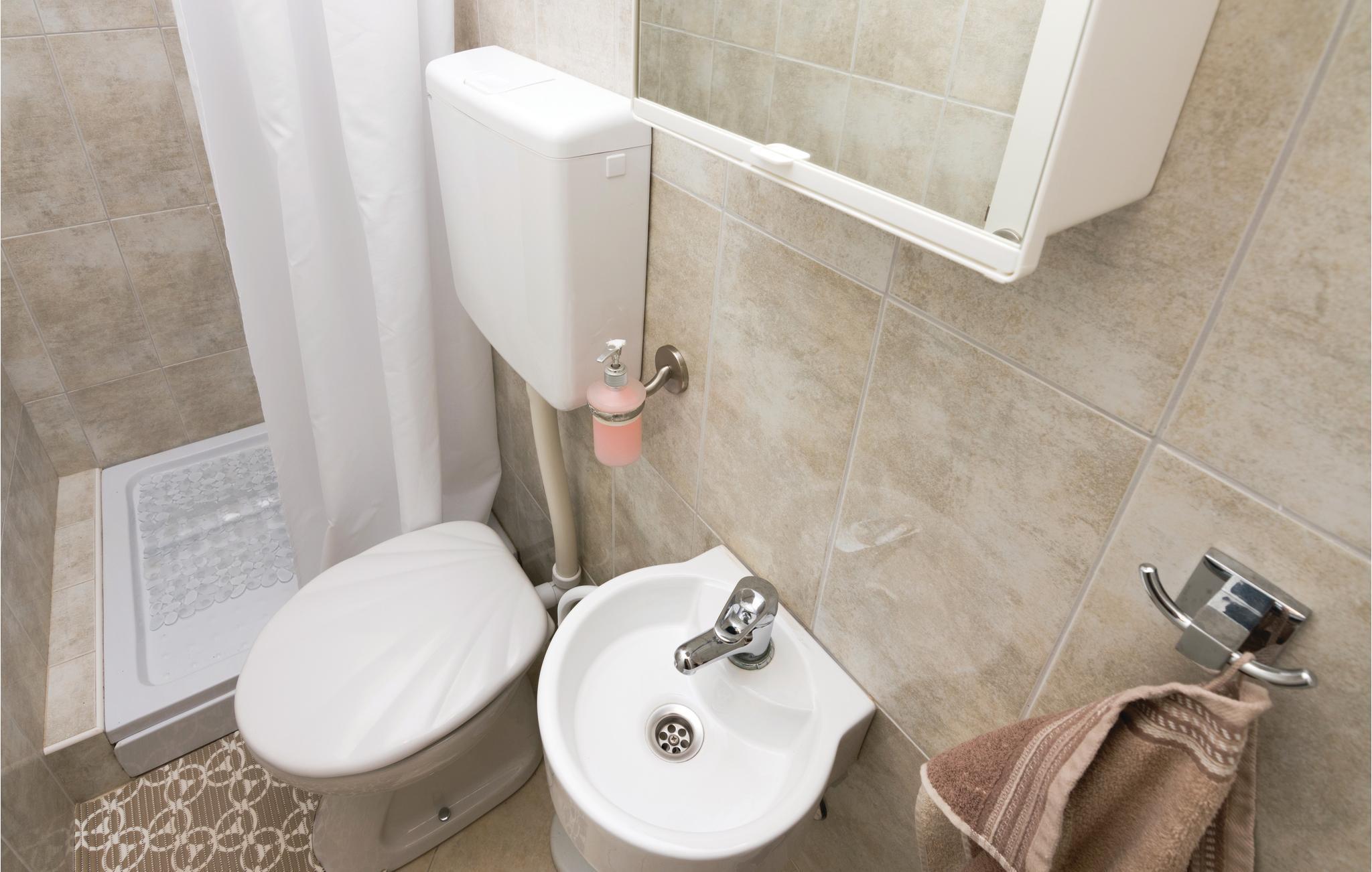 Badezimmer (nr. 2) - WC. Warmes und kaltes Wasser. Dusche