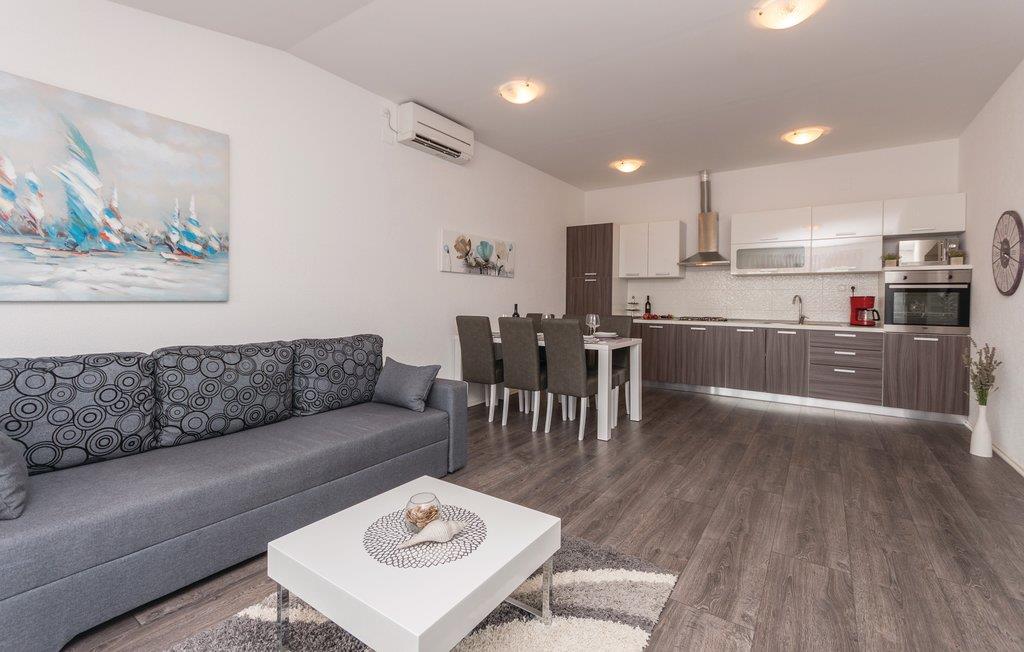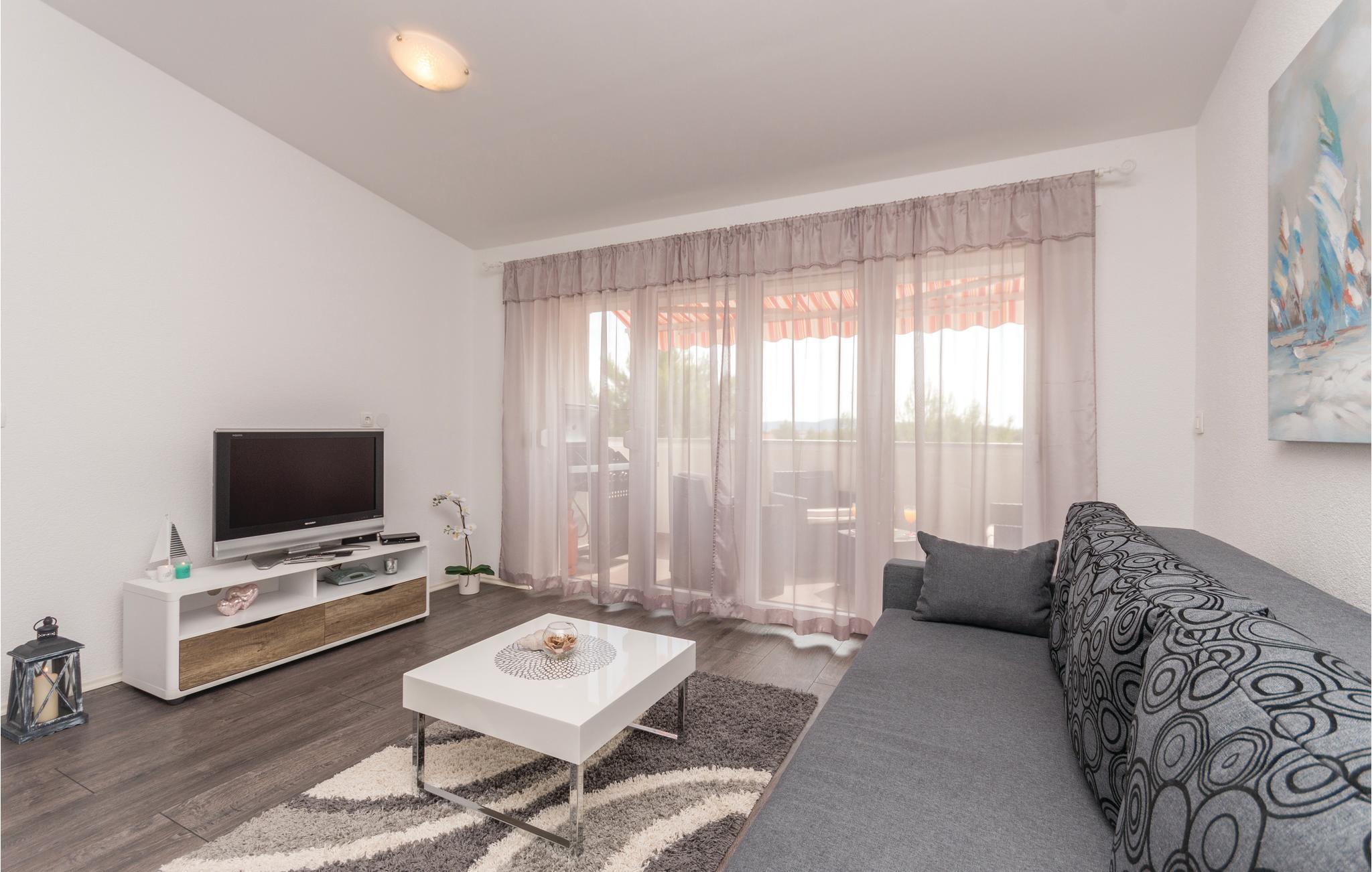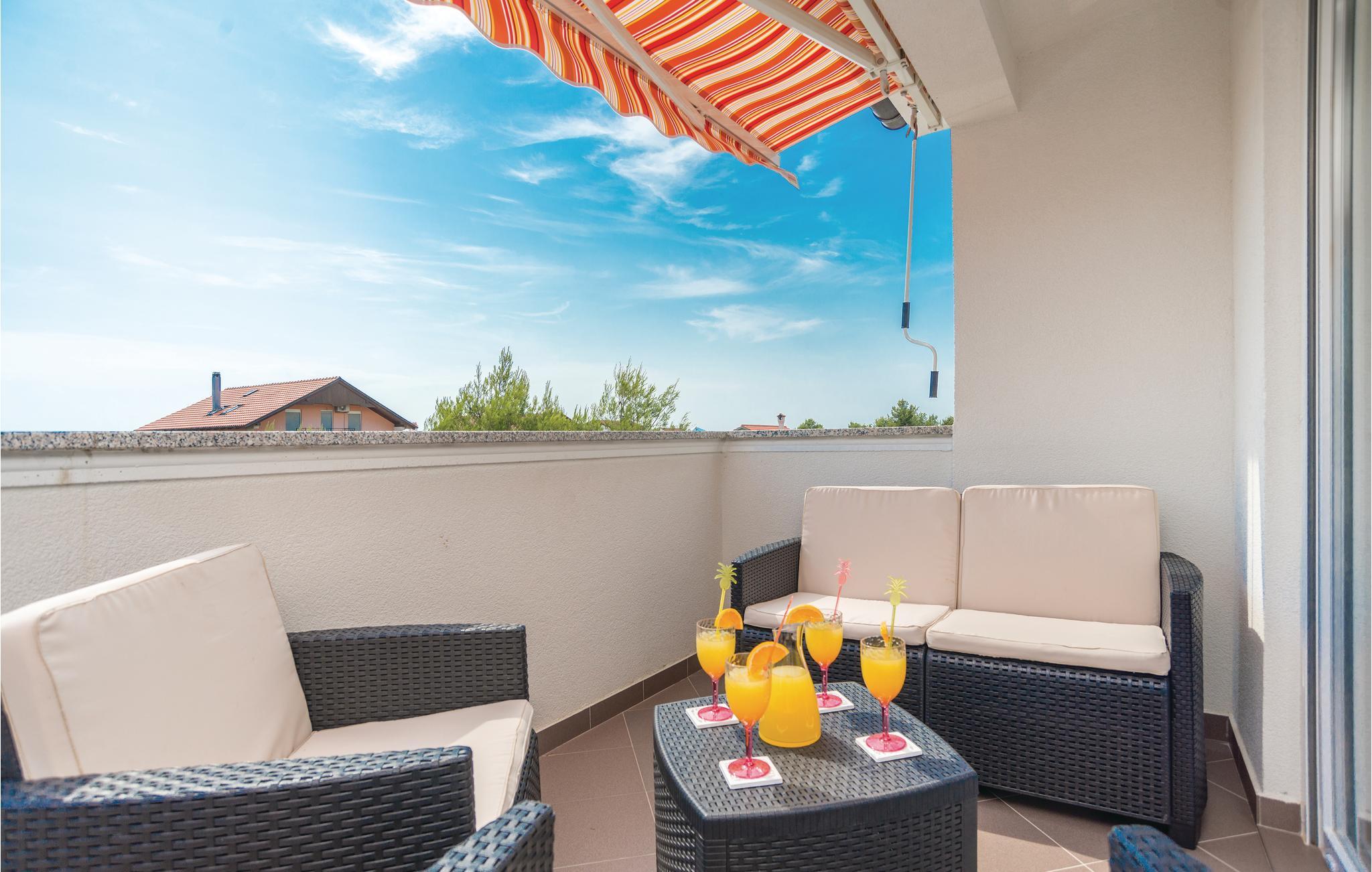 Diese elegante und modern eingerichtete Ferienwohnung liegt im Dachgeschoss des Gebäudes und hat eine Terrasse und einen Balkon. Auf Ihrer Terrasse befinden sich Gartenmöbel und ein Grill. Auf dem Grundstück ist ein Parkplatz für Sie reserviert. Die nächstgelegenen Strände sind Kiesstrände. Der beliebteste örtliche Strand hat ein Betonplateau und im flachem Meer ist Sandboden. Die Marina und das Zentrum des Ortes, die während der Sommermonate sehr lebendig sind, liegen so weit entfernt, so dass Ihnen ein ruhiger Urlaub ermöglicht wird. Die schöne und interessante Stadt Zadar und seinen internationalen Flughafen erreicht Sie in weniger als 15 Autominuten.