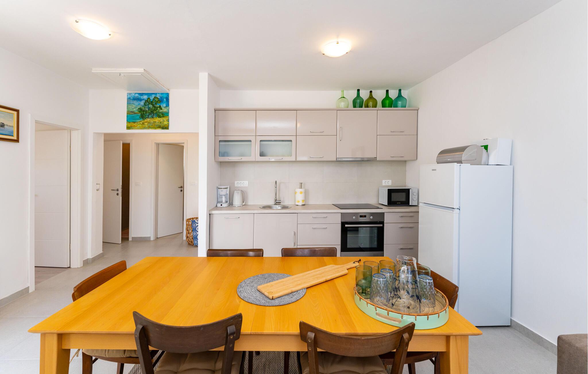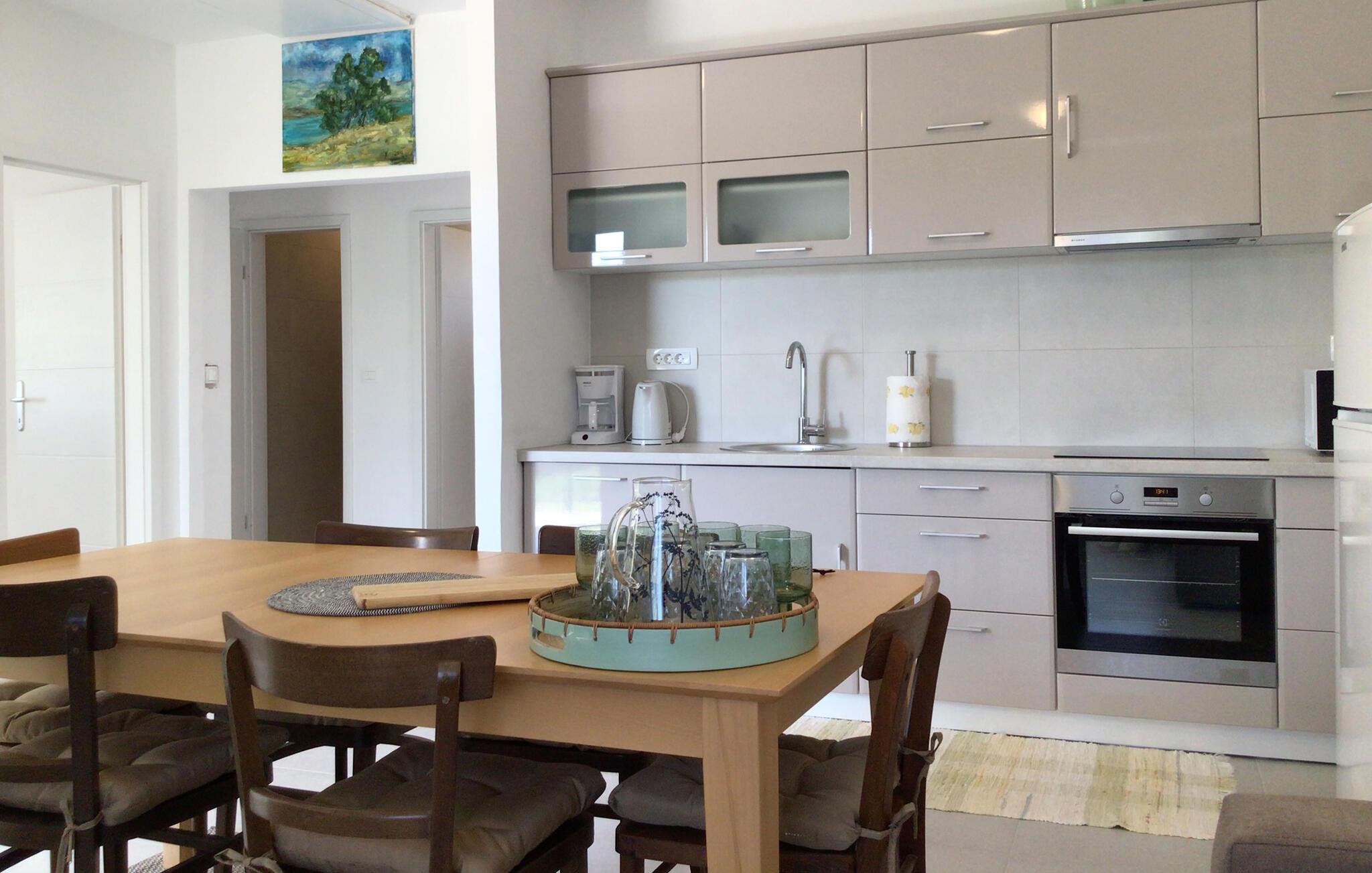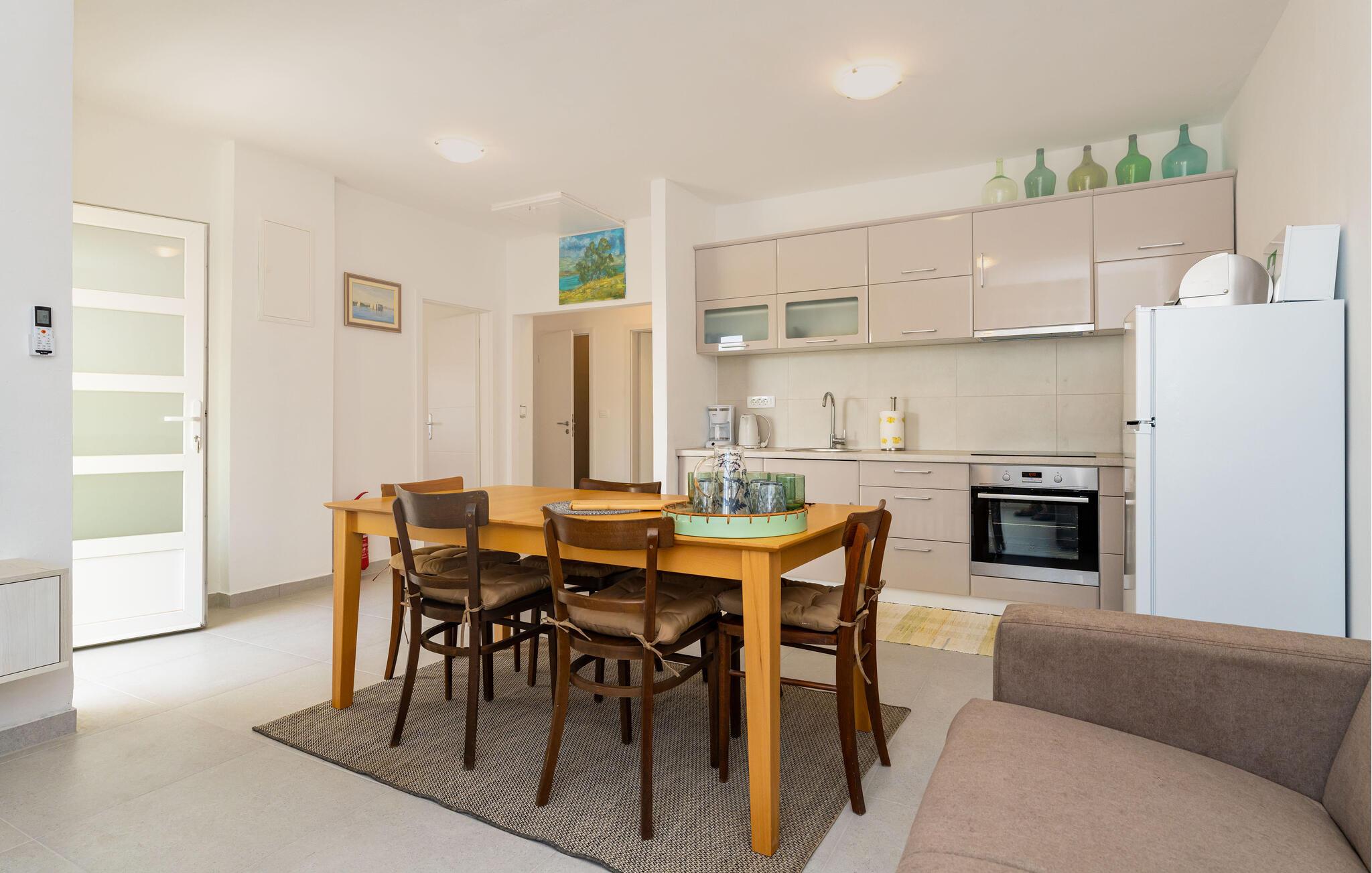 In diesem charmanten Ferienhaus in Sukosan erleben Sie einen unvergesslichen Urlaub voller Komfort und Entspannung. Die moderne Inneneinrichtung, geprägt durch ansprechende Möbel und helle Räume, sorgt für eine angenehme Atmosphäre. Gemütliche Wohnküche lädt zu geselligen Abenden ein.