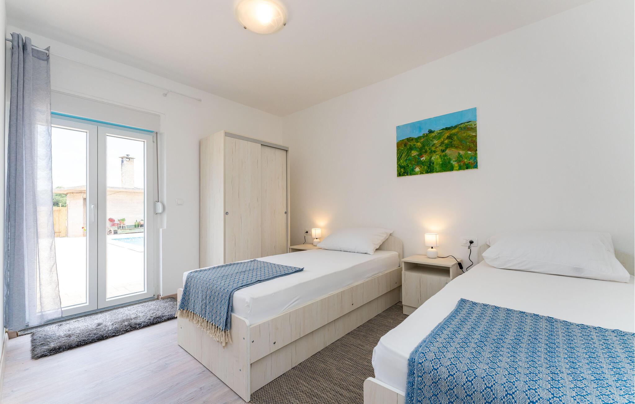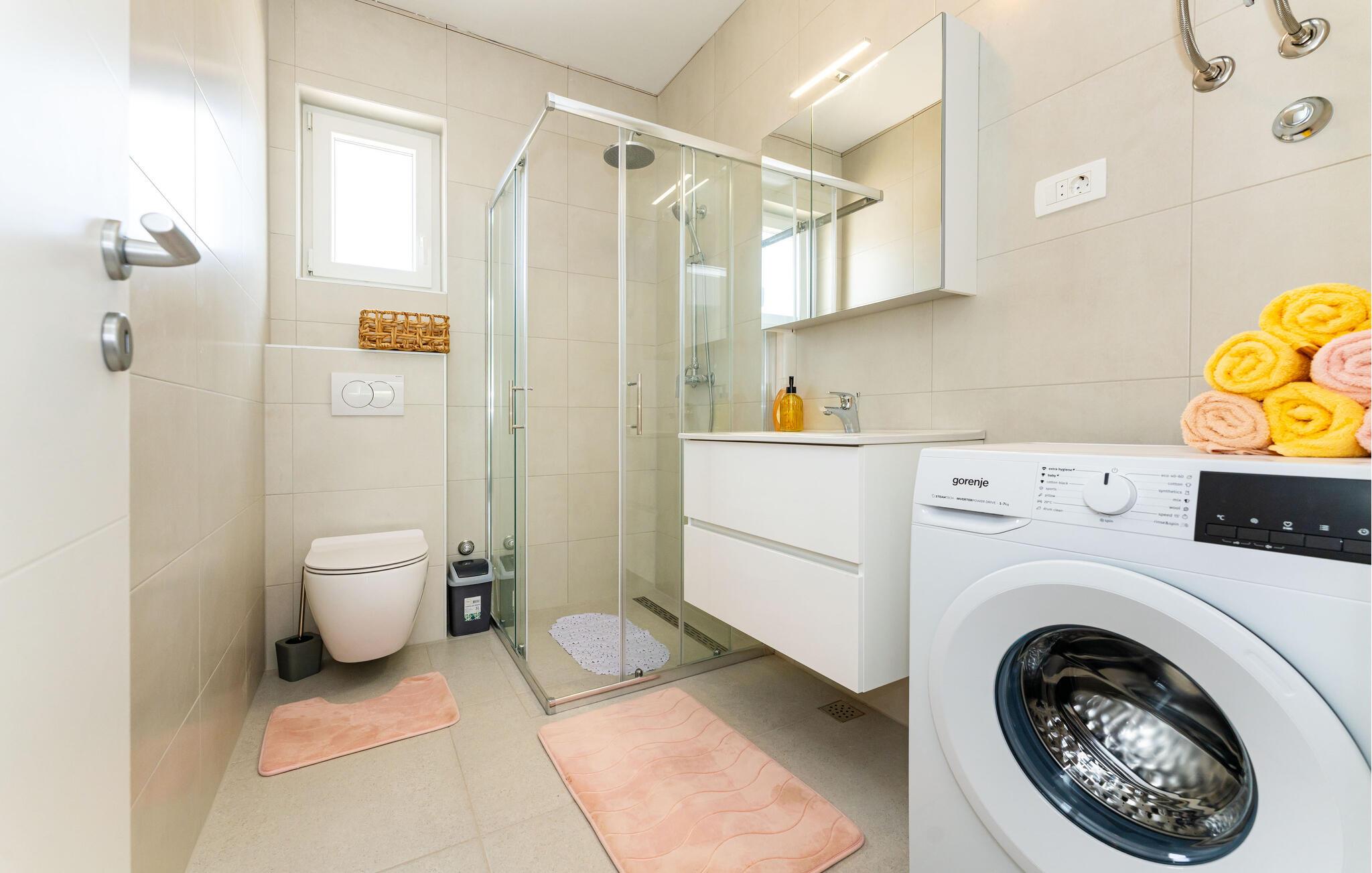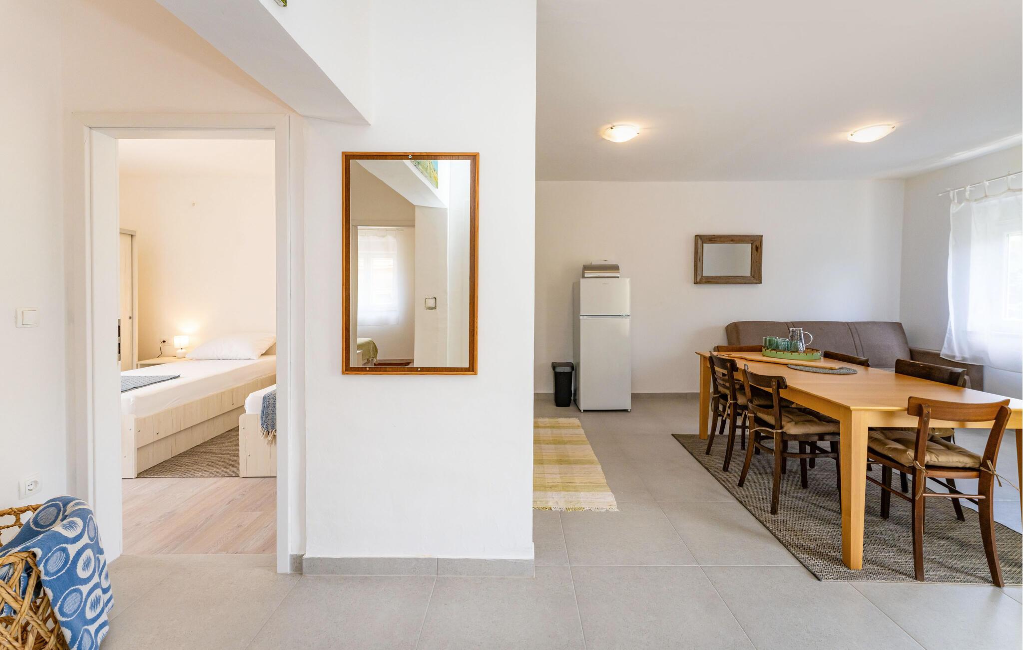 In diesem charmanten Ferienhaus in Sukosan erleben Sie einen unvergesslichen Urlaub voller Komfort und Entspannung. Die moderne Inneneinrichtung, geprägt durch ansprechende Möbel und helle Räume, sorgt für eine angenehme Atmosphäre. Gemütliche Wohnküche lädt zu geselligen Abenden ein.