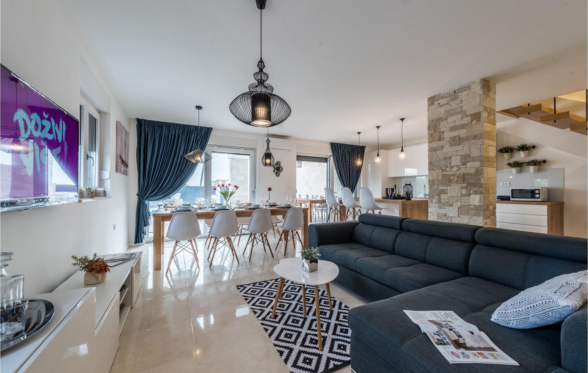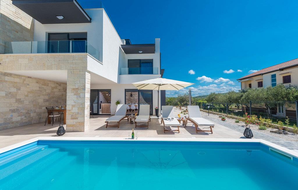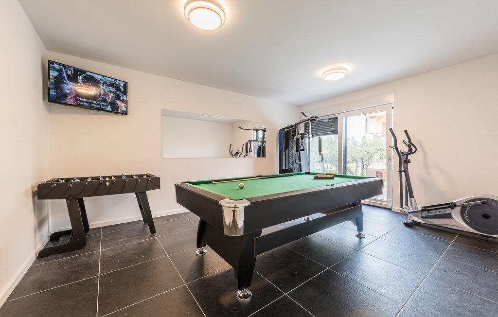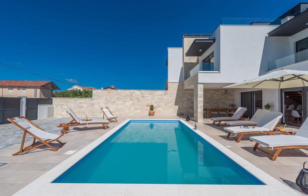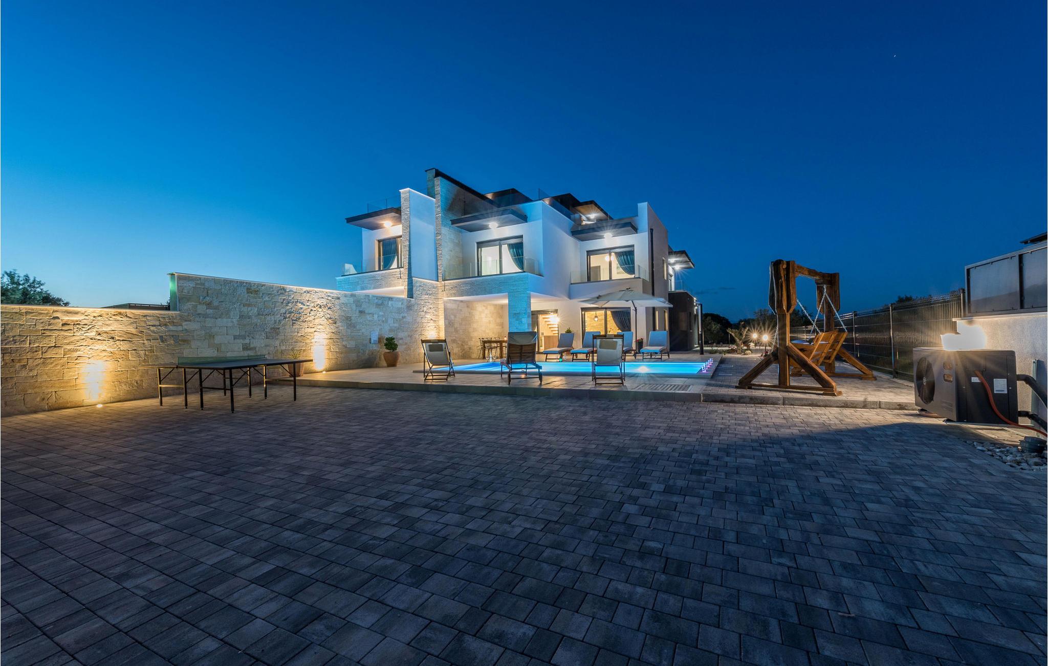 Diese exklusive Villa Oasis bietet Ihnen mit ihrer modernen Architektur und stilvollen Einrichtung den perfekten Rückzugsort für einen entspannten Urlaub. Die großzügigen Schlafzimmer sind auf ultimativen Komfort ausgelegt, während das helle Wohnzimmer und die voll ausgestattete Küche mit Panoramafenstern den Blick auf die Adria freigeben. Der Fitnessraum mit Billard und Tischtennis sorgt für Abwechslung, und auf der Dachterrasse können Sie die Sonne genießen oder den Tag mit einem Glas Wein ausklingen lassen. Der beheizte Pool und der liebevoll gestaltete Garten runden das luxuriöse Ambiente für Sie ab.